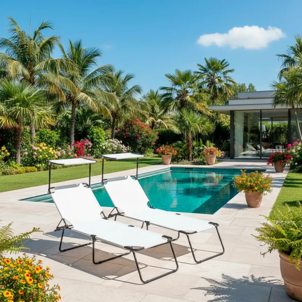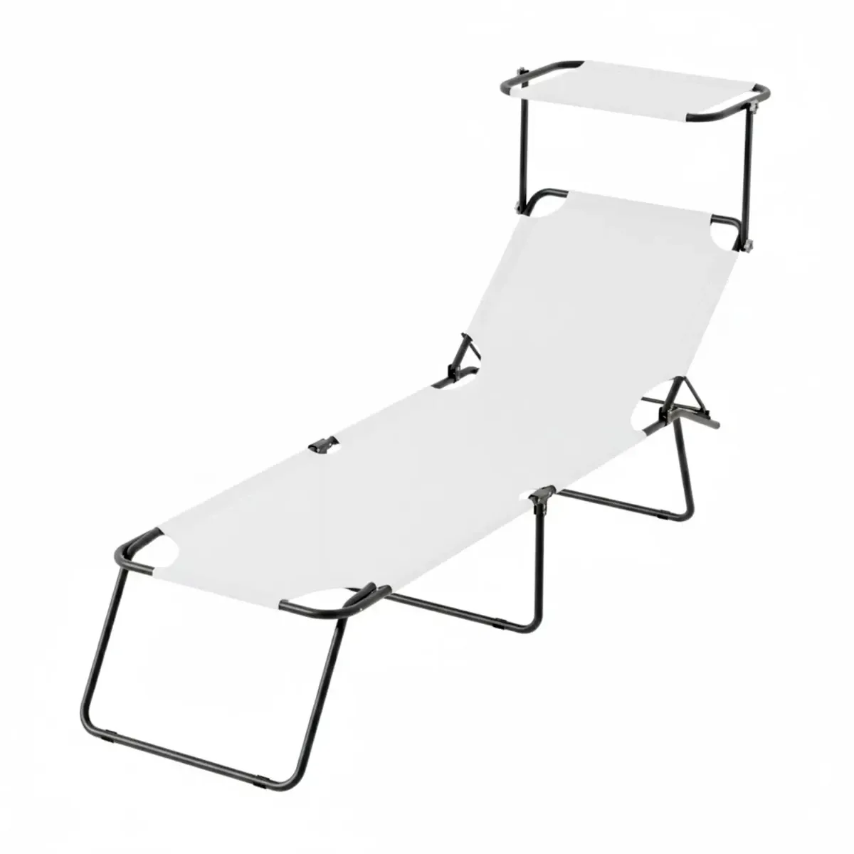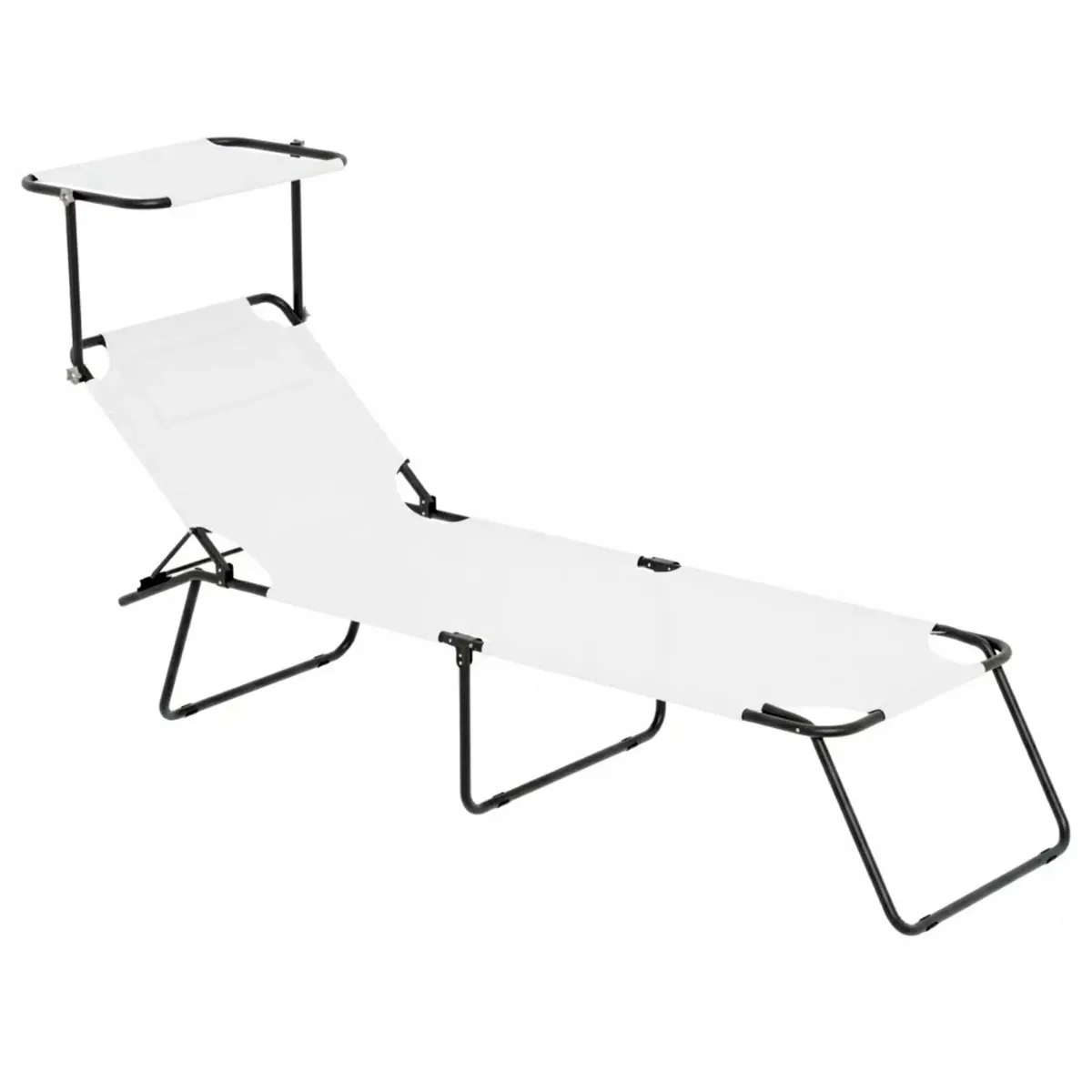 2 Lettini Pieghevoli con Tettuccio Regolabile e Schienale Reclinabile, Struttura in Metallo Nero, Sdraio Prendisole per Spiaggia, Mare, Giardino e Piscina - 187 x 53 x 24 cm