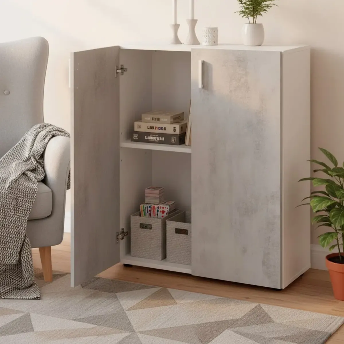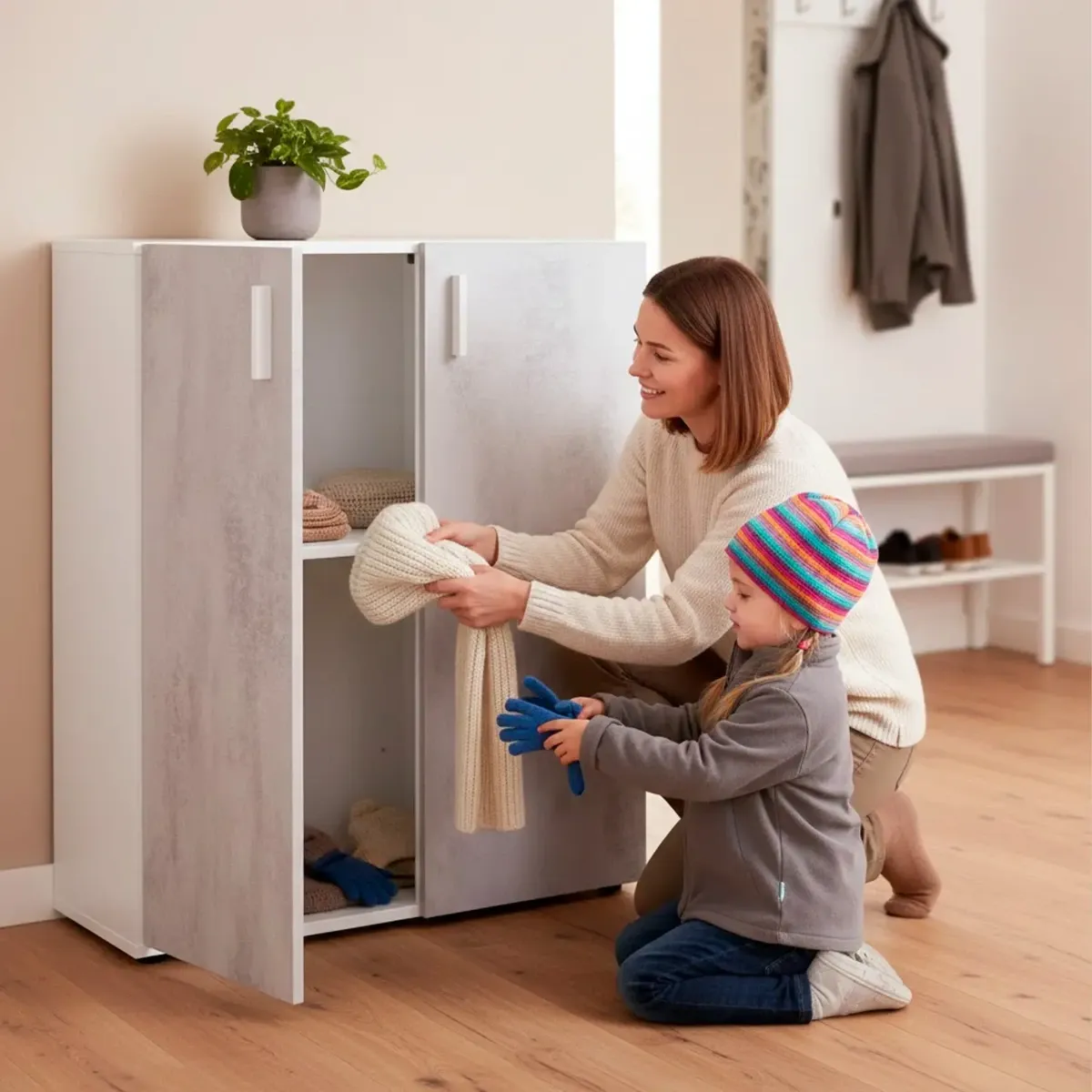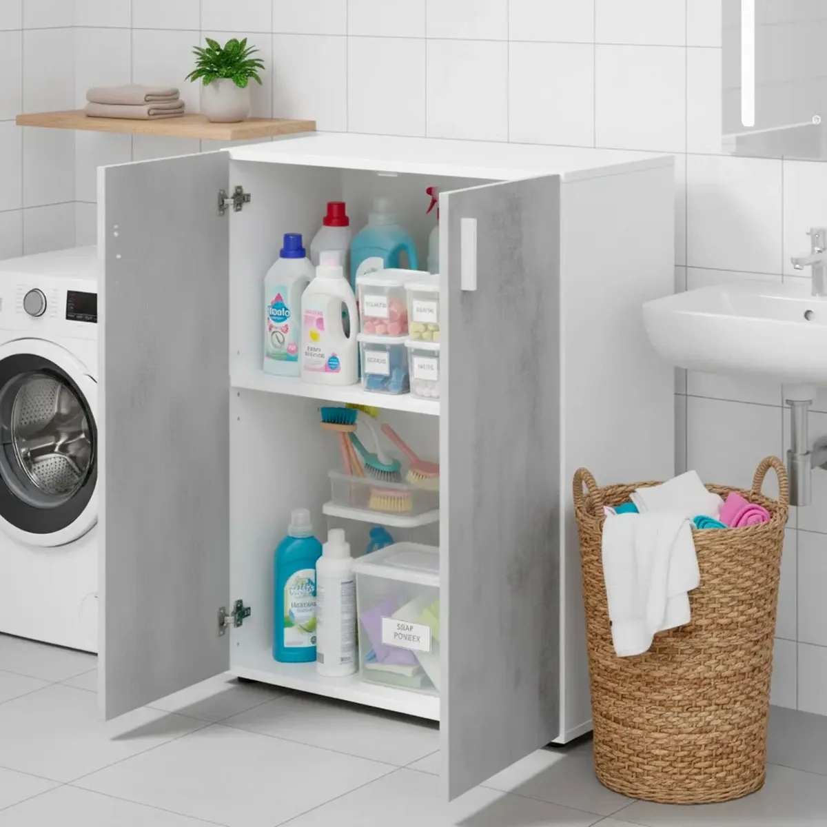 Armadietto Multiuso Armadio Basso A 2 Ante Mobile Salvaspazio Con Ripiani Regolabili Per Bagno Lavanderia Ripostiglio Garage o Ufficio Design Moderno 80 x 37 x 92 Cm