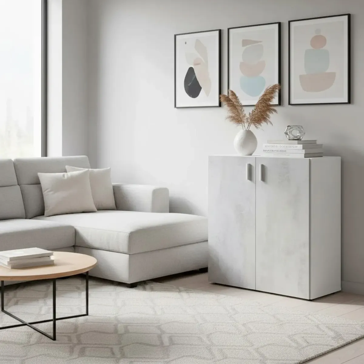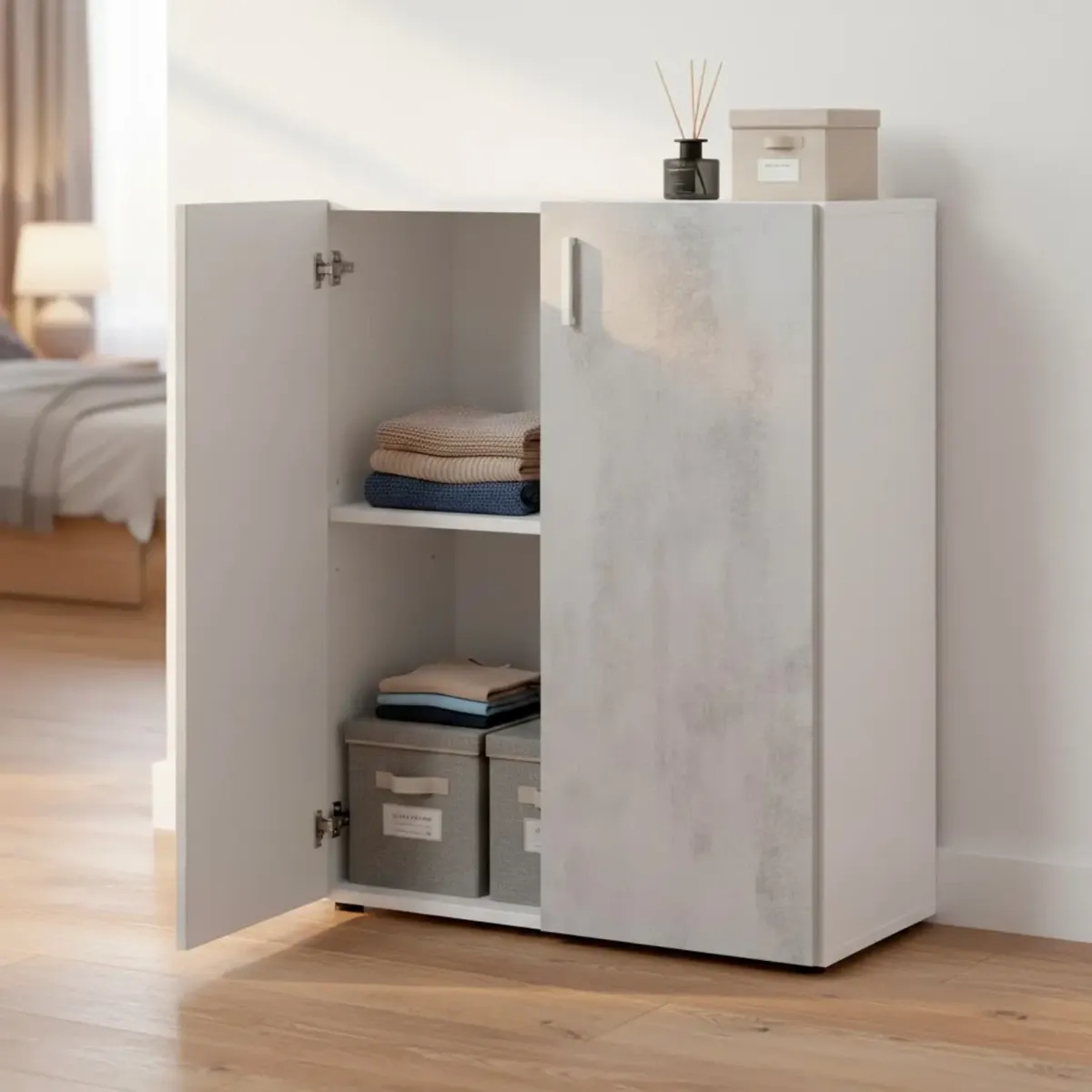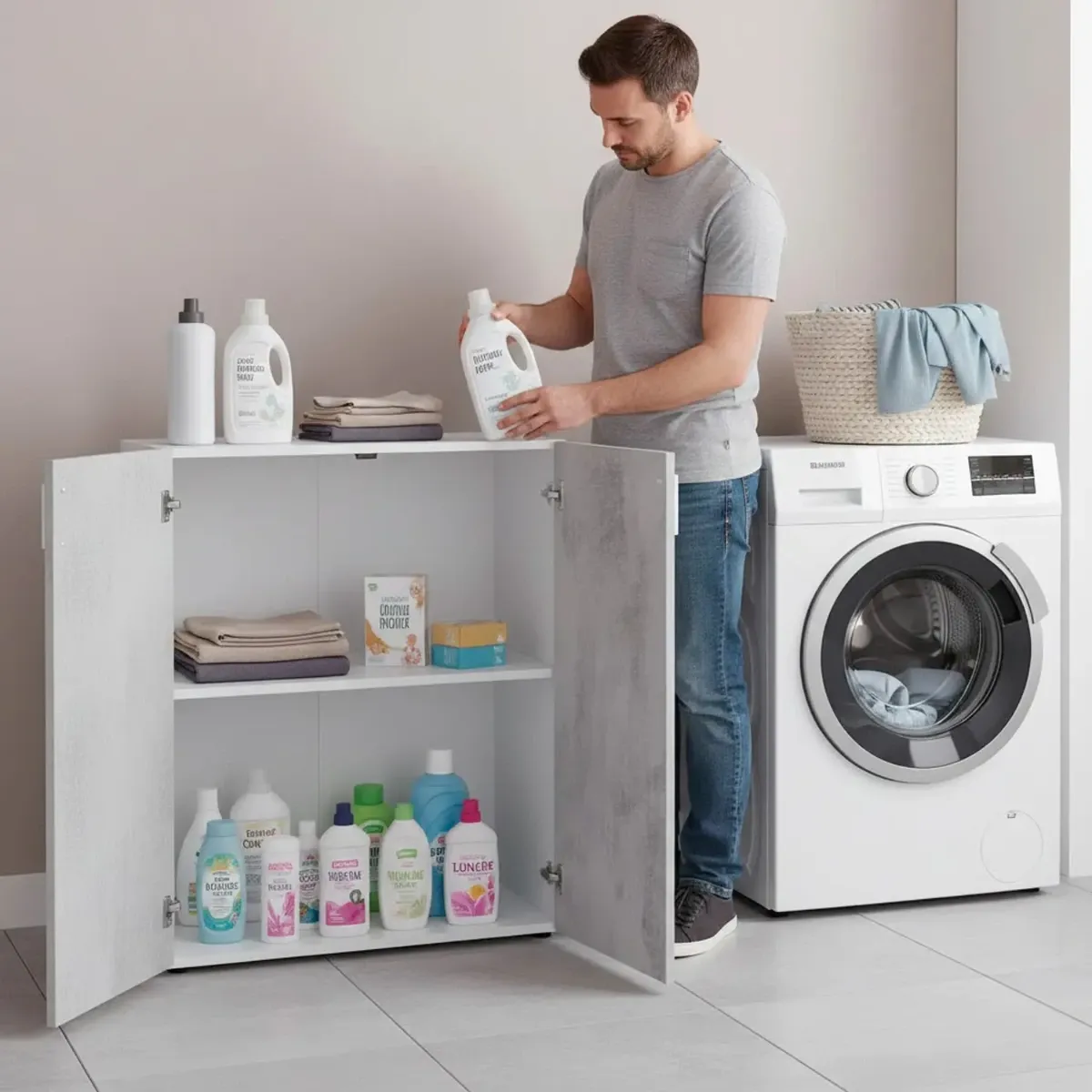 Armadietto Multiuso Armadio Basso A 2 Ante Mobile Salvaspazio Con Ripiani Regolabili Per Bagno Lavanderia Ripostiglio Garage o Ufficio Design Moderno 80 x 37 x 92 Cm