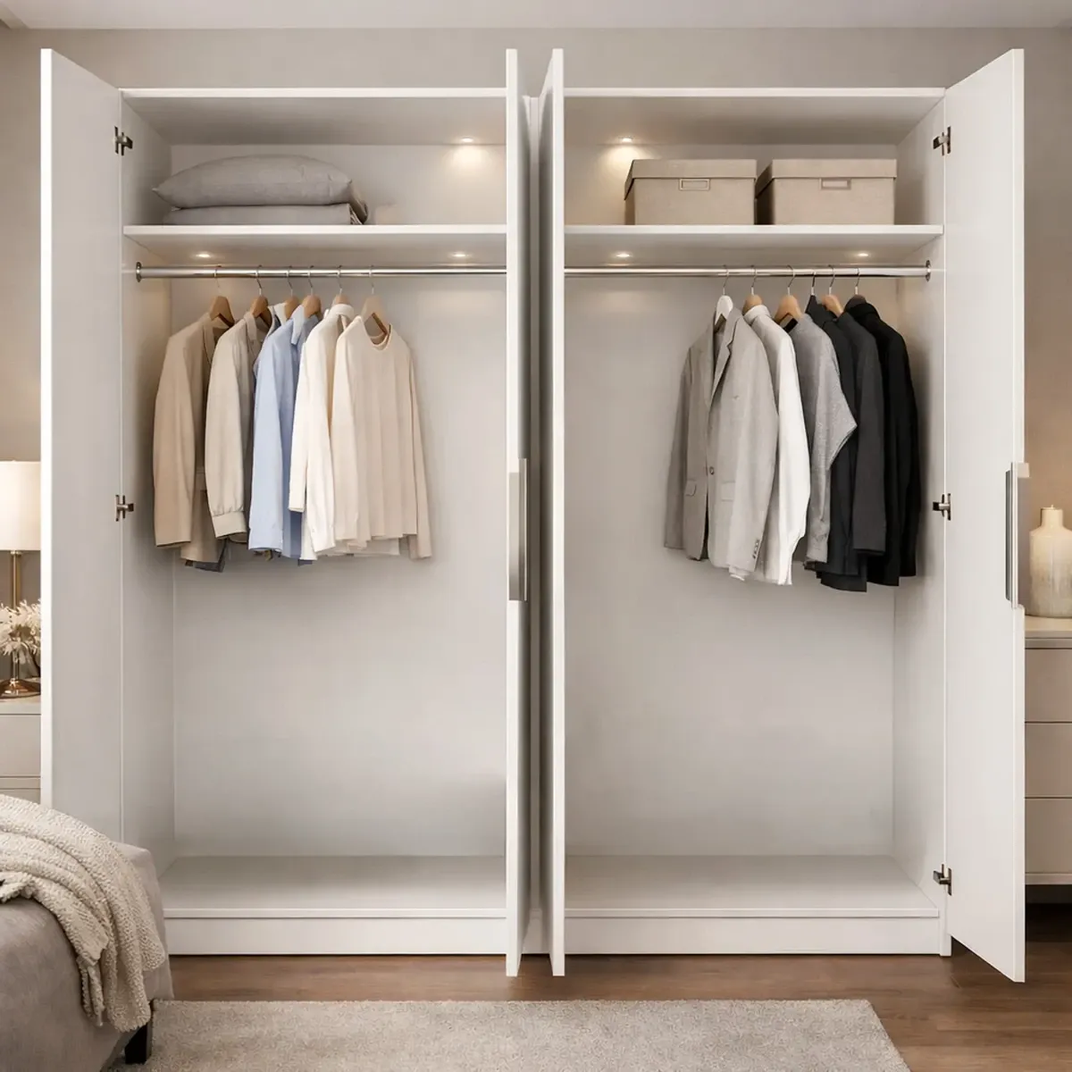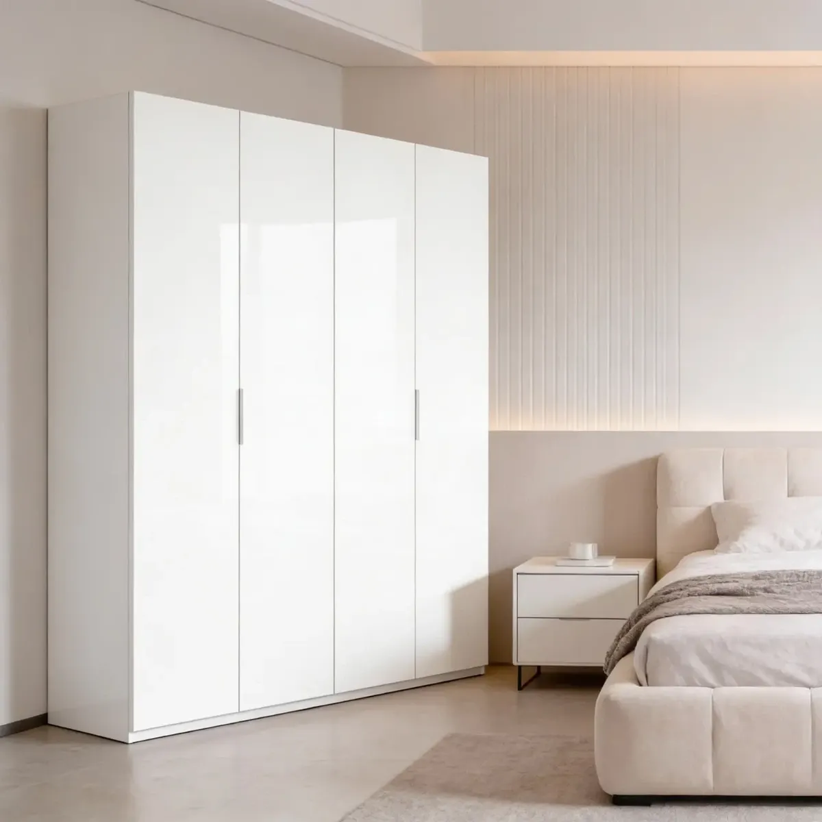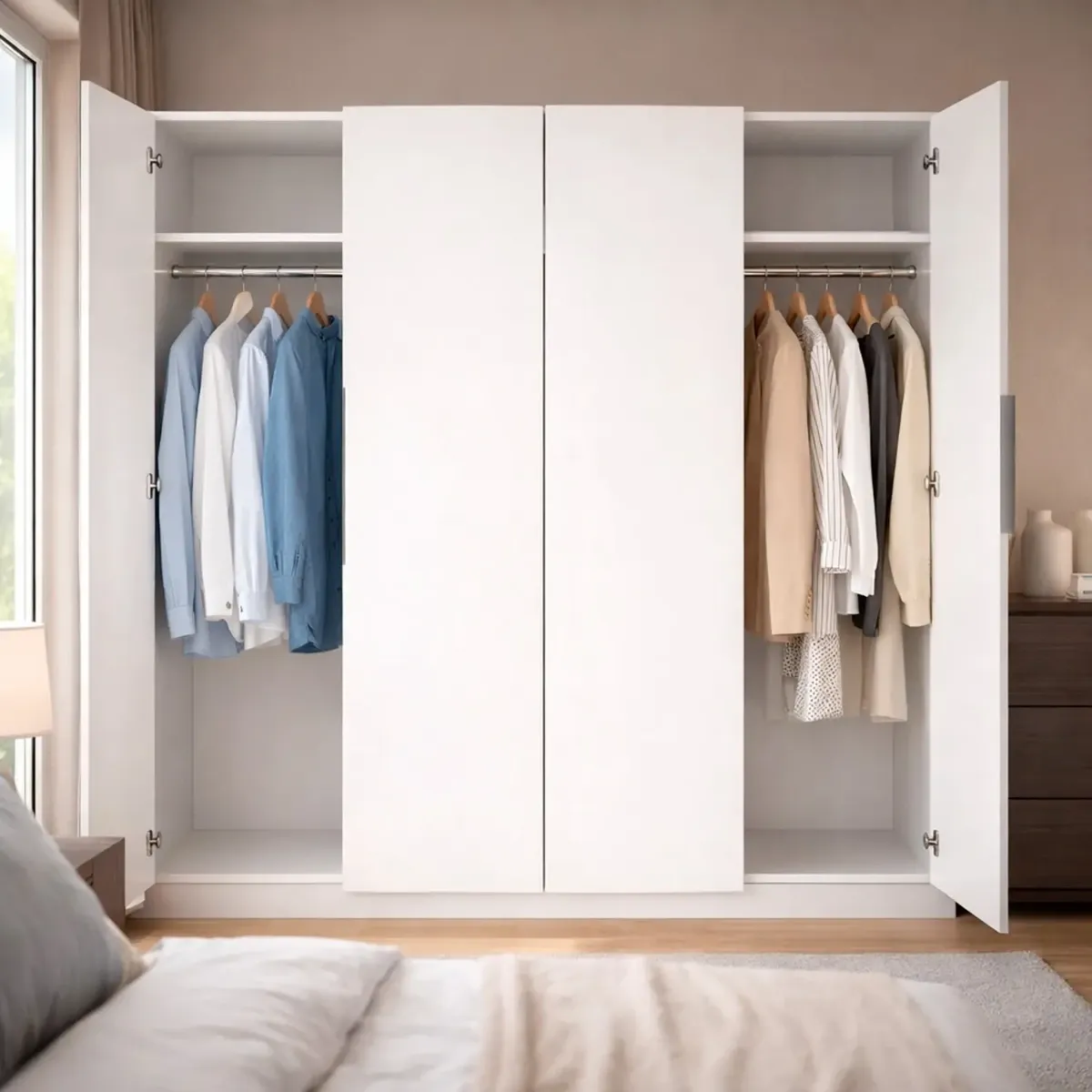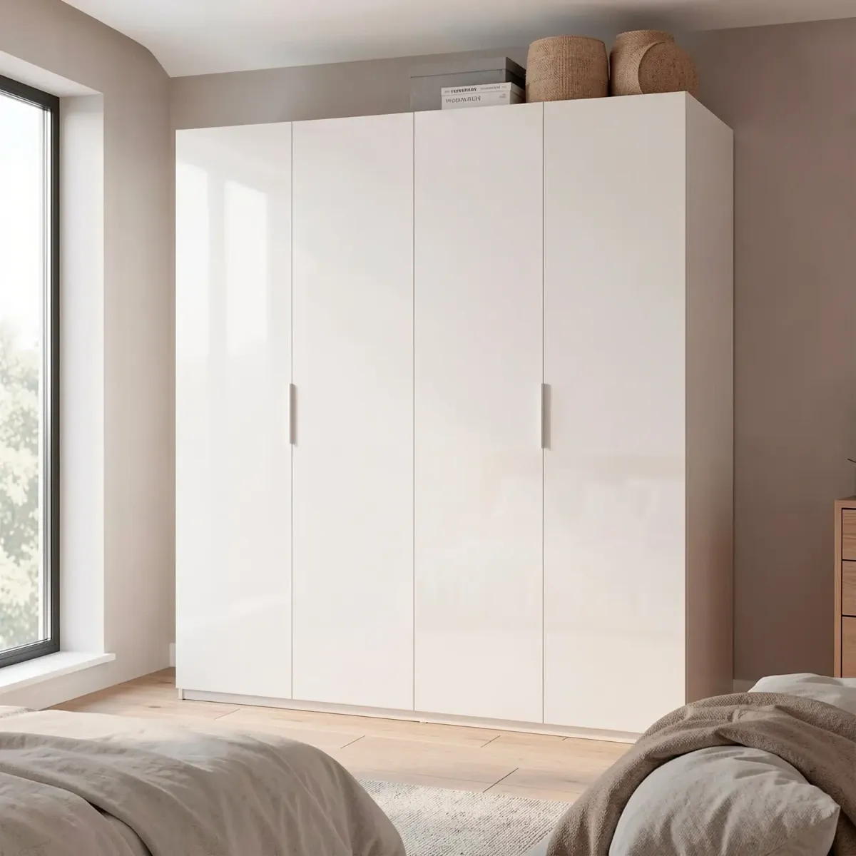 Armadio A 4 Ante Battenti Con 2 Barre Appendiabiti E Ripiano Interno Guardaroba Moderno Per Camera Da Letto Cabina Armadio Stanza Ospiti Design Moderno Minimal 180 x 200 x 52 Cm