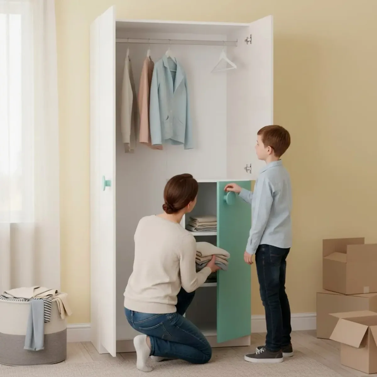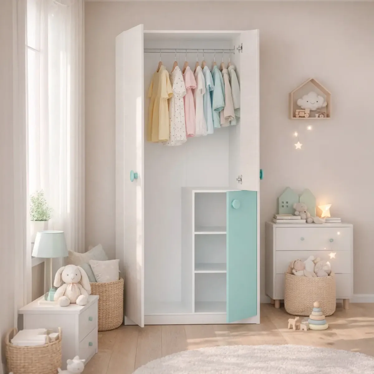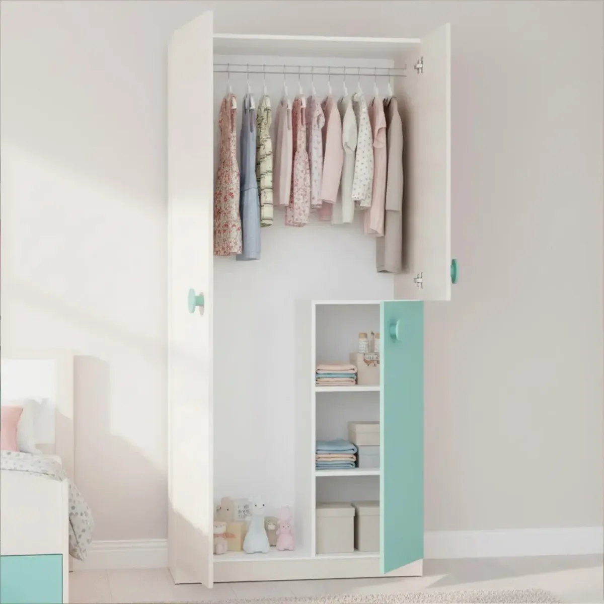 Armadio Armadietto Per Cameretta E Camera Da Letto Mobile Mobiletto Guardaroba Compatto Con Barra Appendiabiti E Ripiani Design Moderno 200 x 90 x 52 Cm