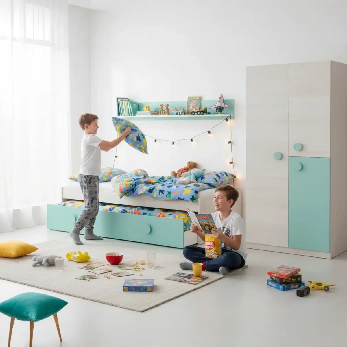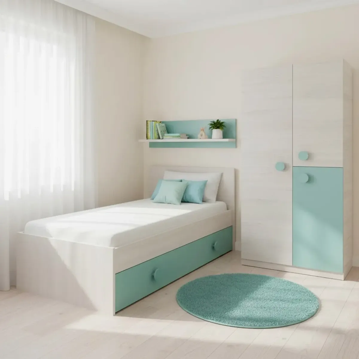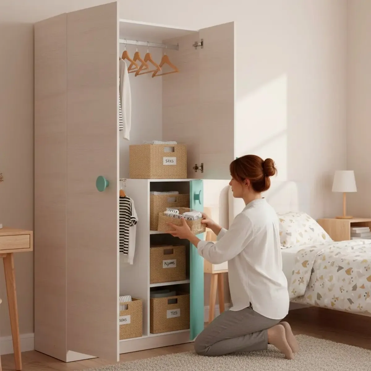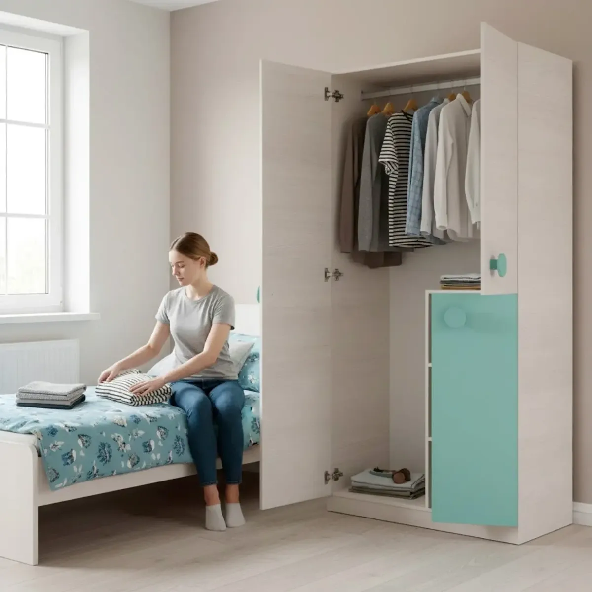 Armadio Armadietto Per Cameretta E Camera Da Letto Mobile Mobiletto Guardaroba Compatto Con Barra Appendiabiti E Ripiani Design Moderno 200 x 90 x 52 Cm