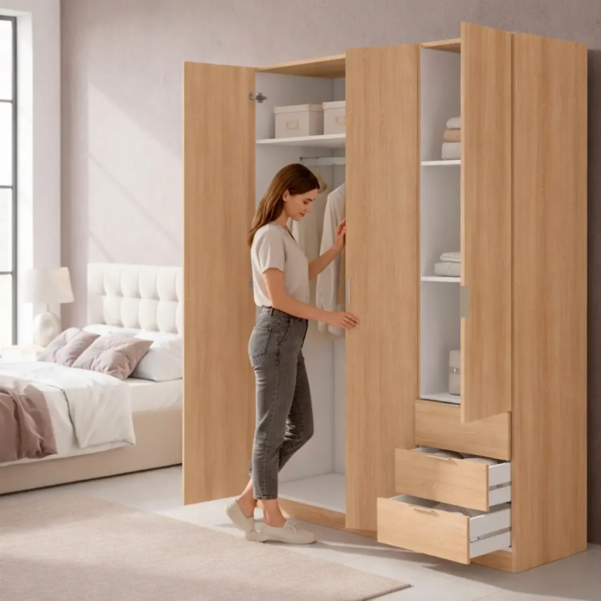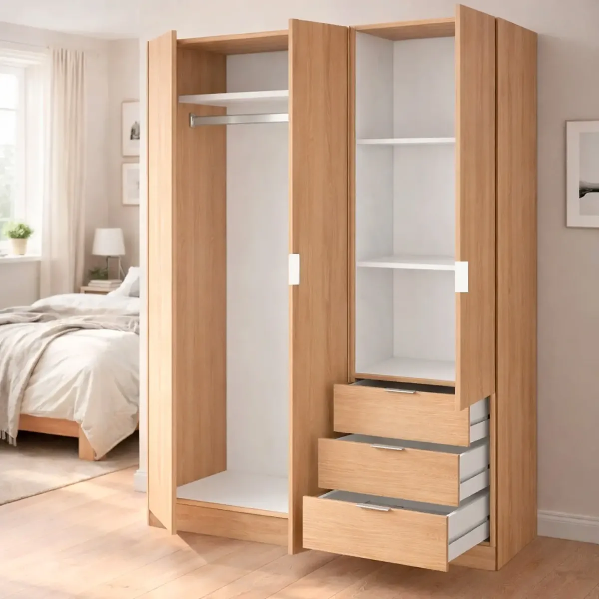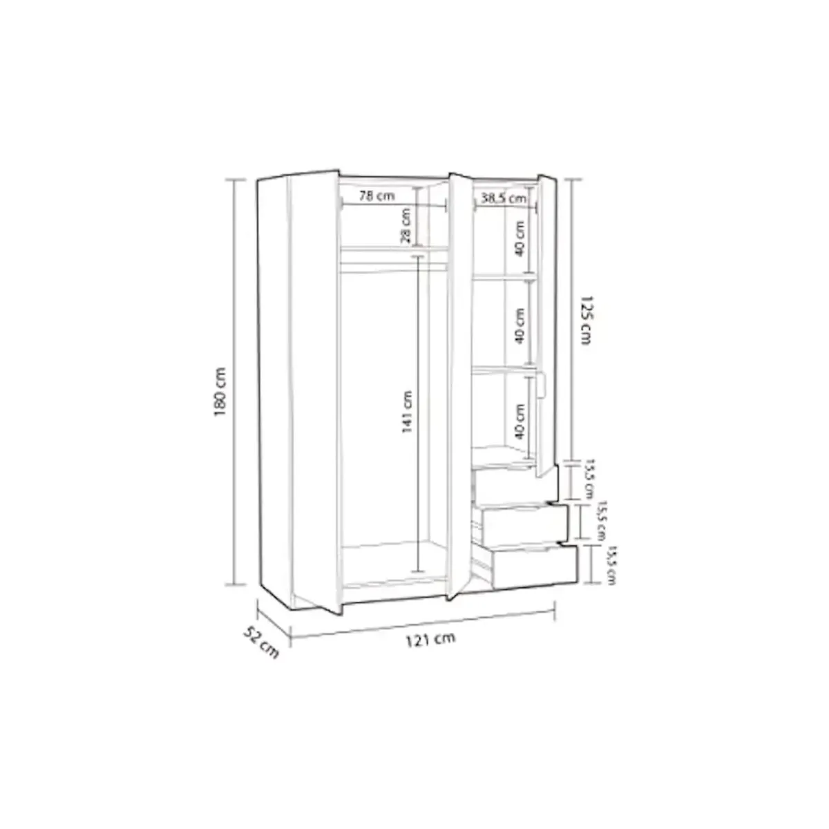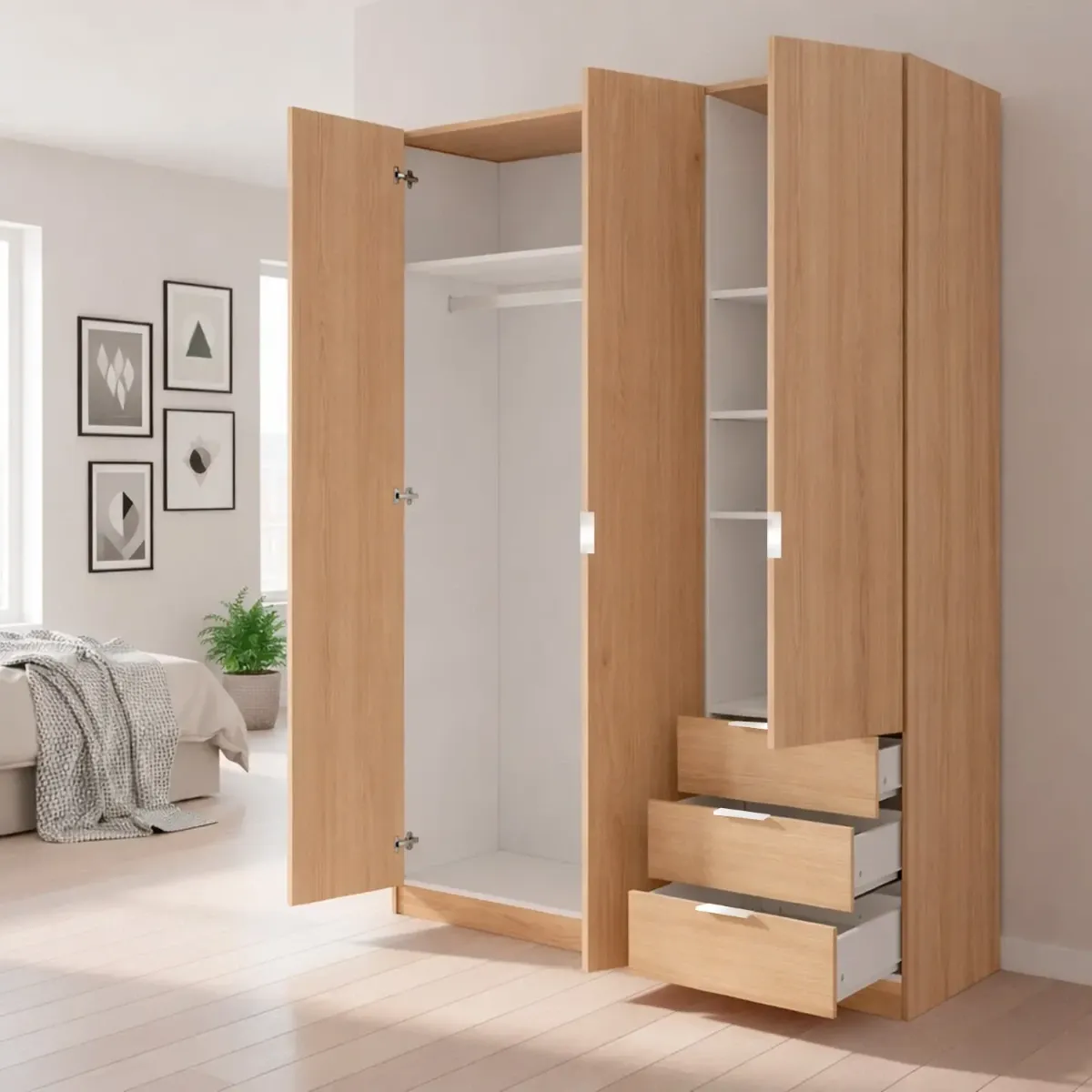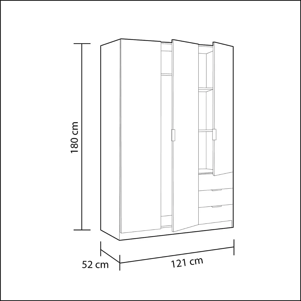 Armadio Con 3 Ante Battenti E 3 Cassetti Armadietto Con Asta Appendi Abiti E 3 Ripiani Ideale Per Camera Da Letto Soggiorno Salone Ingresso Design Moderno Lancaster 180 x 121 x 52 Cm