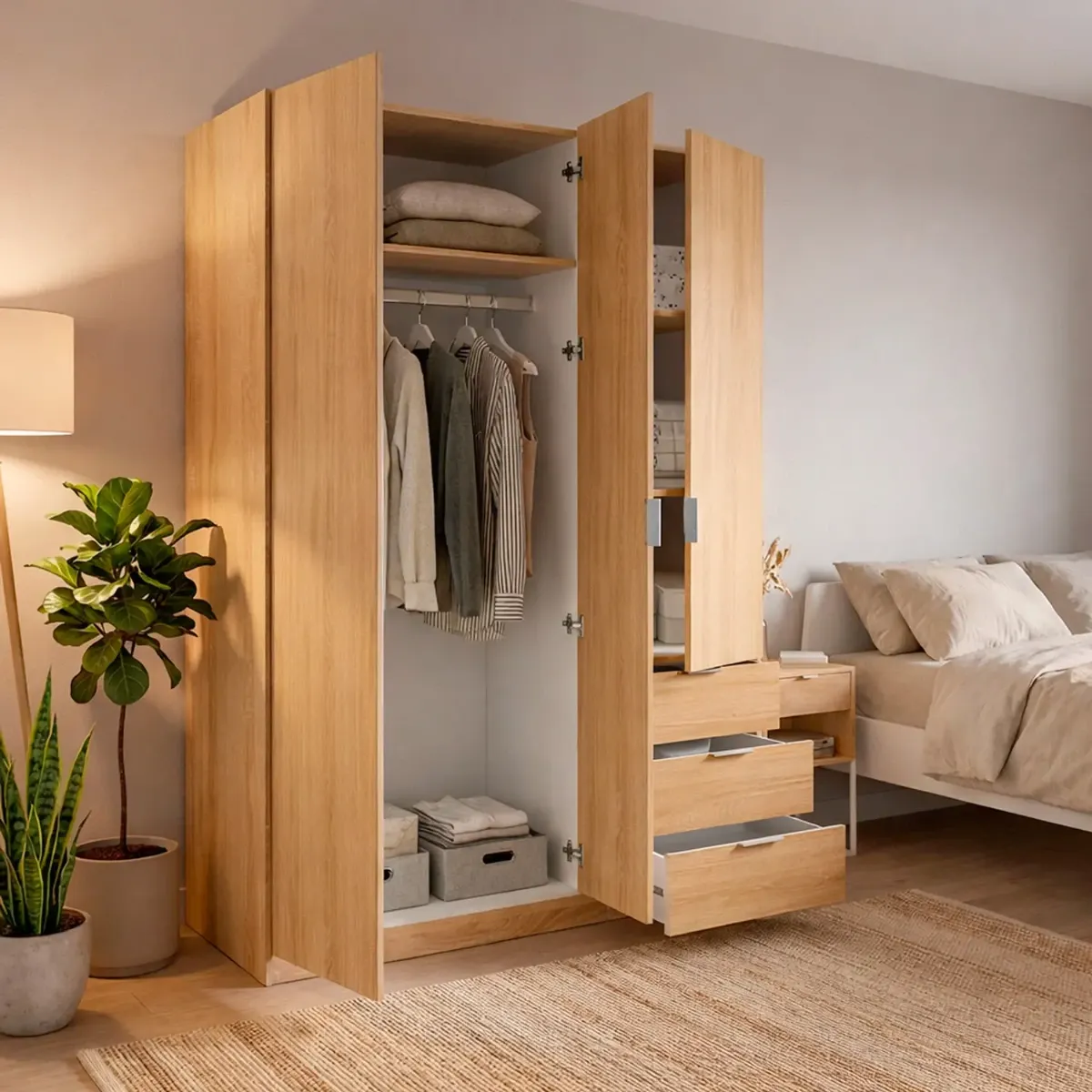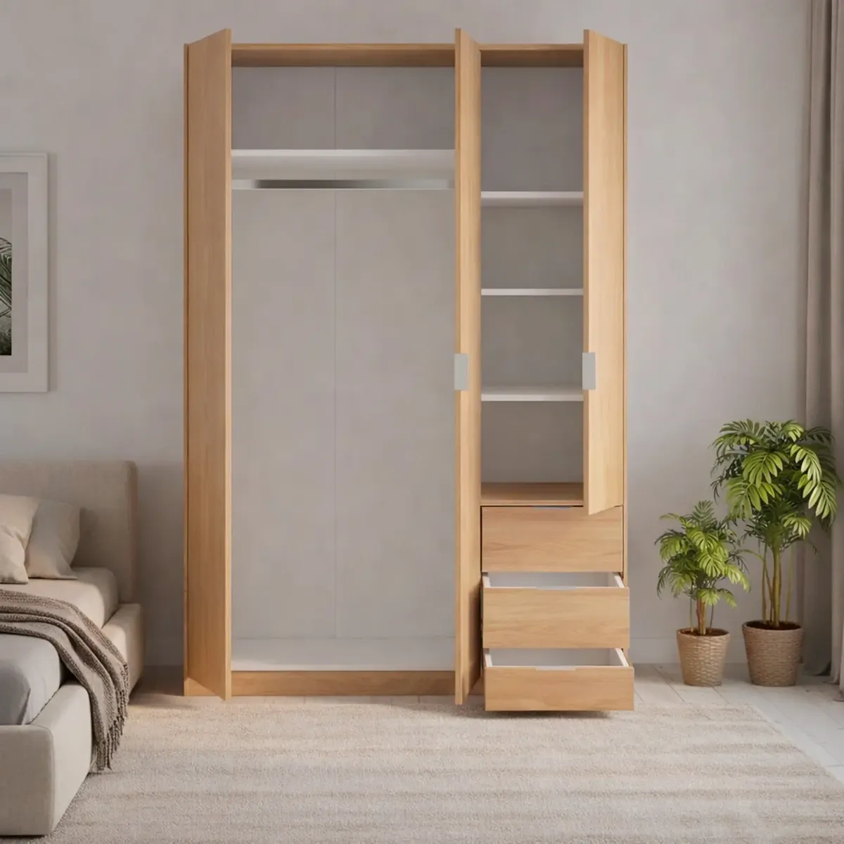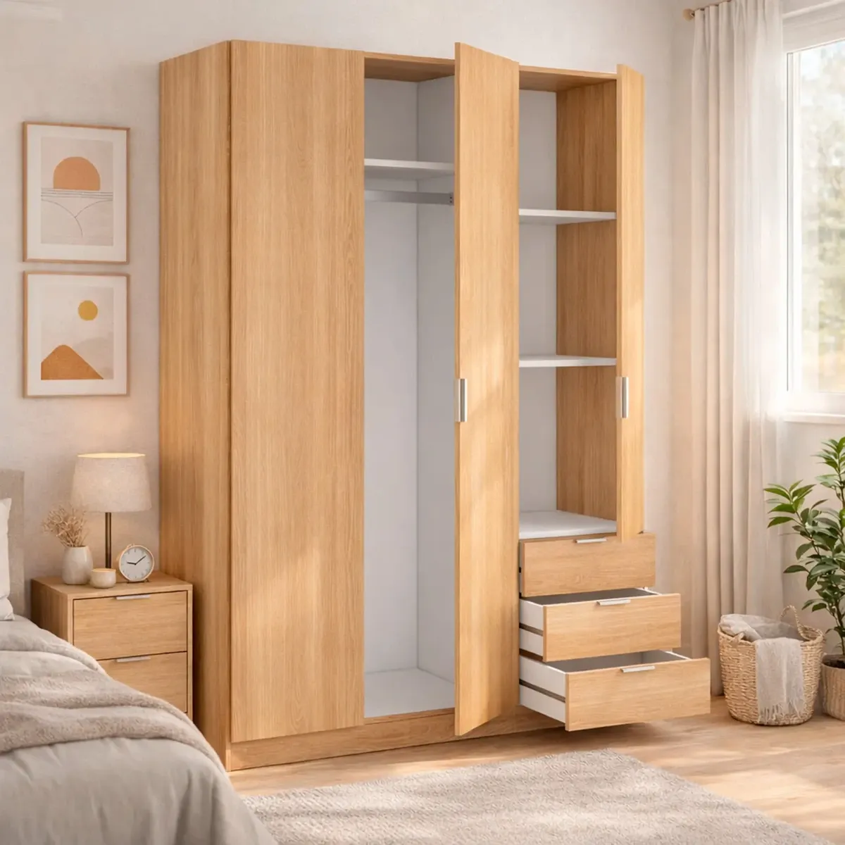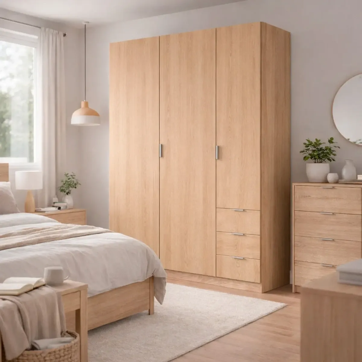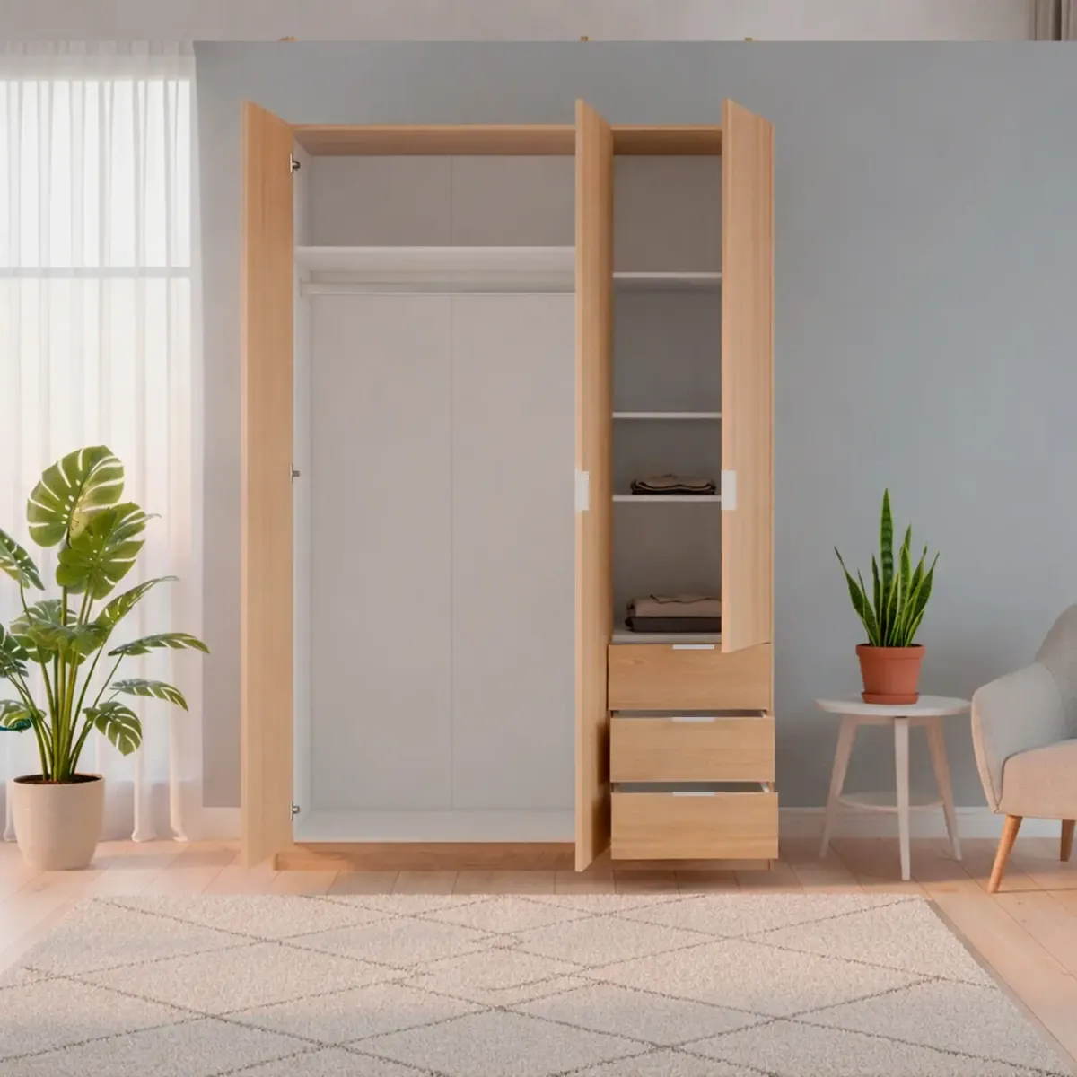 Armadio Con 3 Ante Battenti E 3 Cassetti Armadietto Con Asta Appendi Abiti E 3 Ripiani Ideale Per Camera Da Letto Soggiorno Salone Ingresso Design Moderno Lancaster 180 x 121 x 52 Cm