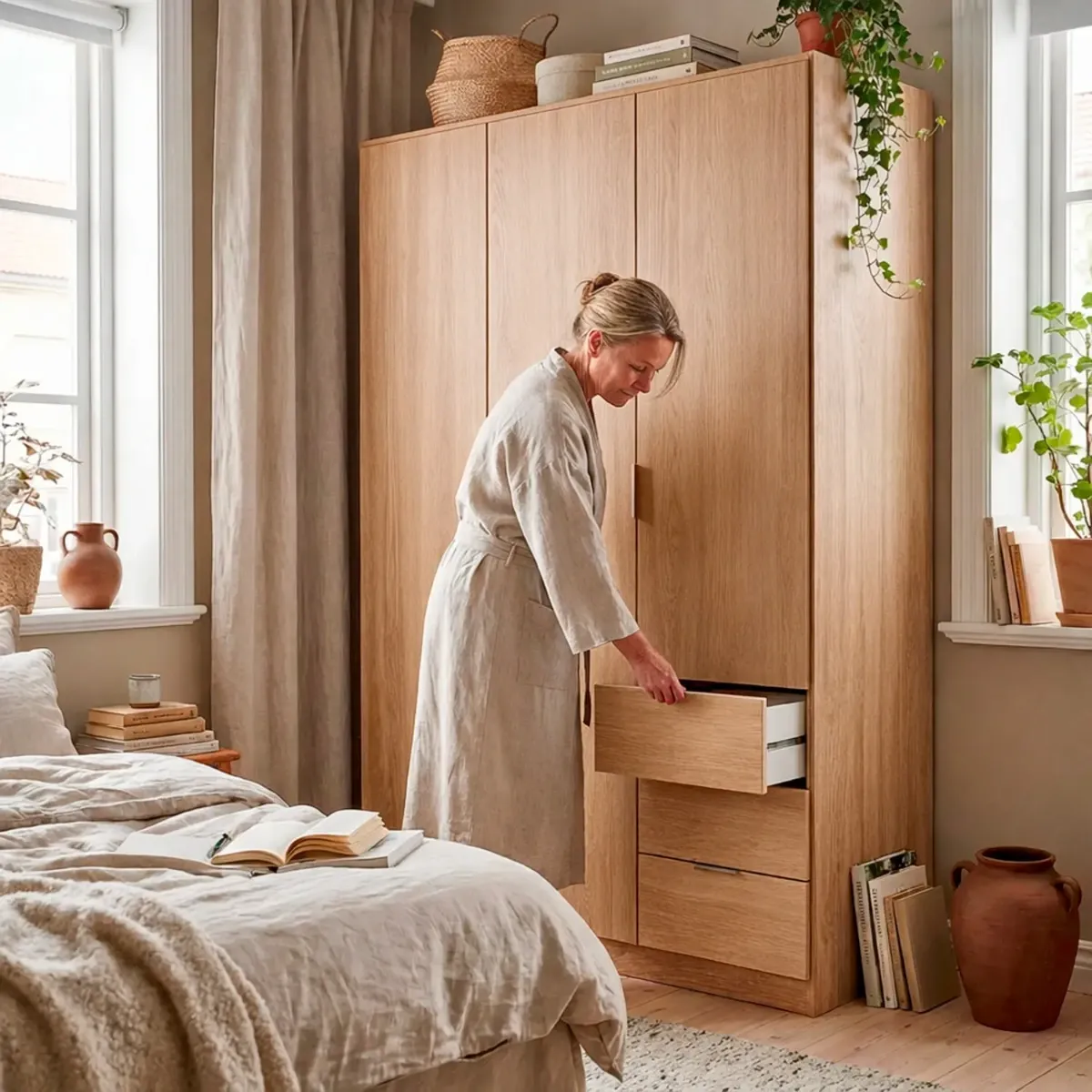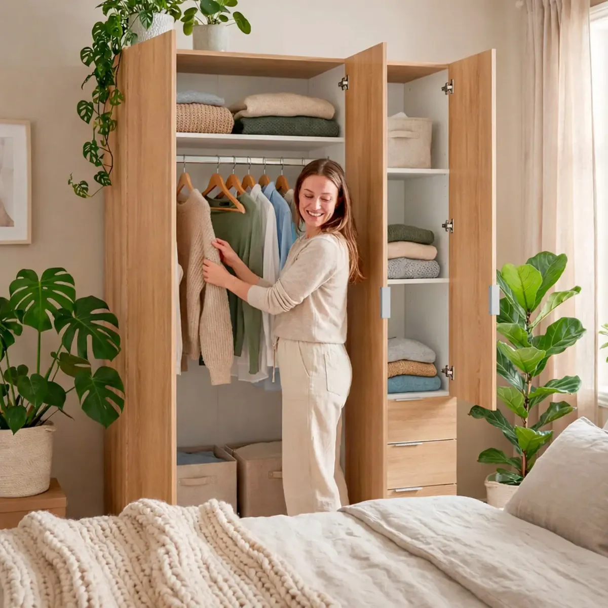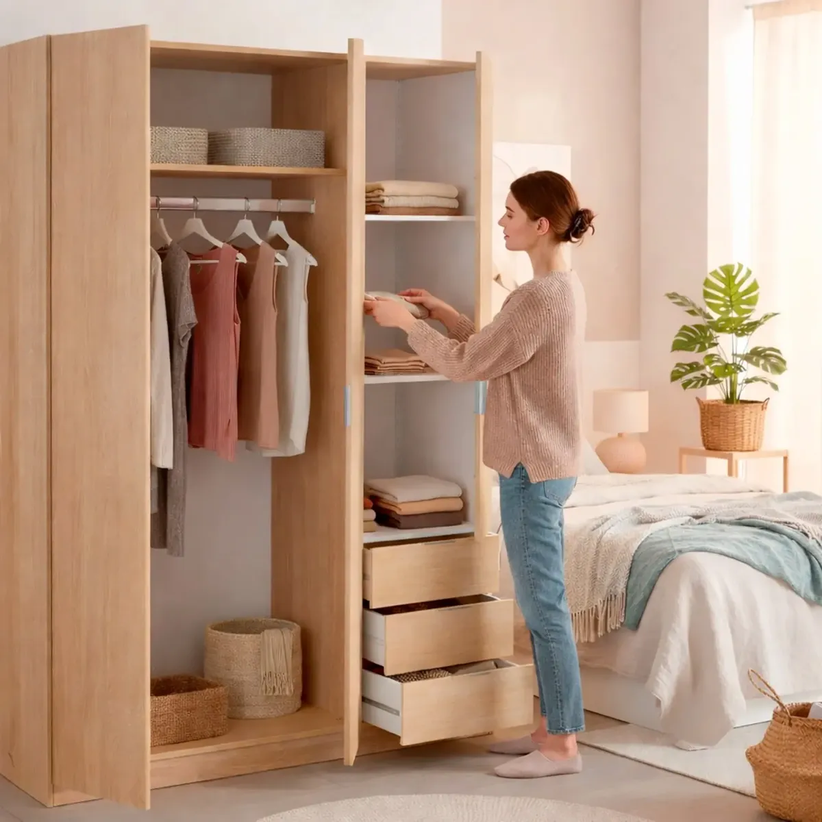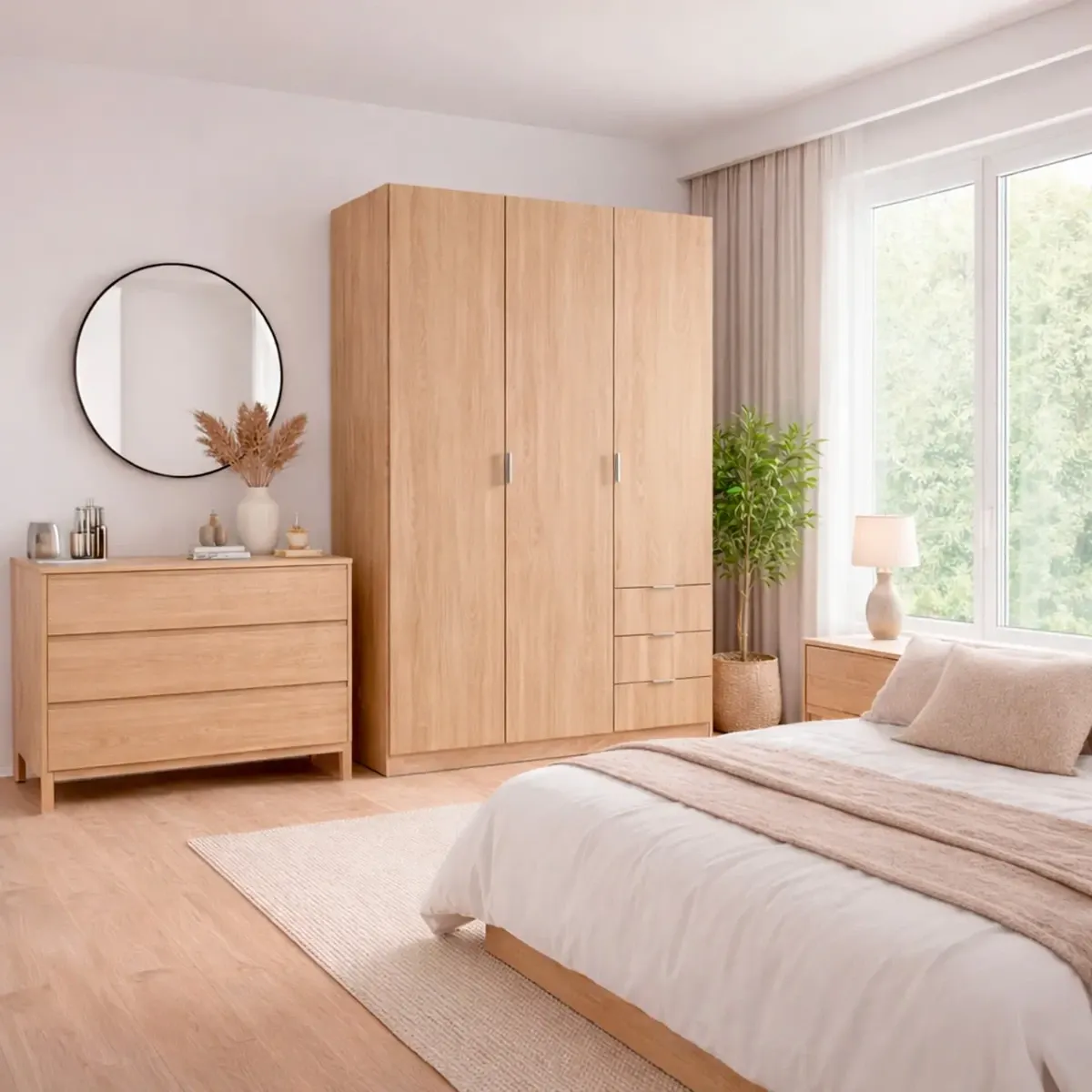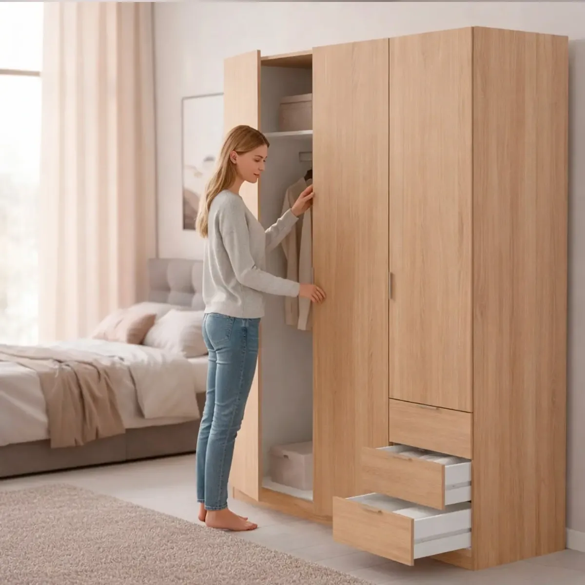 Armadio Con 3 Ante Battenti E 3 Cassetti Armadietto Con Asta Appendi Abiti E 3 Ripiani Ideale Per Camera Da Letto Soggiorno Salone Ingresso Design Moderno Lancaster 180 x 121 x 52 Cm