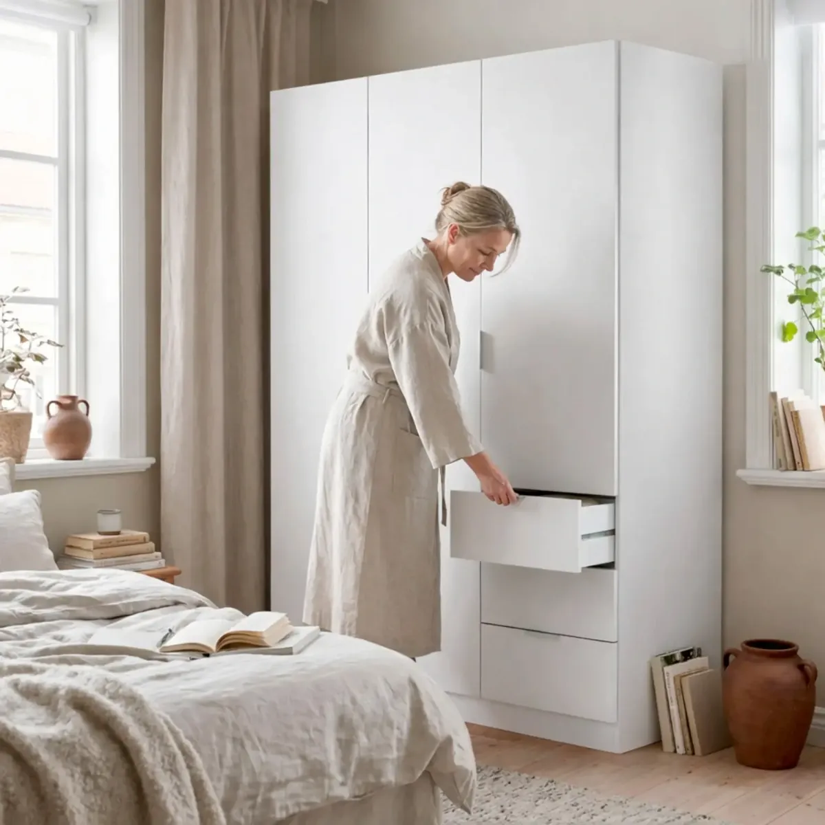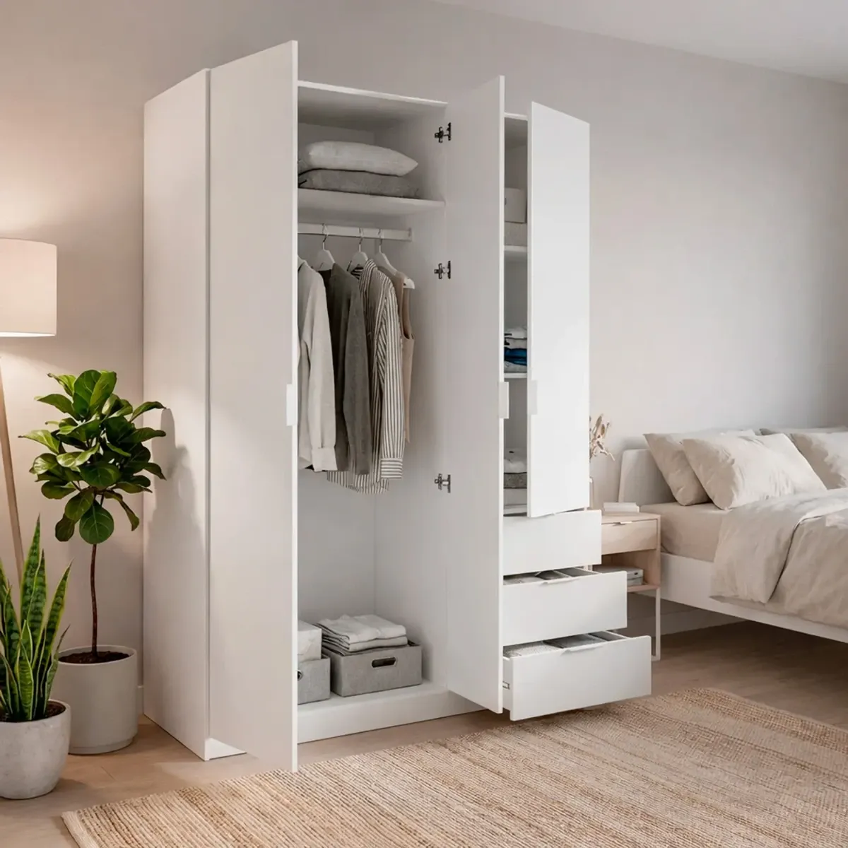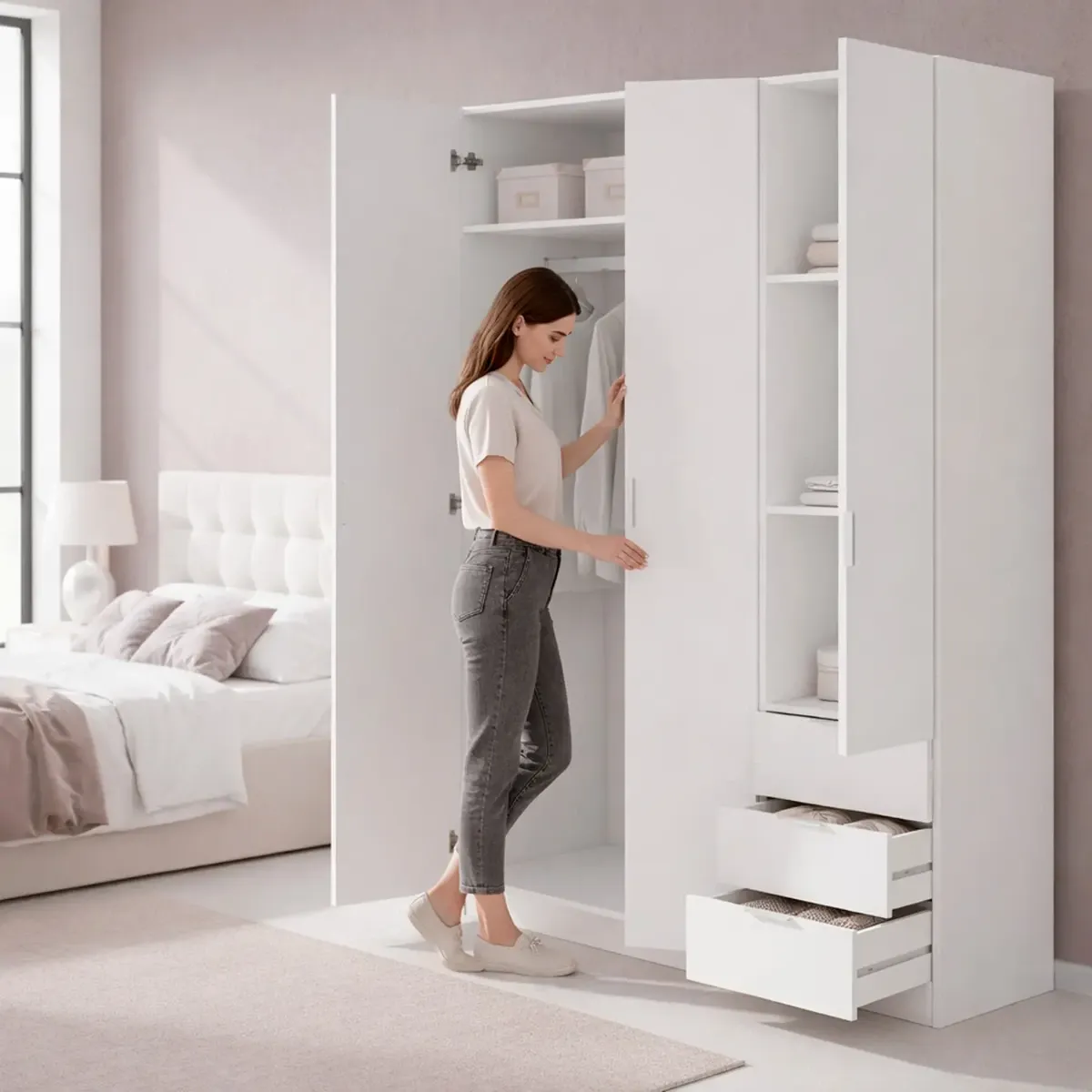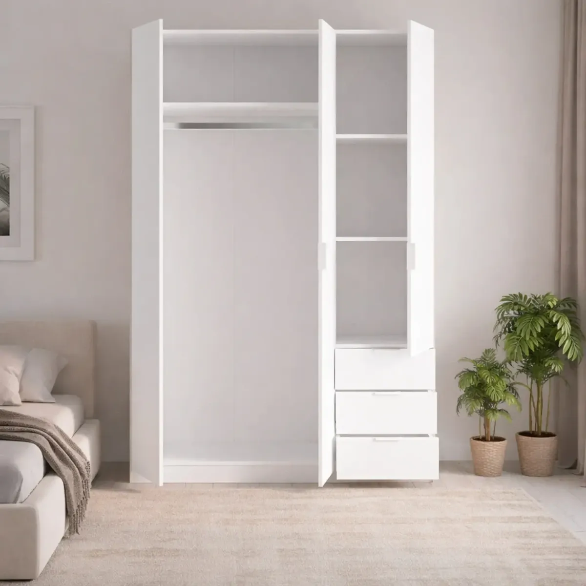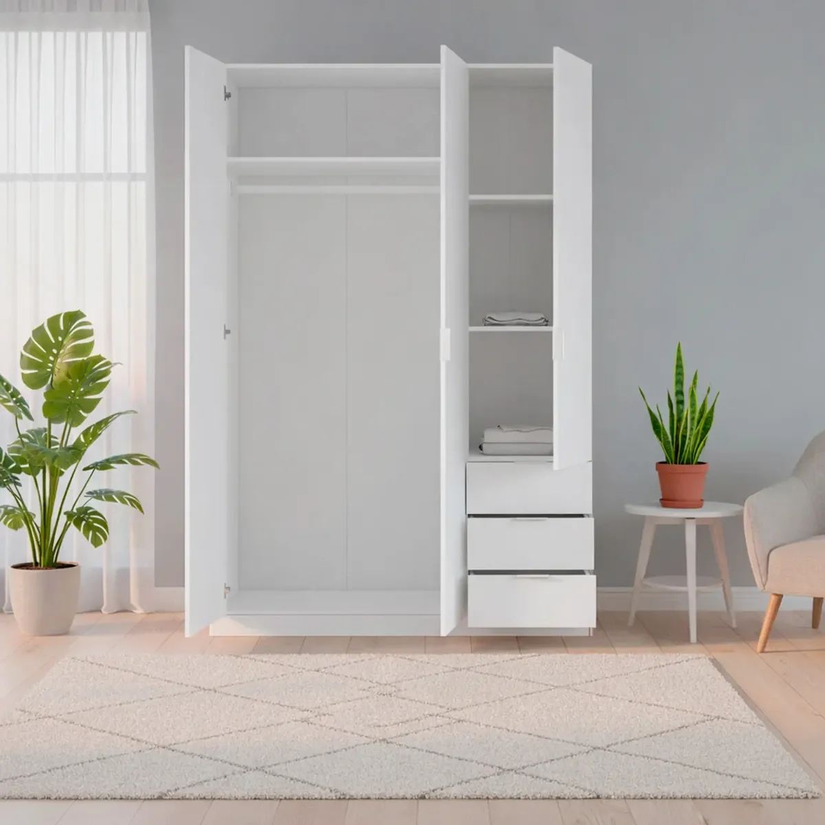 Armadio Con 3 Ante Battenti E 3 Cassetti Armadietto Con Asta Appendi Abiti E 3 Ripiani Ideale Per Camera Da Letto Soggiorno Salone Ingresso Design Moderno Lancaster 180x121x52 Cm