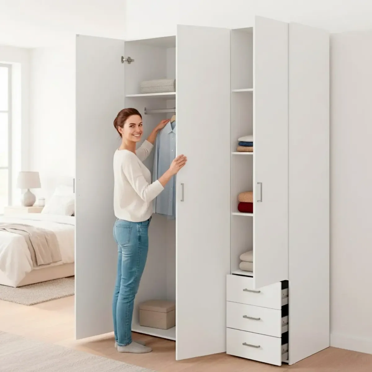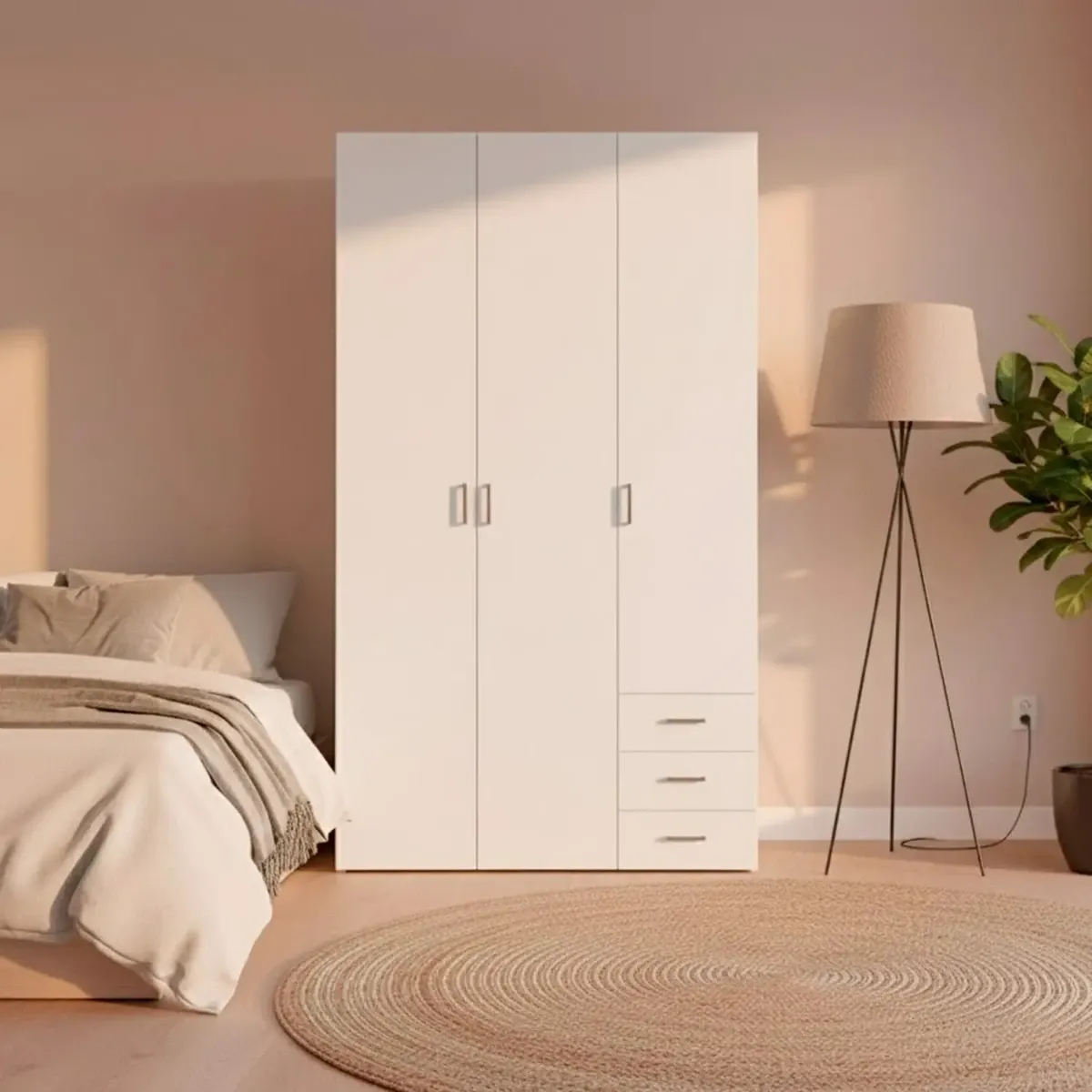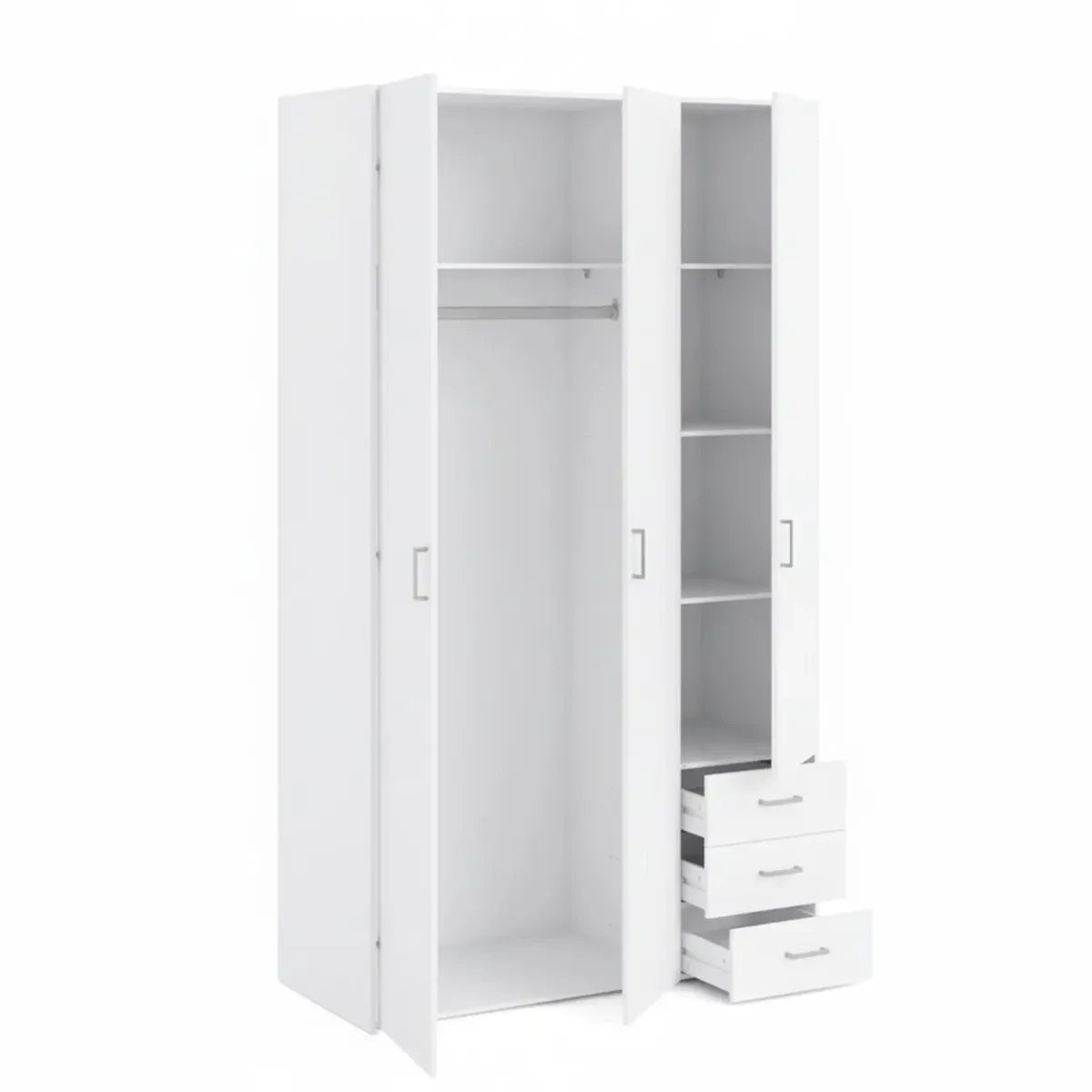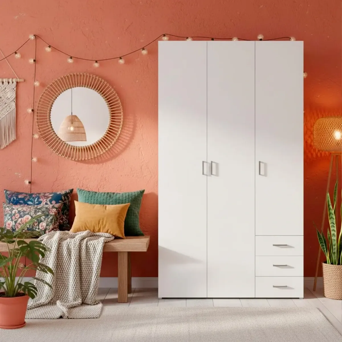 Armadio Con 3 Ante E 3 Cassetti Multiuso Per Abiti Indumenti Design Moderno Capiente Vano Appendiabiti Ripiani Interni Per Camera Da Letto Lavanderia 115.8 x 49.5 x 200.4 Cm