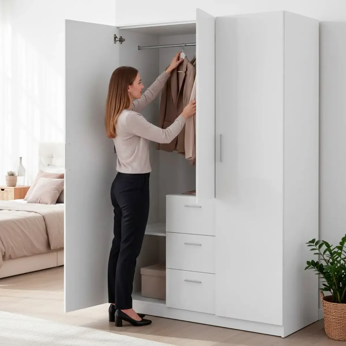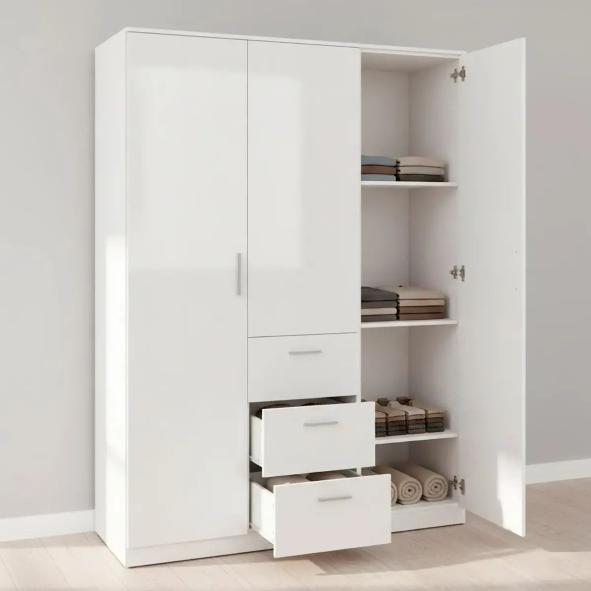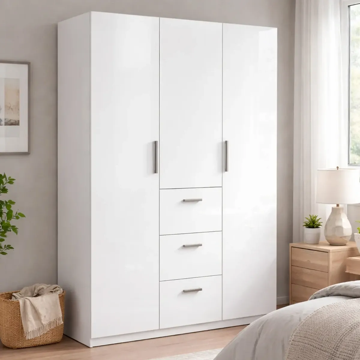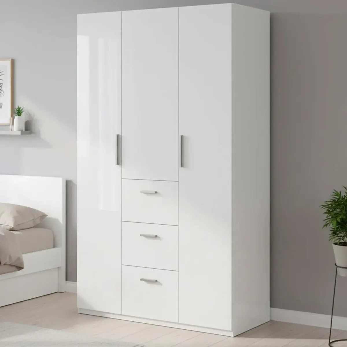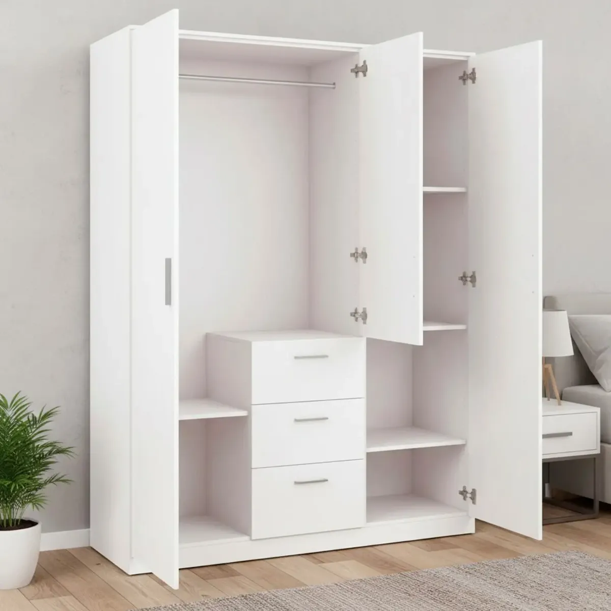 Armadio Da Camera 3 Ante E 3 Cassetti Con Appendiabiti E 6 Ripiani Guardaroba Capiente Salvaspazio Per Camera Matrimoniale Ospiti Ripostiglio Lavanderia 117 x 203 x 52 Cm