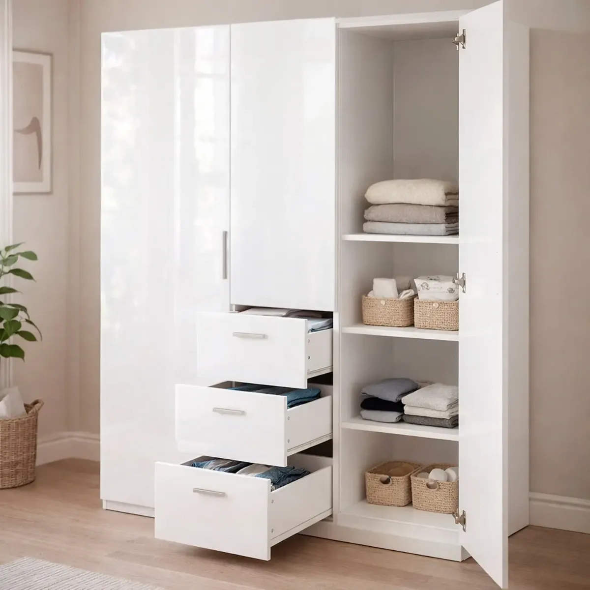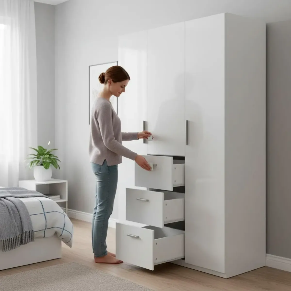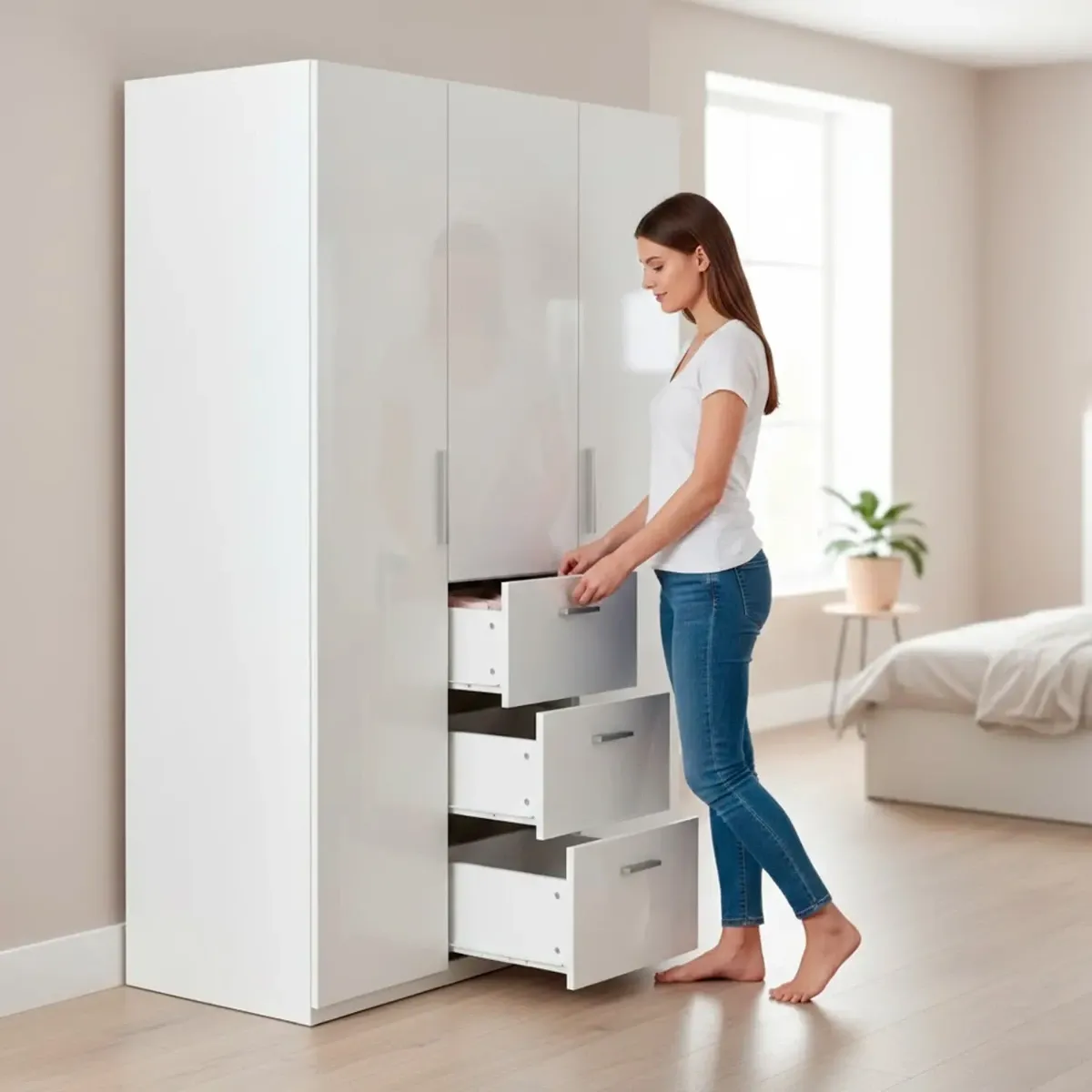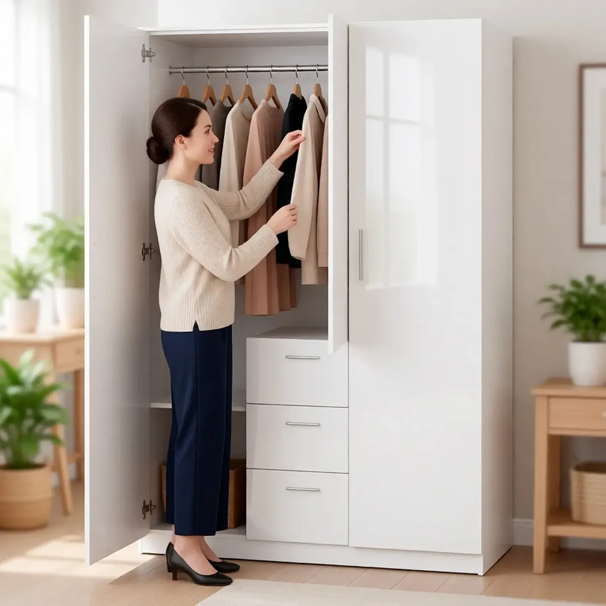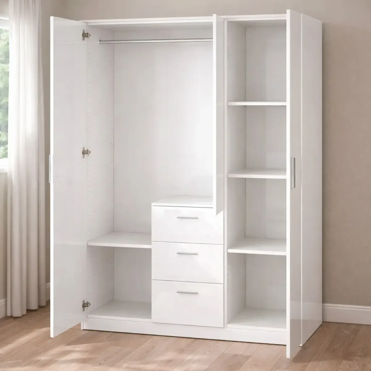 Armadio Da Camera 3 Ante E 3 Cassetti Con Appendiabiti E 6 Ripiani Guardaroba Capiente Salvaspazio Per Camera Matrimoniale Ospiti Ripostiglio Lavanderia 117 x 203 x 52 Cm
