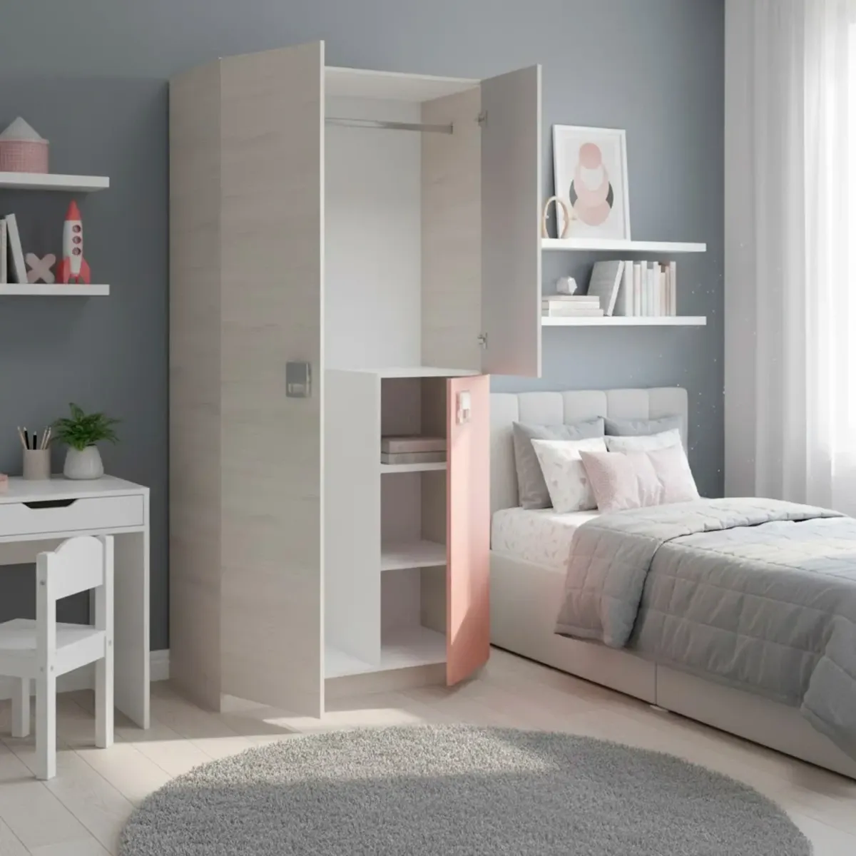 Armadio Giovanile A 3 Ante Armadietto Per Cameretta Ragazzi Con Barra Appendiabiti E 3 Ripiani Mobile Camera Design Moderno Salvaspazio 200 x 52 x 90 Cm