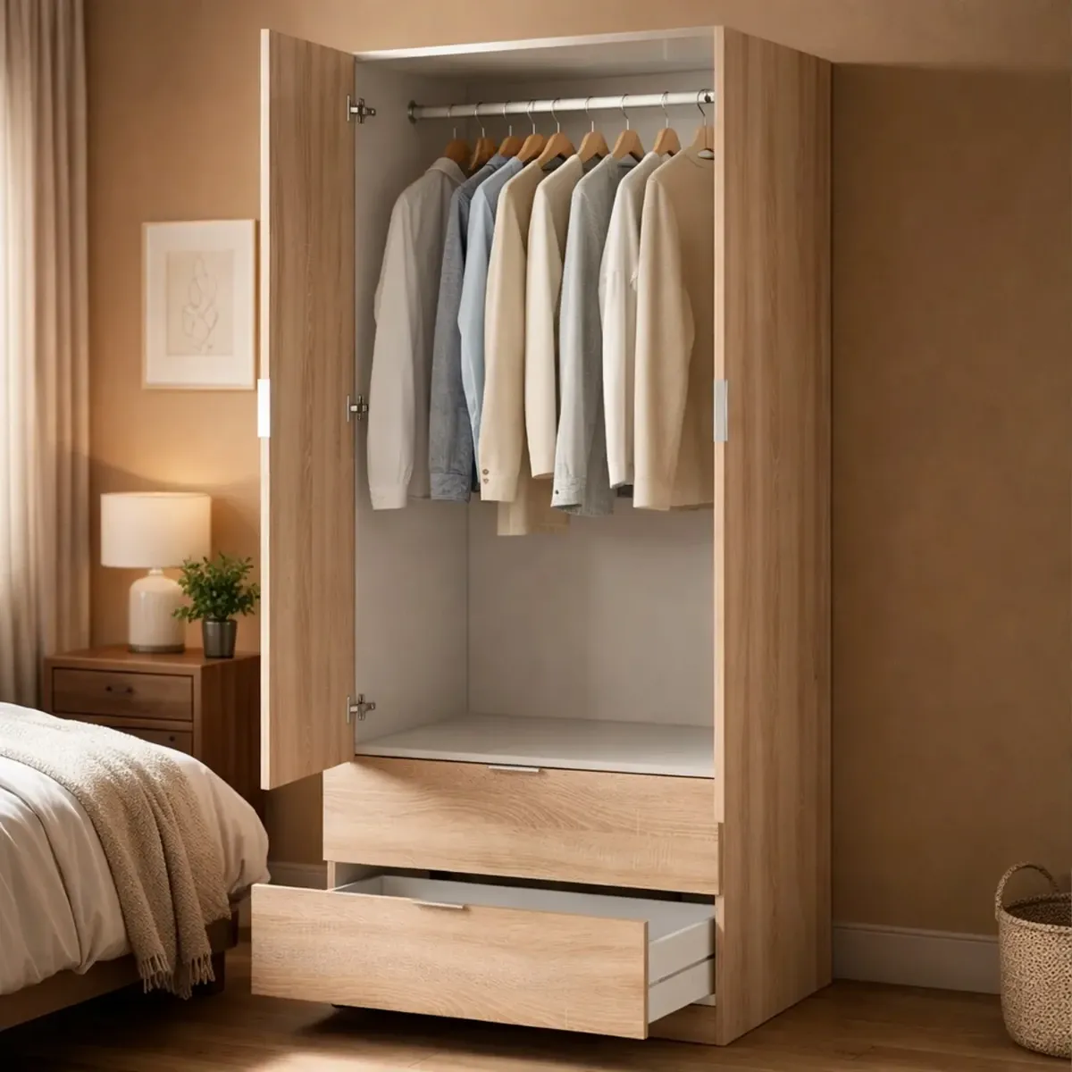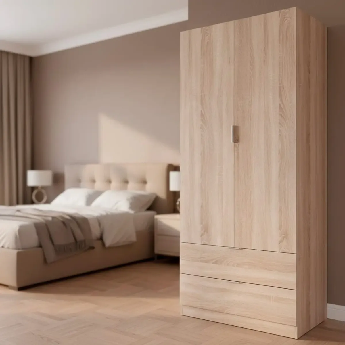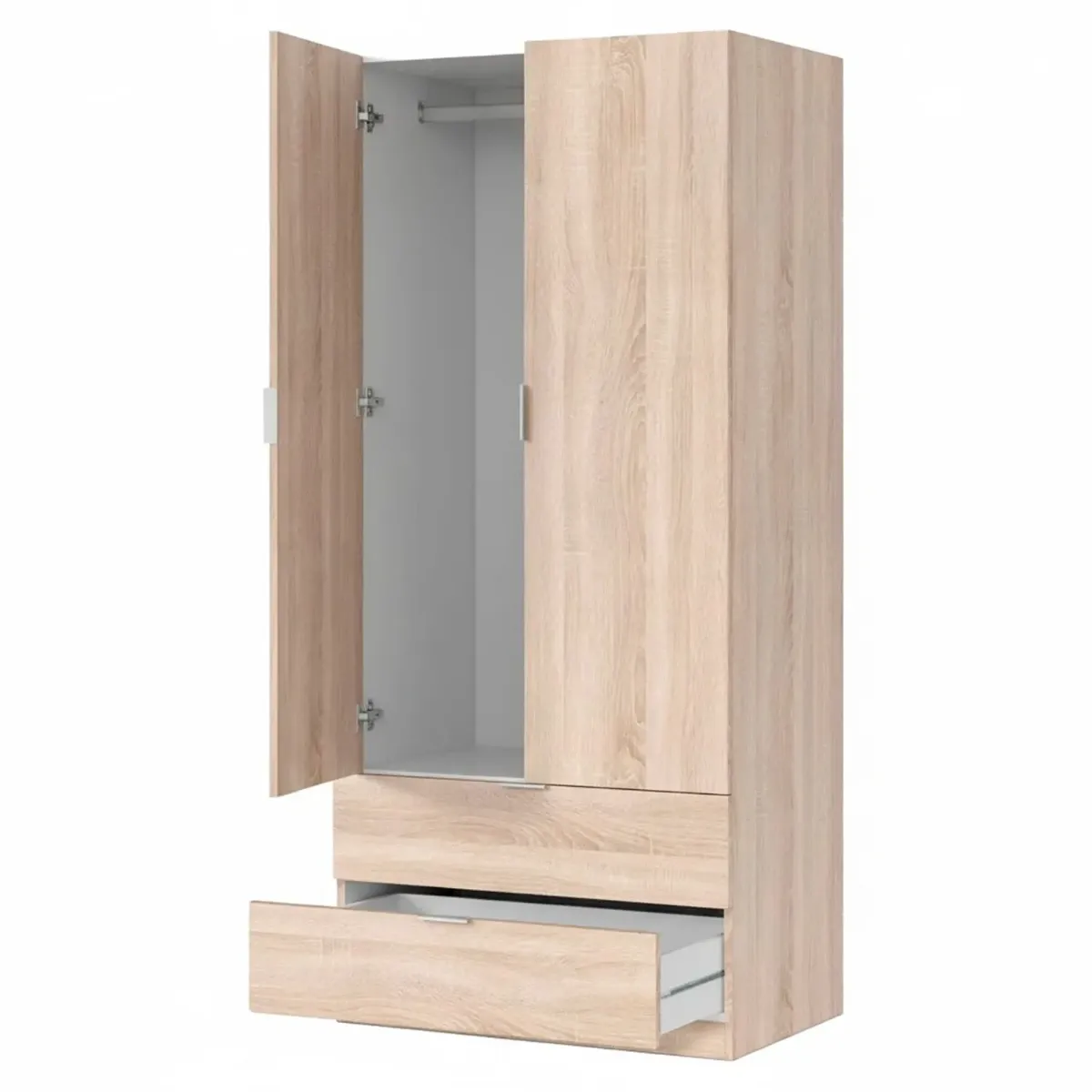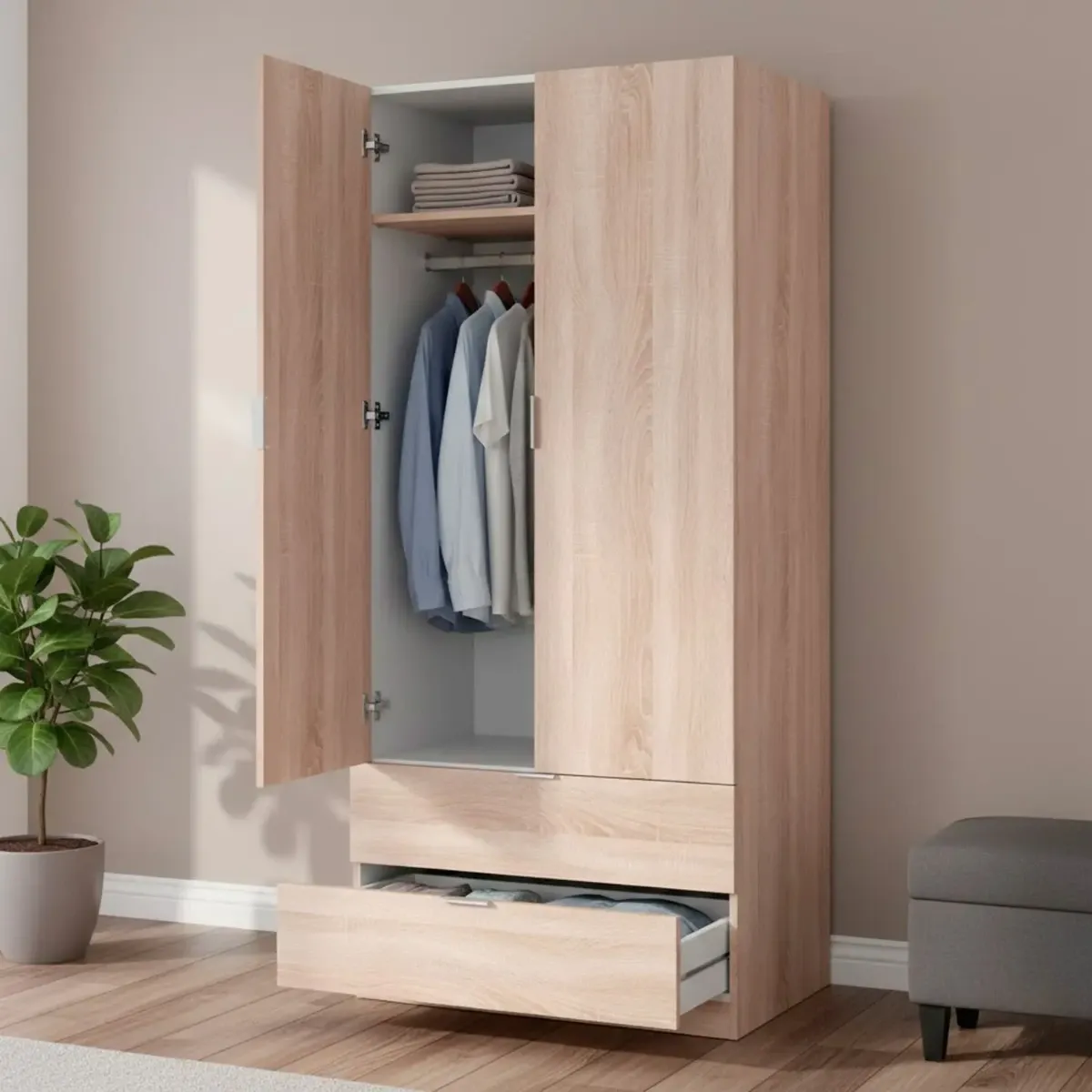 Armadio Guardaroba A 2 Ante Con Barra Appendiabiti E 2 Cassetti Inferiori Mobile Capiente Salvaspazio Per Camera Da Letto Stanza Ospiti Design Moderno 180 x 81.2 x 52 Cm