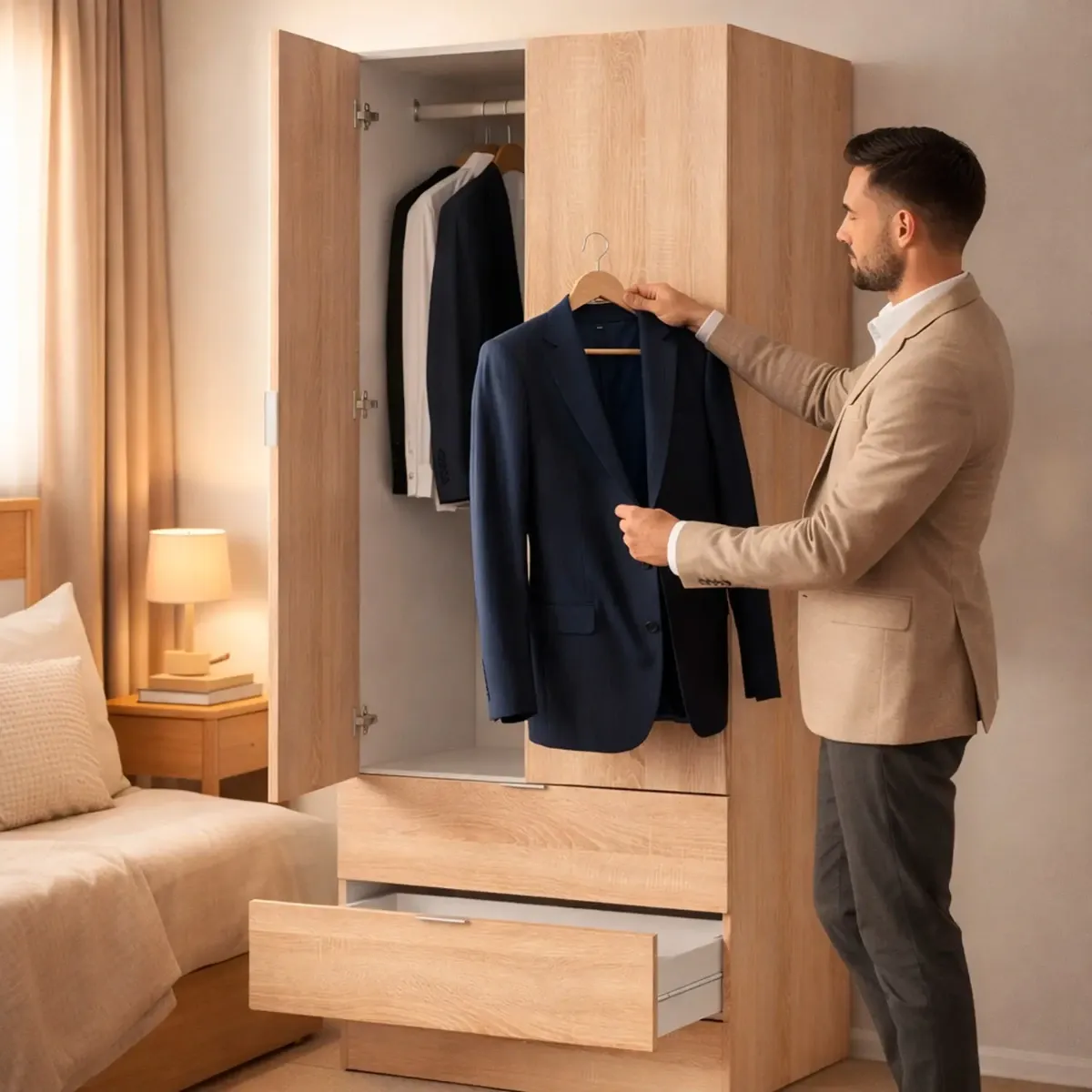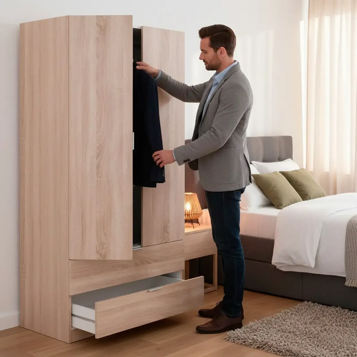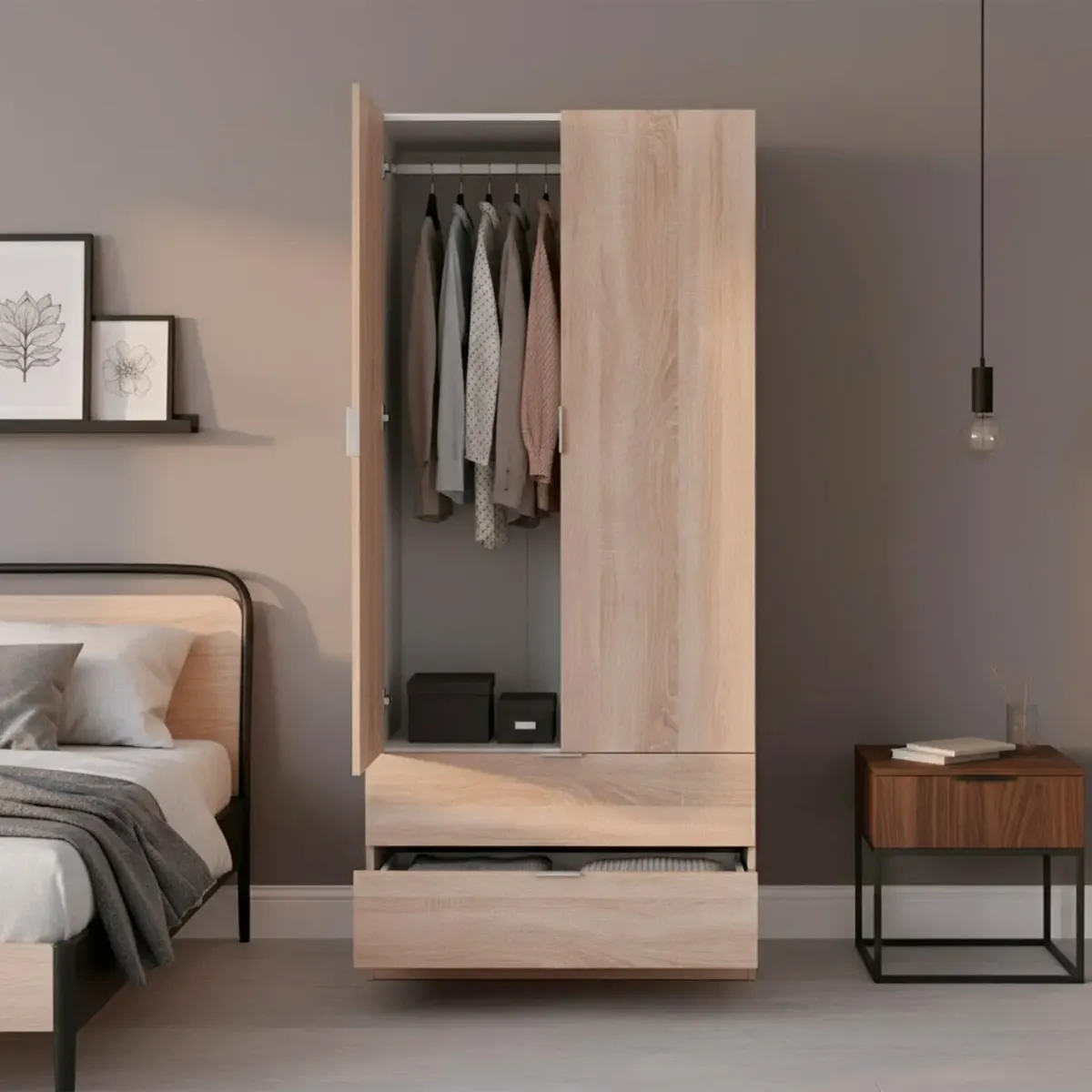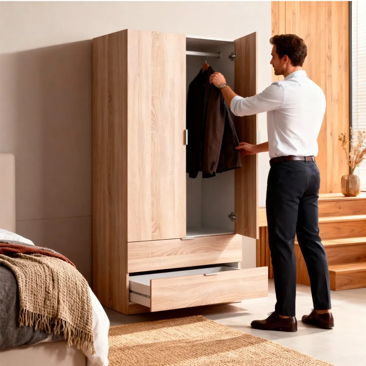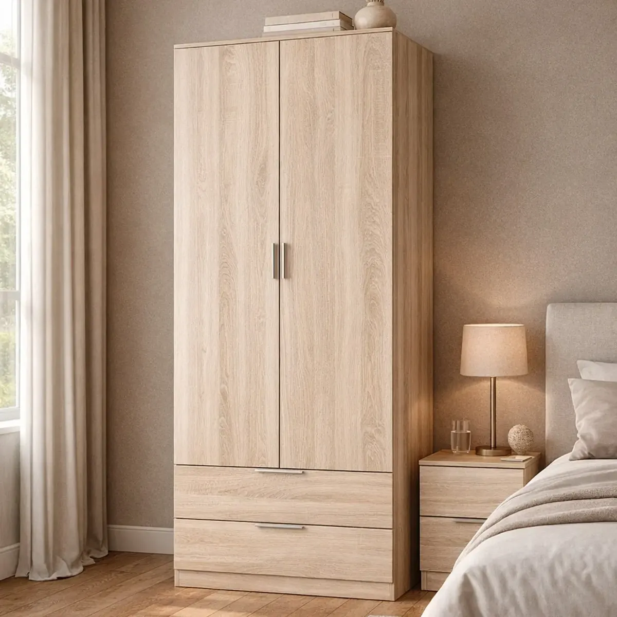 Armadio Guardaroba A 2 Ante Con Barra Appendiabiti E 2 Cassetti Inferiori Mobile Capiente Salvaspazio Per Camera Da Letto Stanza Ospiti Design Moderno 180 x 81.2 x 52 Cm