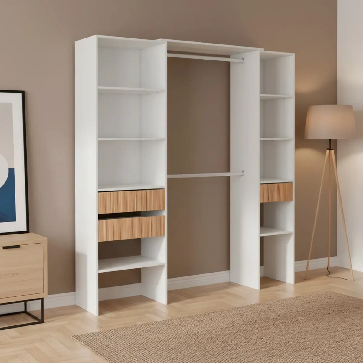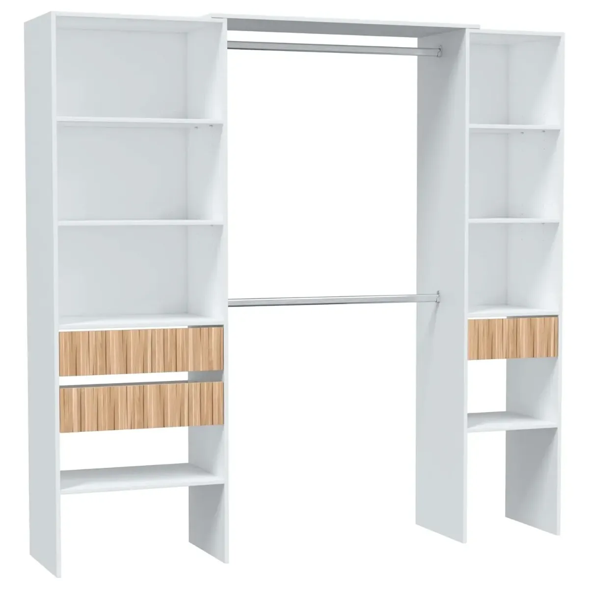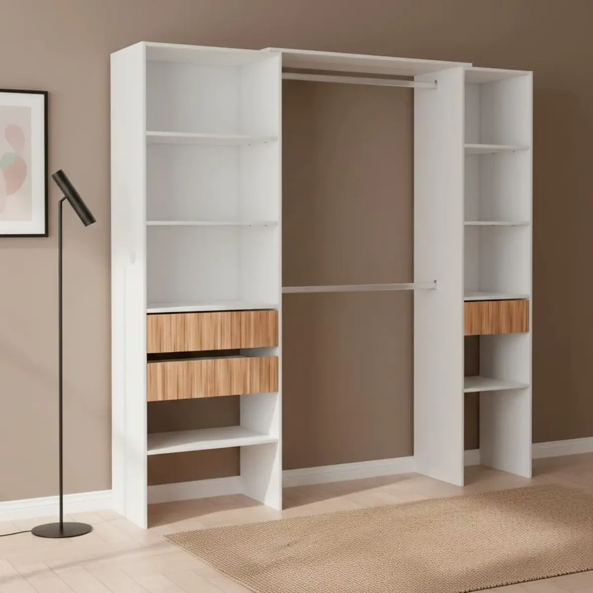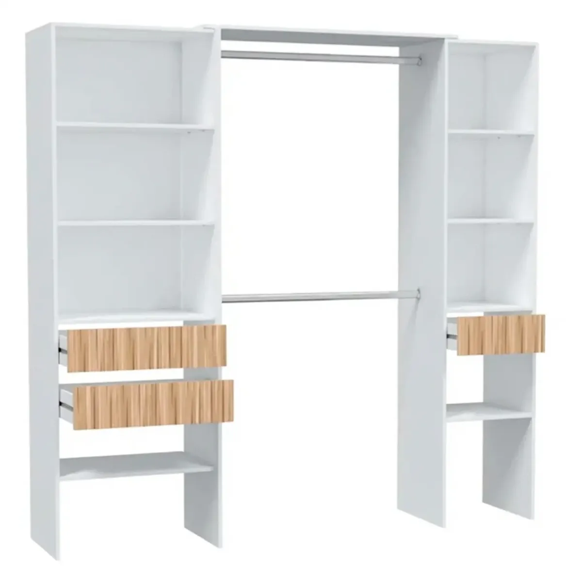 Armadio Guardaroba Aperto Con Ripiani Regolabili 3 Cassetti Doppio Appendiabiti In Alluminio Mobile Armadietto Multiuso Senza Ante Camera Da Letto Cameretta 190 x 187 x 40 Cm