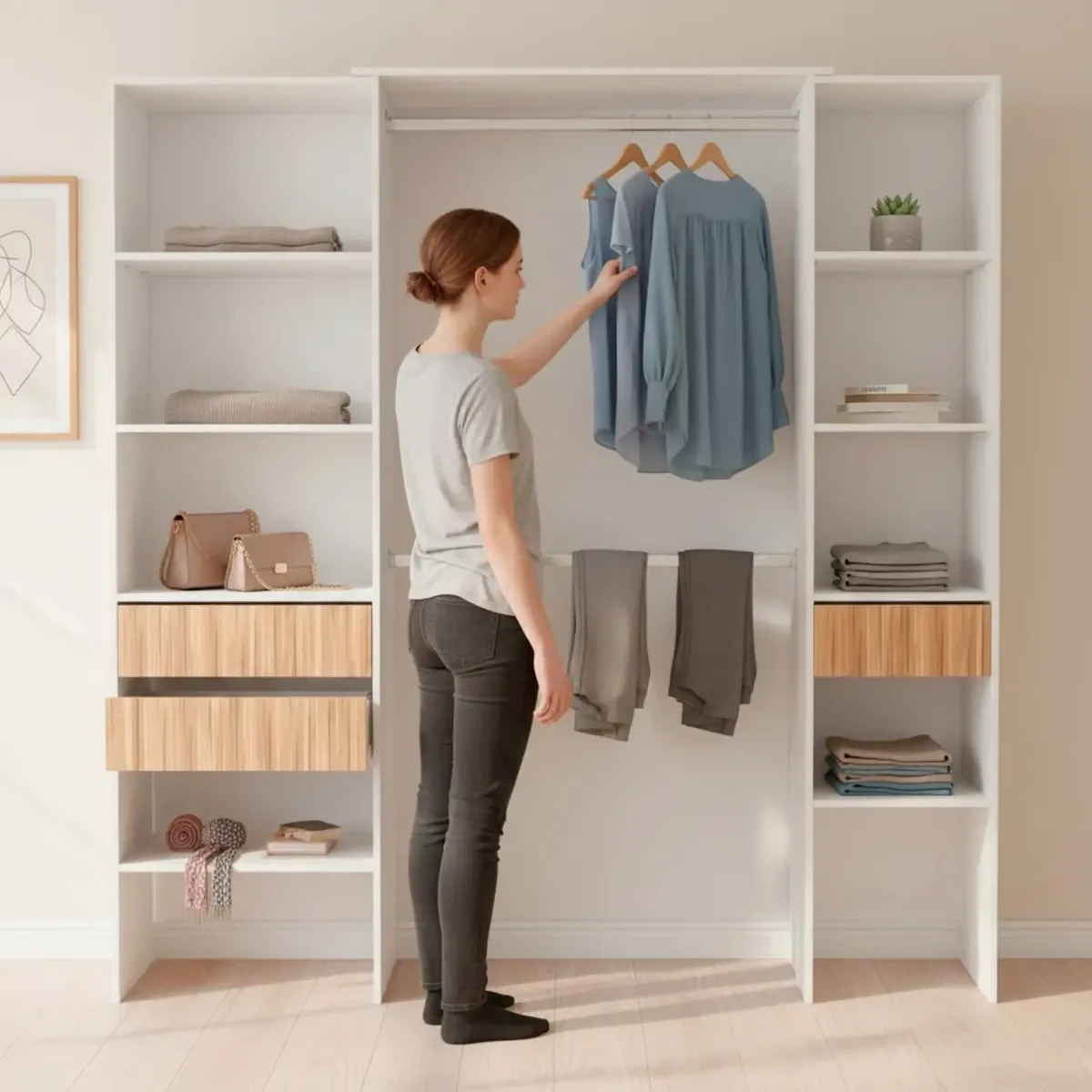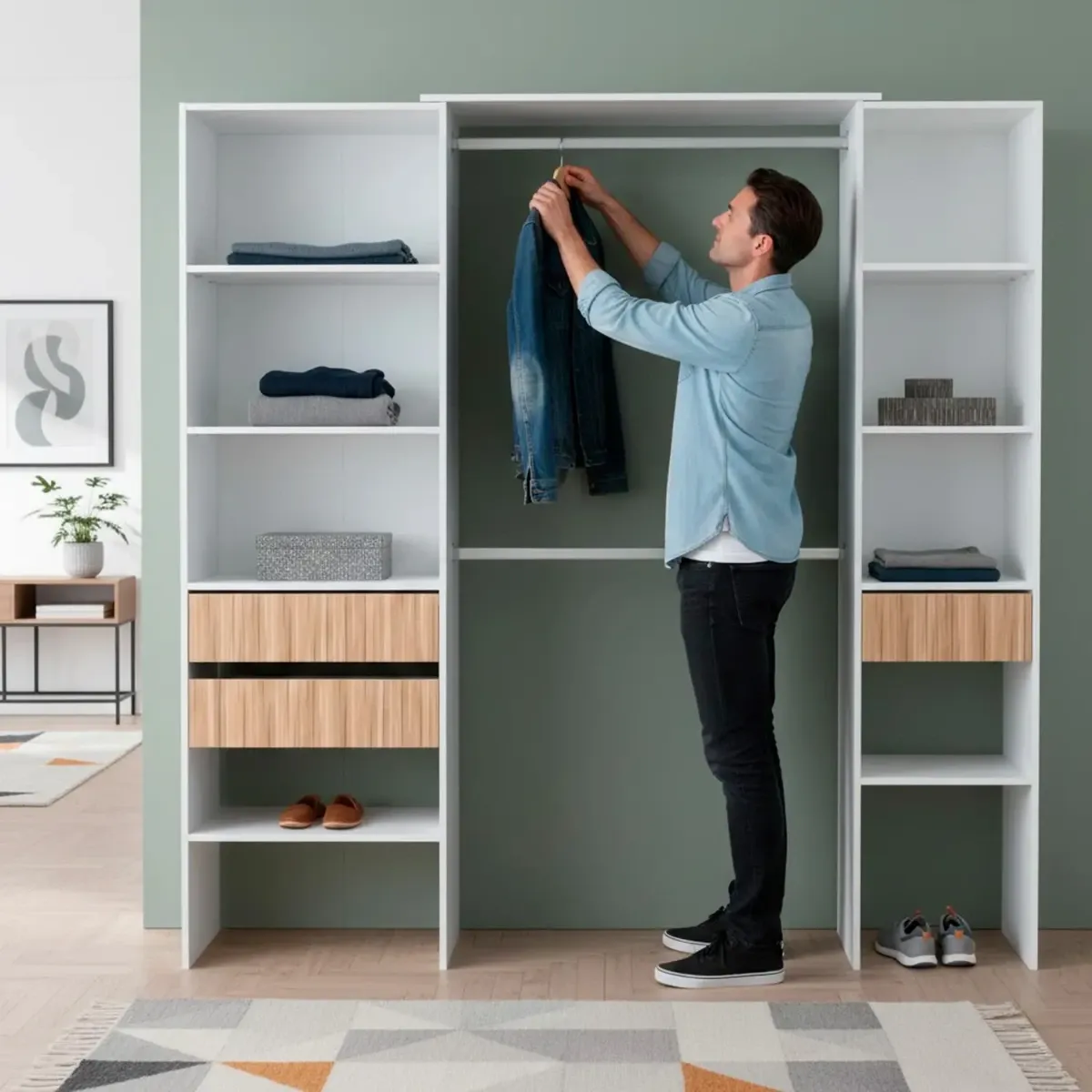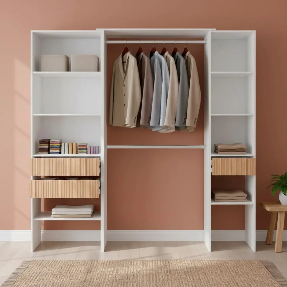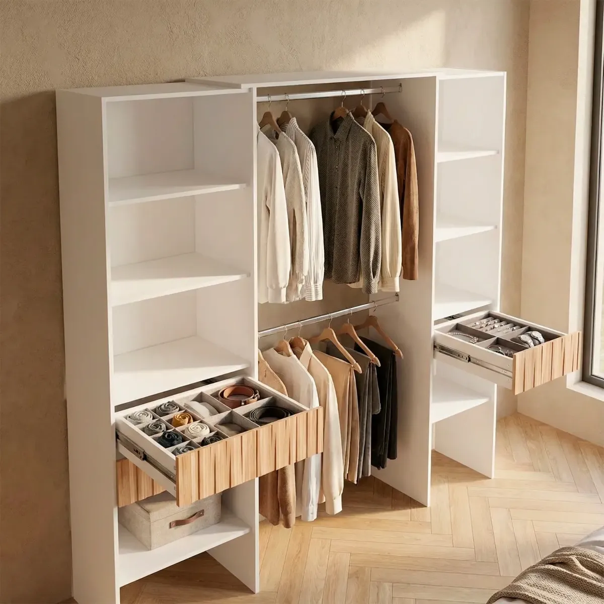 Armadio Guardaroba Aperto Con Ripiani Regolabili 3 Cassetti Doppio Appendiabiti In Alluminio Mobile Armadietto Multiuso Senza Ante Camera Da Letto Cameretta 190 x 187 x 40 Cm