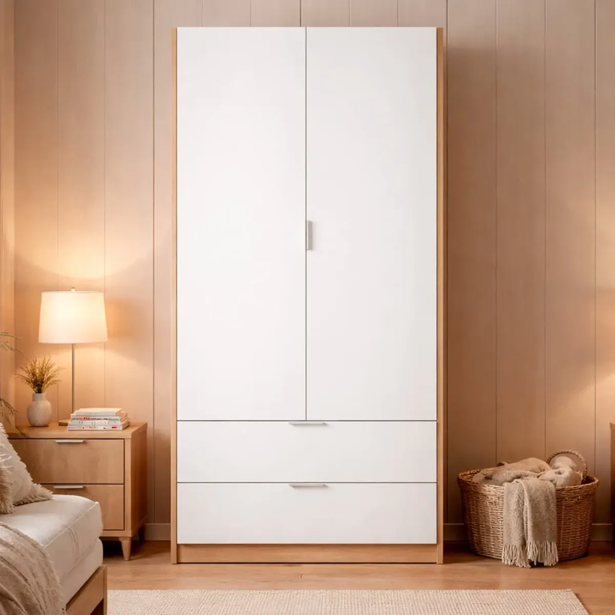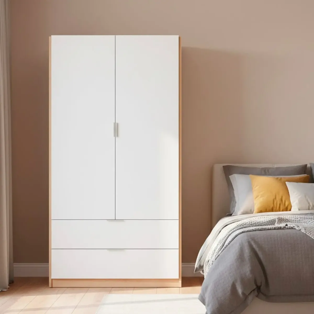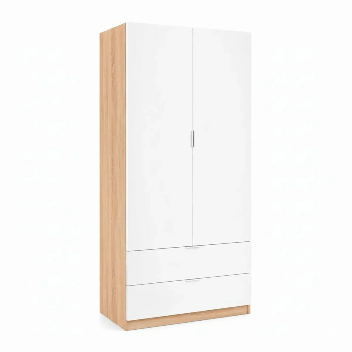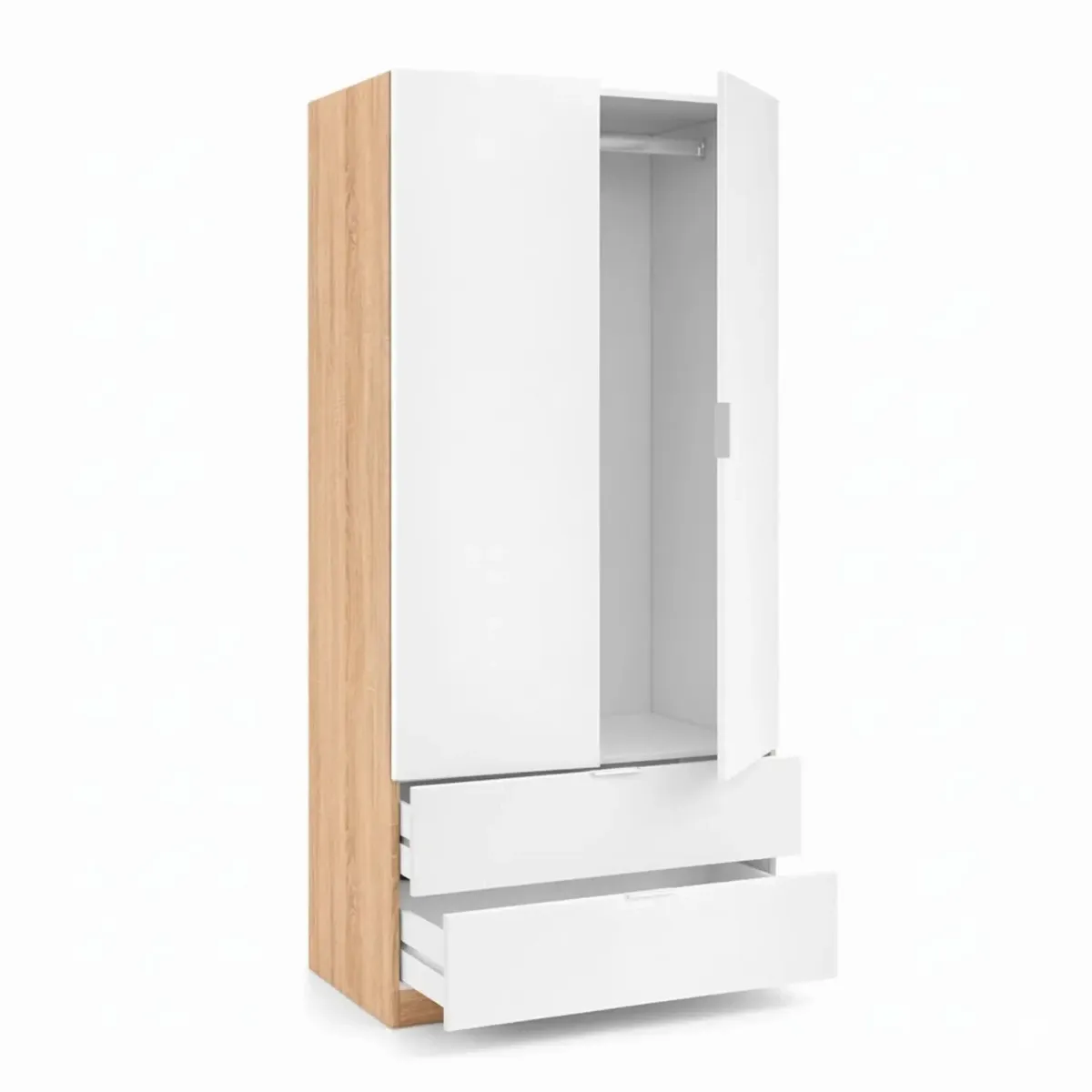 Armadio Guardaroba Con 2 Ante Battenti Asta Appendiabiti E 2 Cassetti Design Moderno Stile Nordico Per Camera da Letto Ospiti Ambienti Multifunzione 80 x 52 x 180 Cm