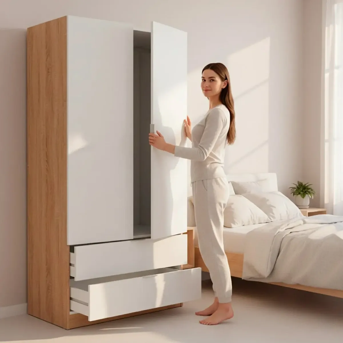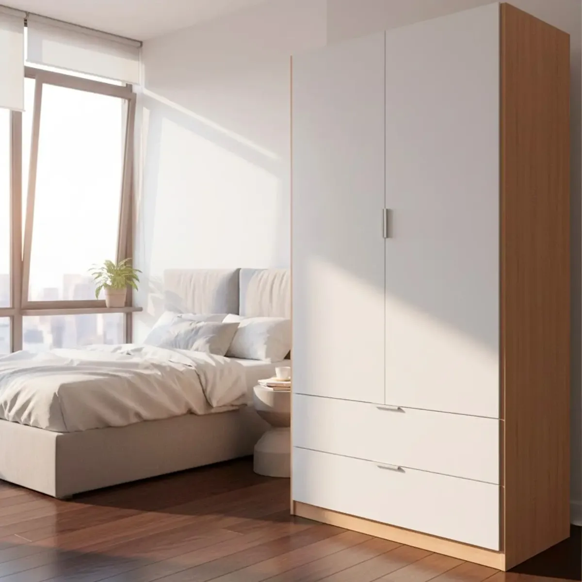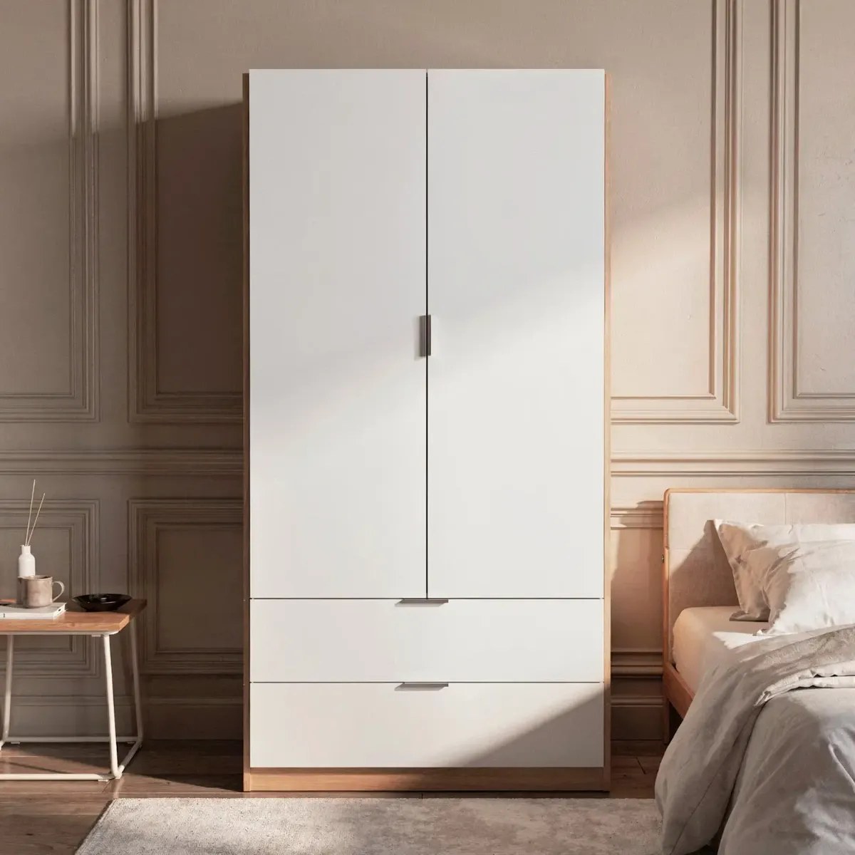 Armadio Guardaroba Con 2 Ante Battenti Asta Appendiabiti E 2 Cassetti Design Moderno Stile Nordico Per Camera da Letto Ospiti Ambienti Multifunzione 80 x 52 x 180 Cm