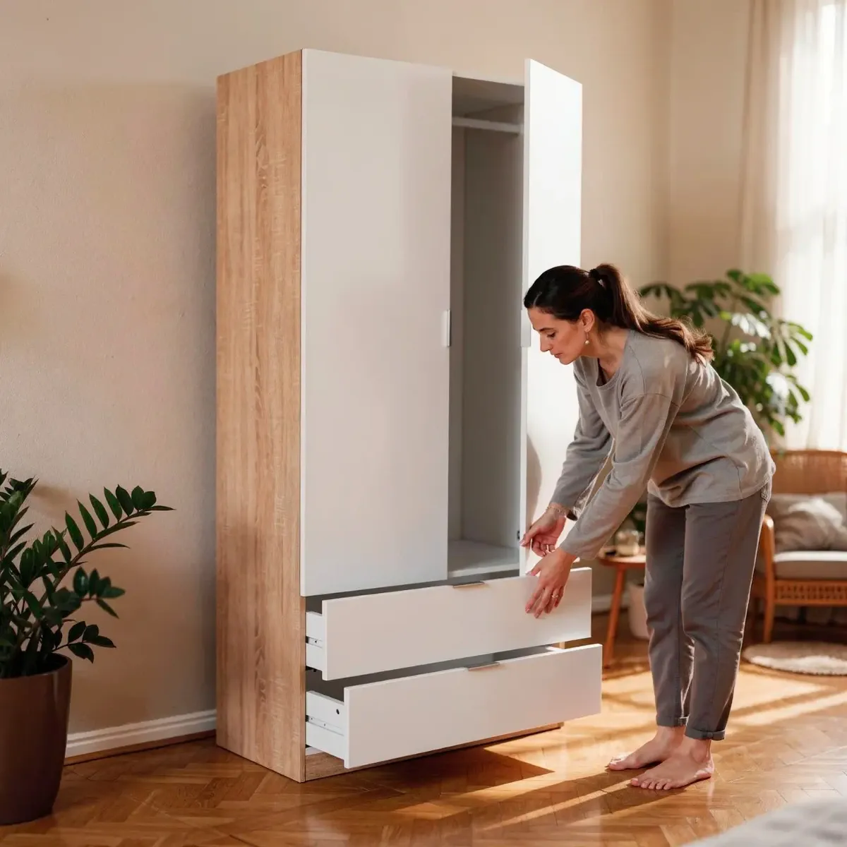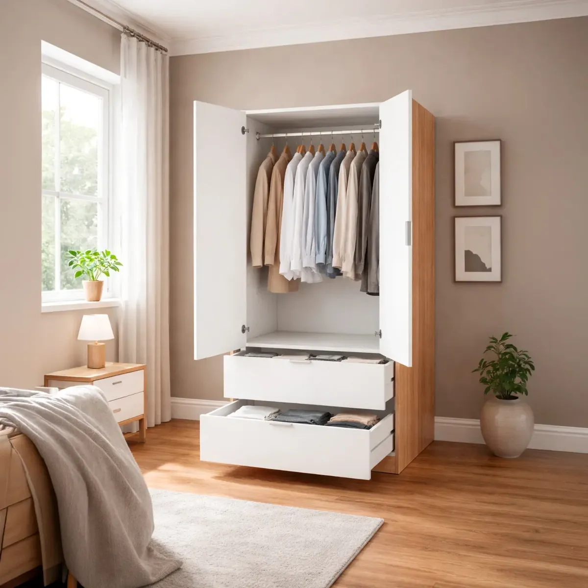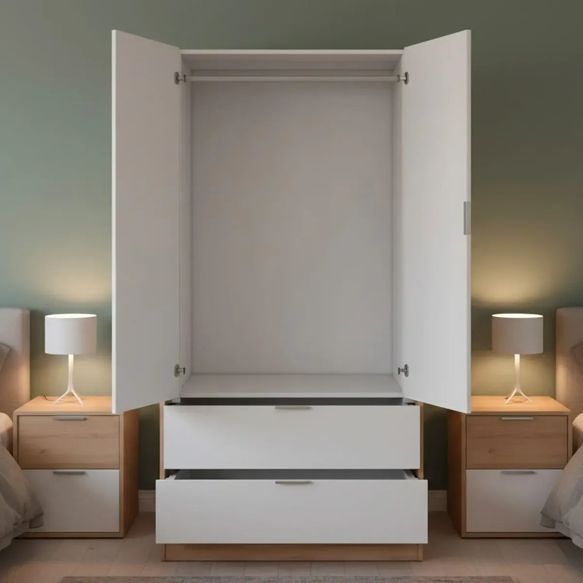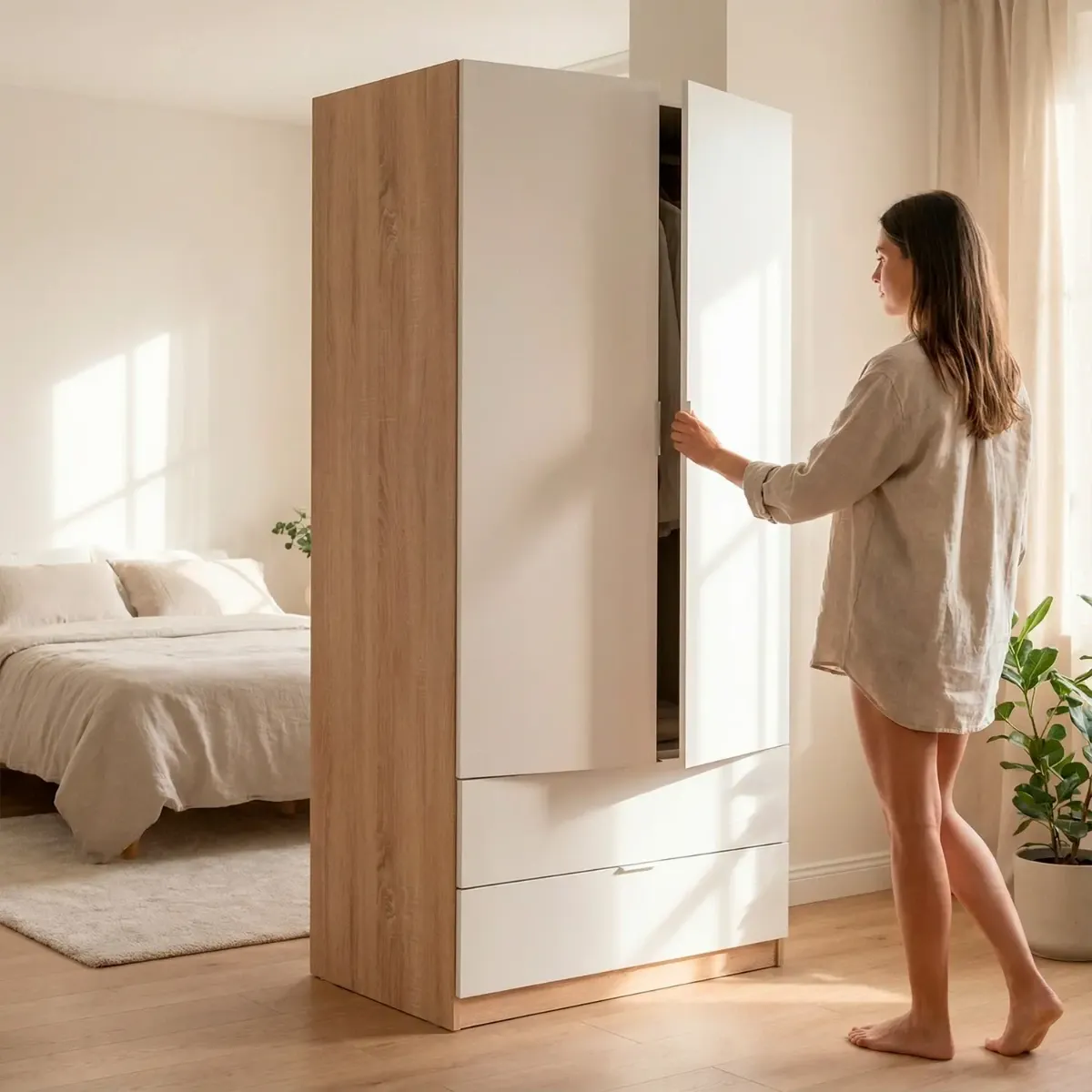 Armadio Guardaroba Con 2 Ante Battenti Asta Appendiabiti E 2 Cassetti Design Moderno Stile Nordico Per Camera da Letto Ospiti Ambienti Multifunzione 80 x 52 x 180 Cm