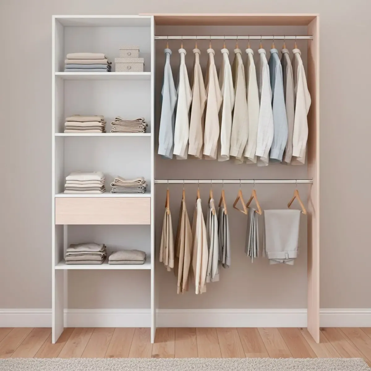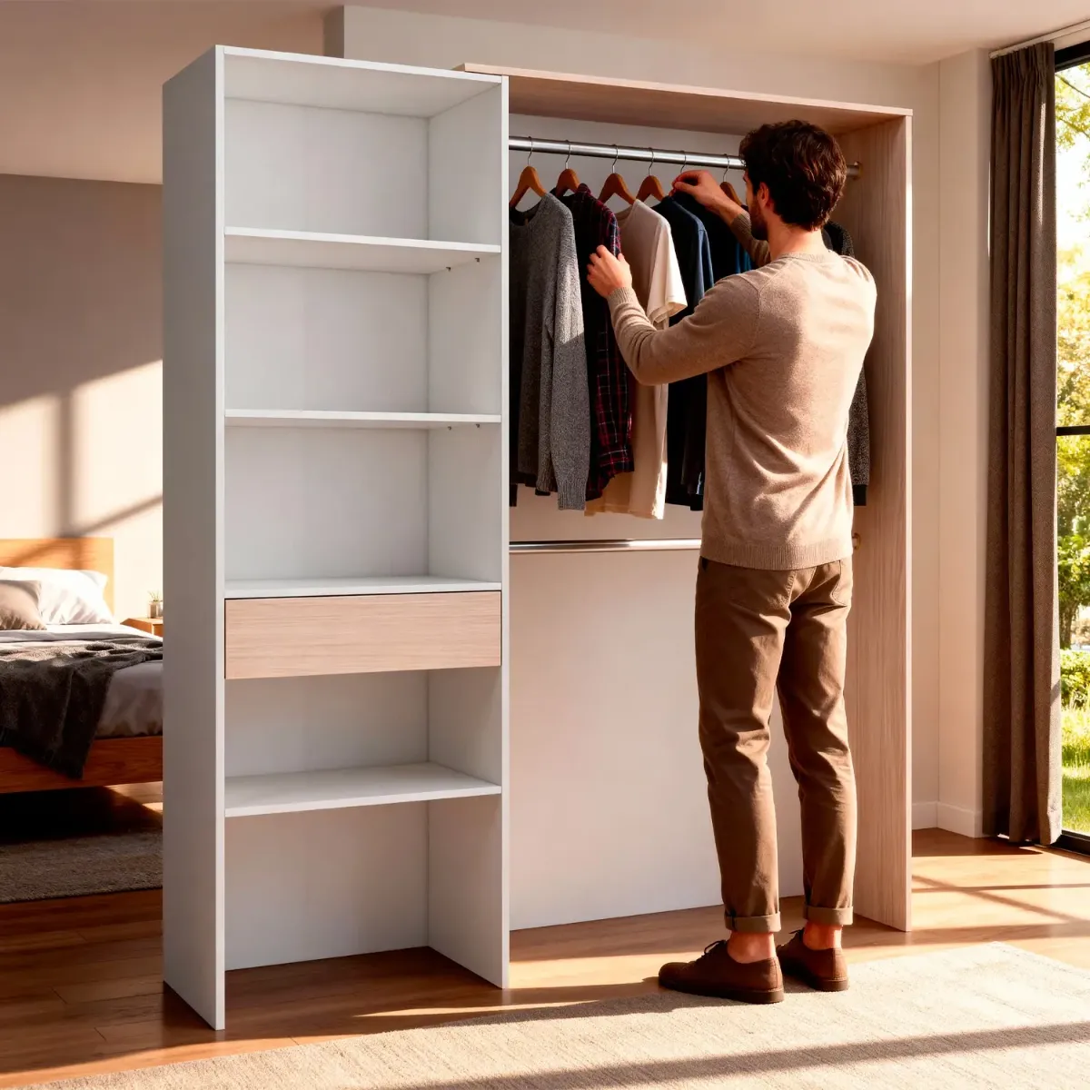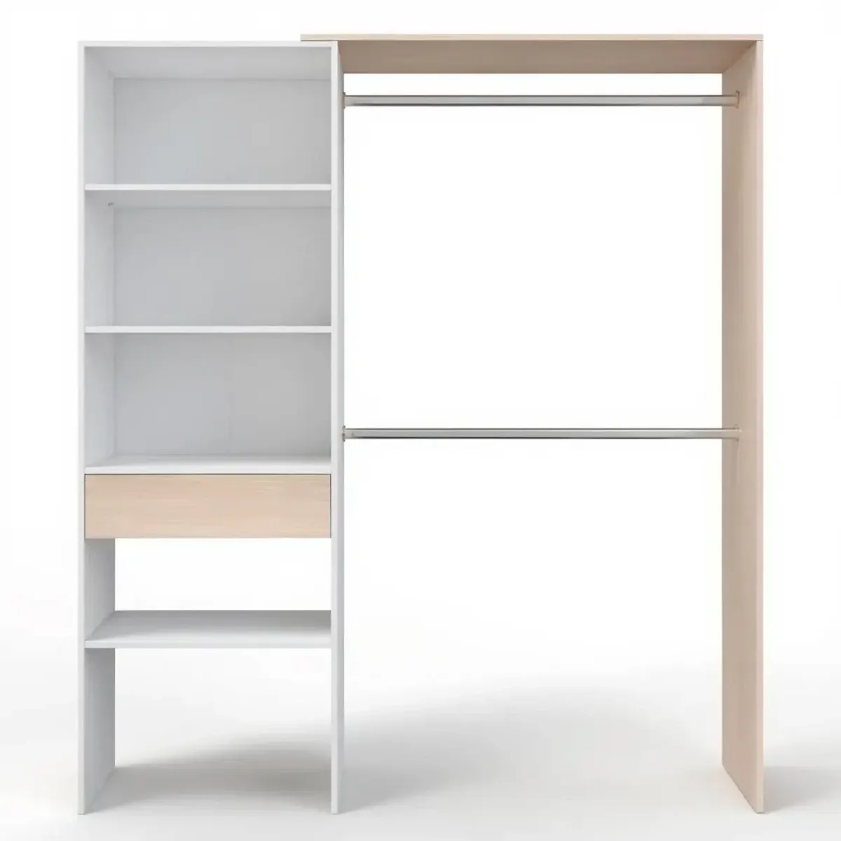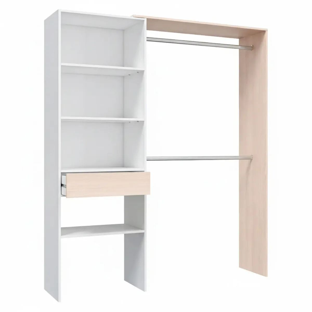 Armadio Guardaroba Con 2 Barre Appendiabiti 4 Ripiani E Cassetto Armadietto Mobile Salvaspazio Reversibile per Camera Cameretta Cabina Armadio 187 x 40 x 158 Cm