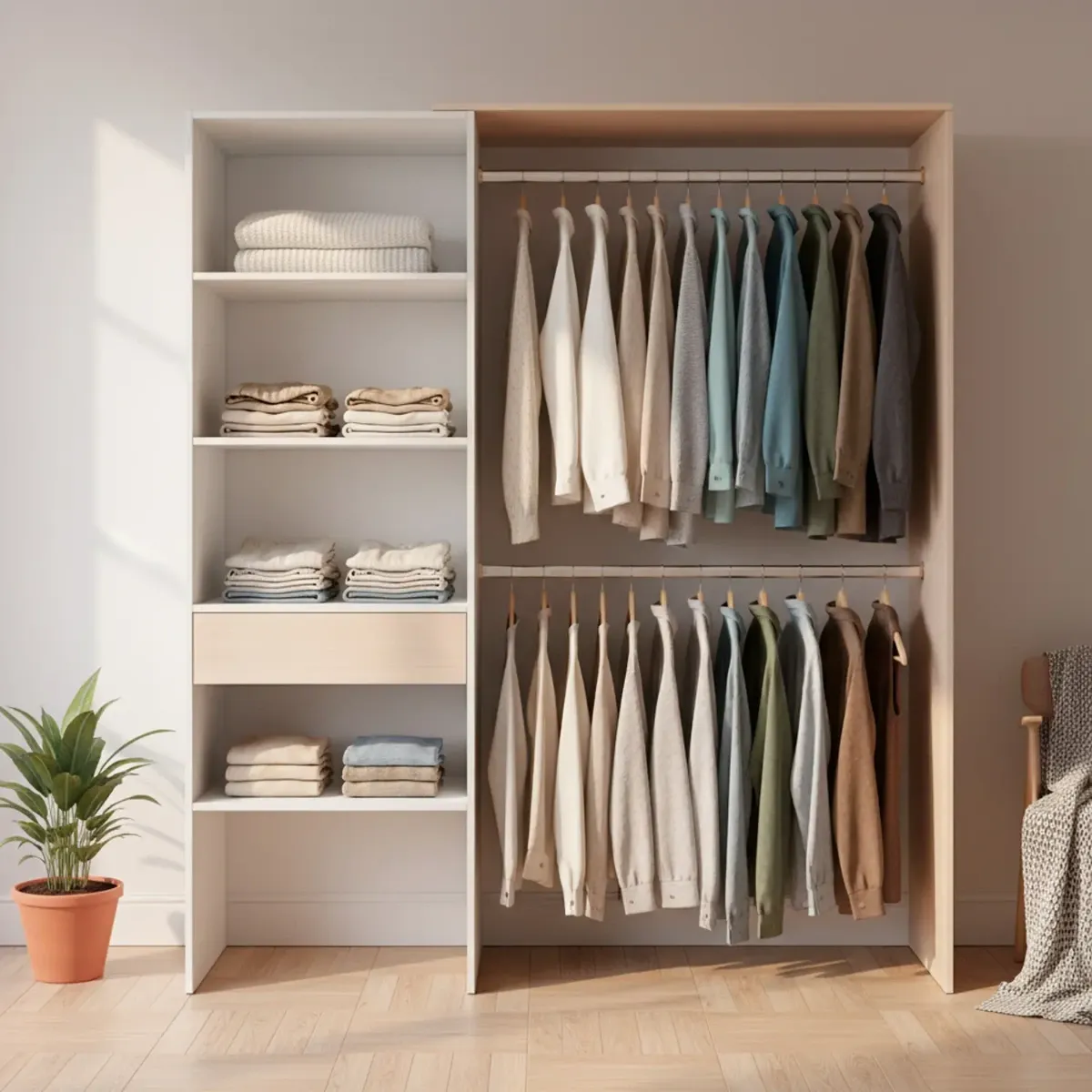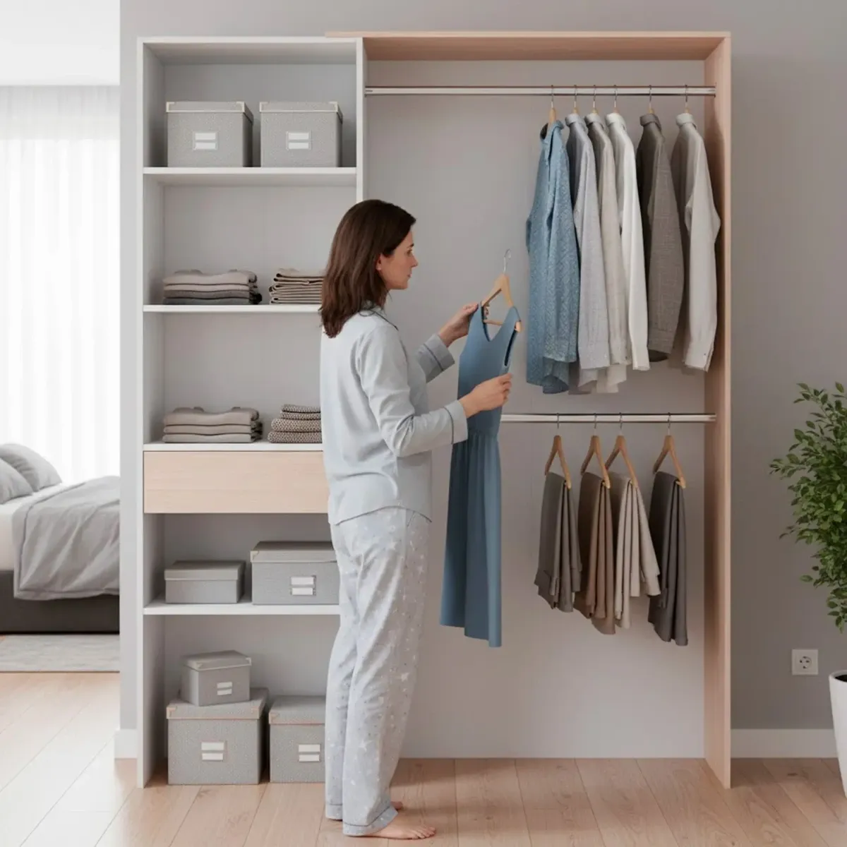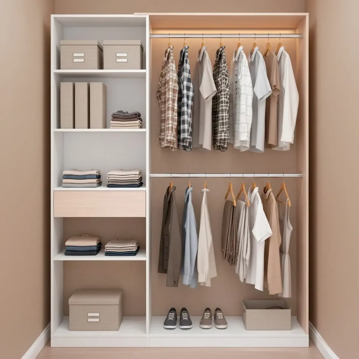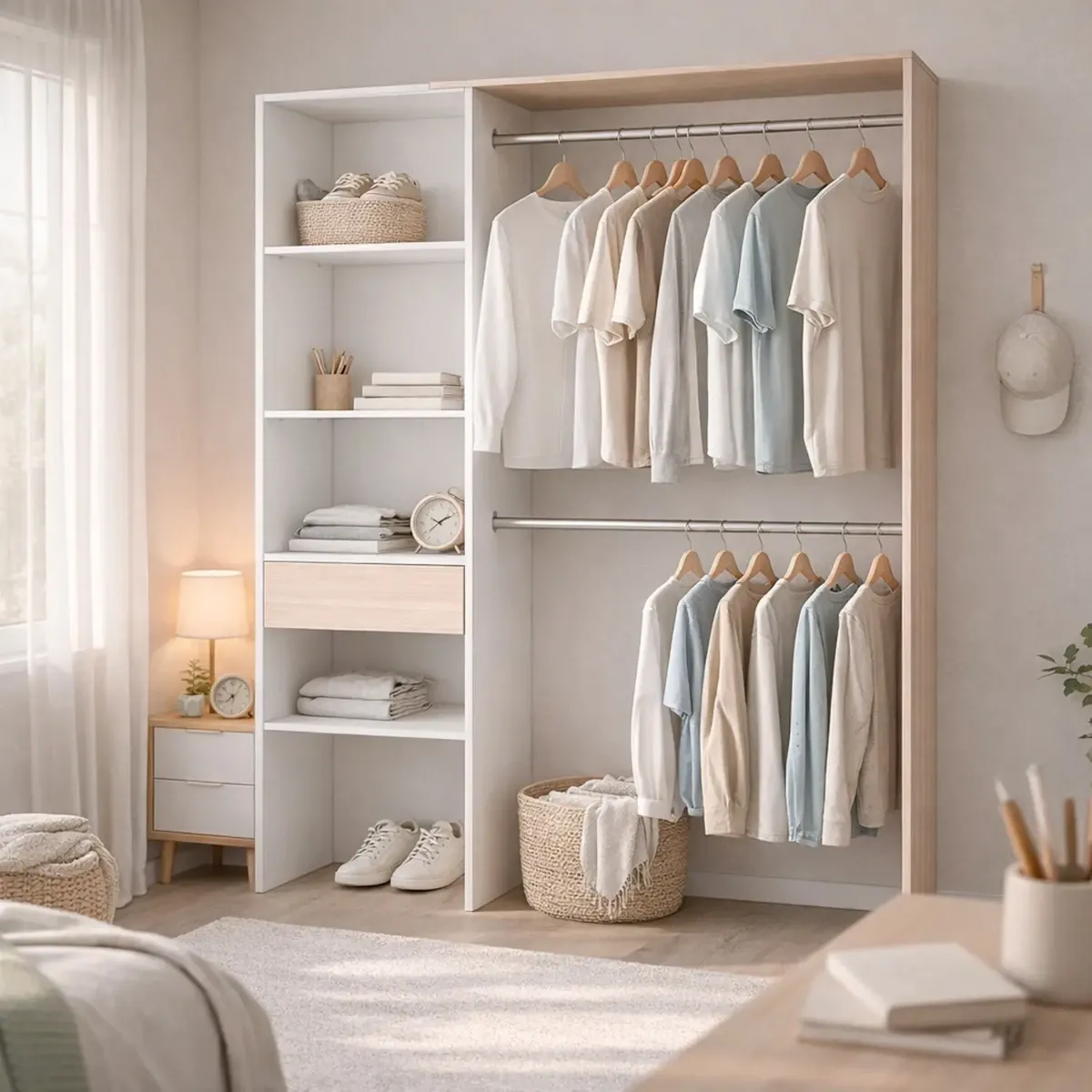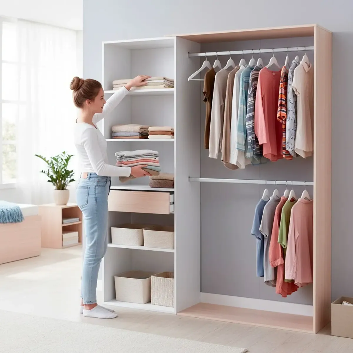 Armadio Guardaroba Con 2 Barre Appendiabiti 4 Ripiani E Cassetto Armadietto Mobile Salvaspazio Reversibile per Camera Cameretta Cabina Armadio 187 x 40 x 158 Cm