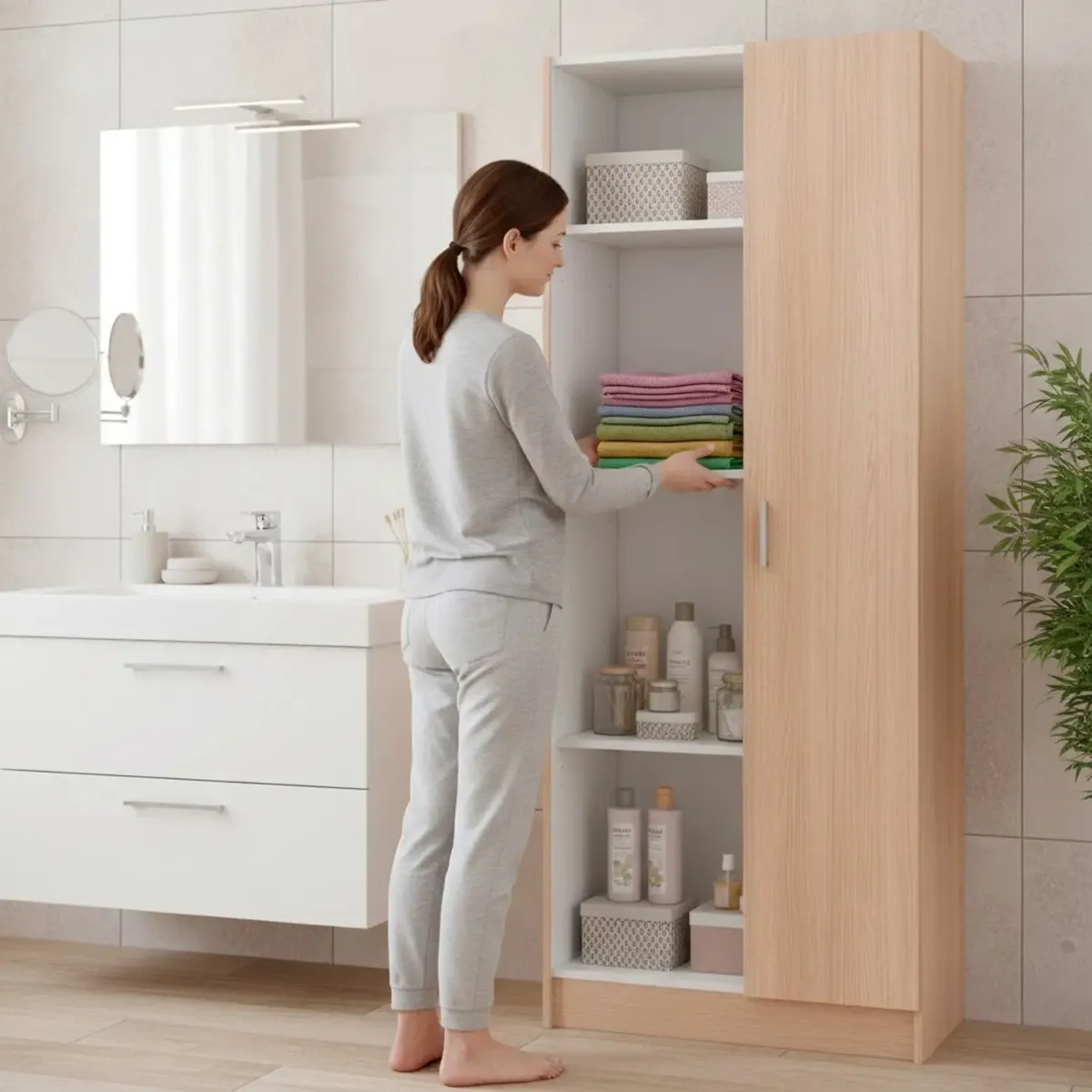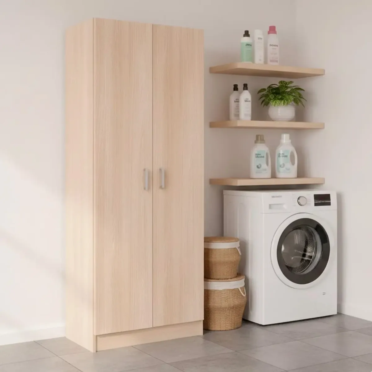Armadio Multiuso A 2 Ante E 8 Ripiani Regolabili Mobile Armadietto Salvaspazio Per Bagno Lavanderia Ingresso Camera Da Letto Struttura Compatta E Capiente 180 x 59 x 37 Cm