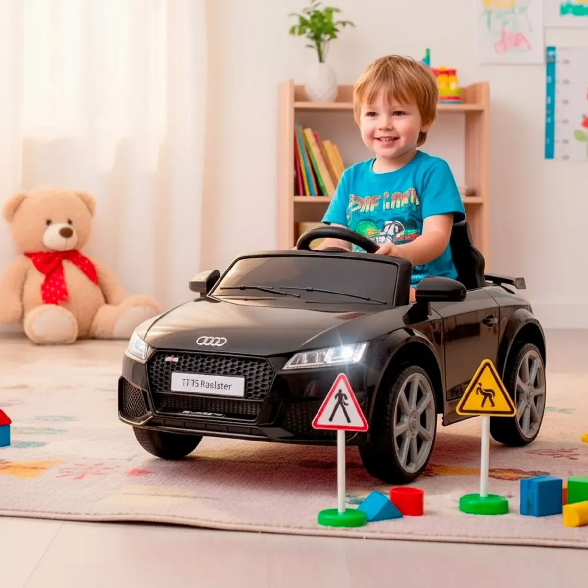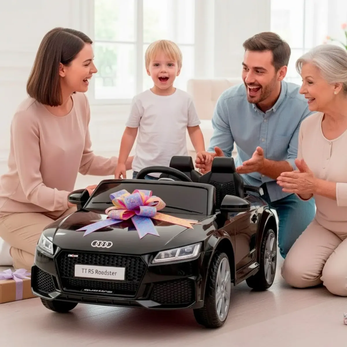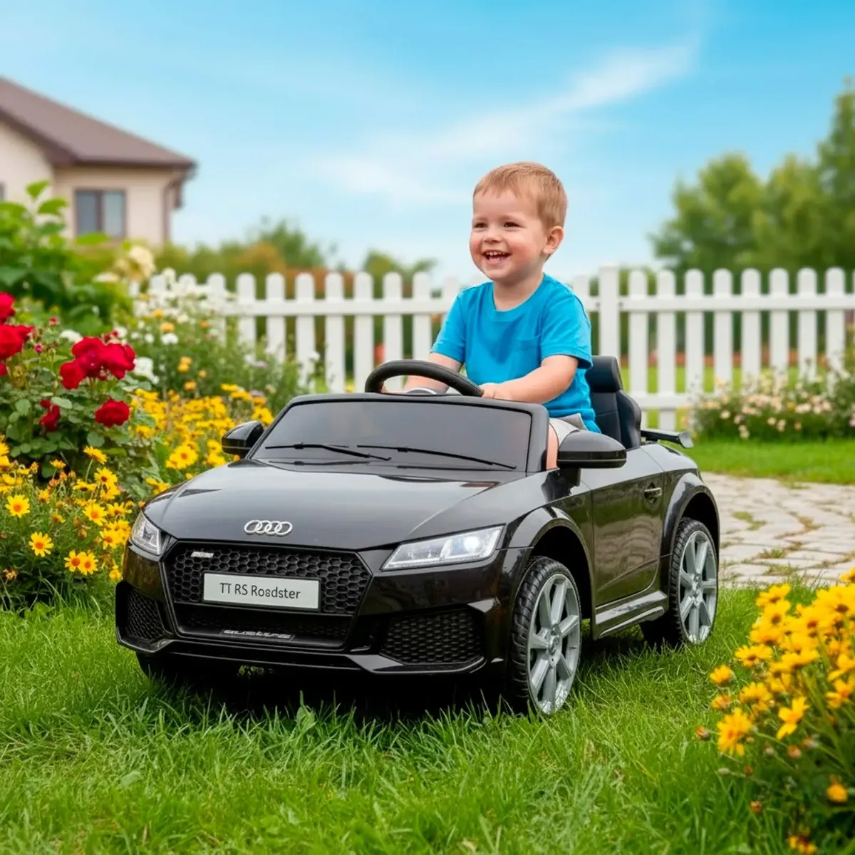 Auto Elettrica Bambini Audi TT RS 12V con Licenza Ufficiale Telecomando 2.4GHz Doppio Motore 30W Luci LED USB/MP3/AUX Soft Start Porte Apribili Cintura Sicurezza