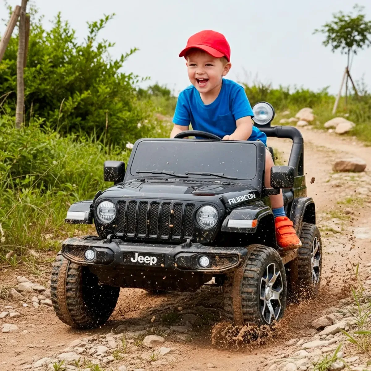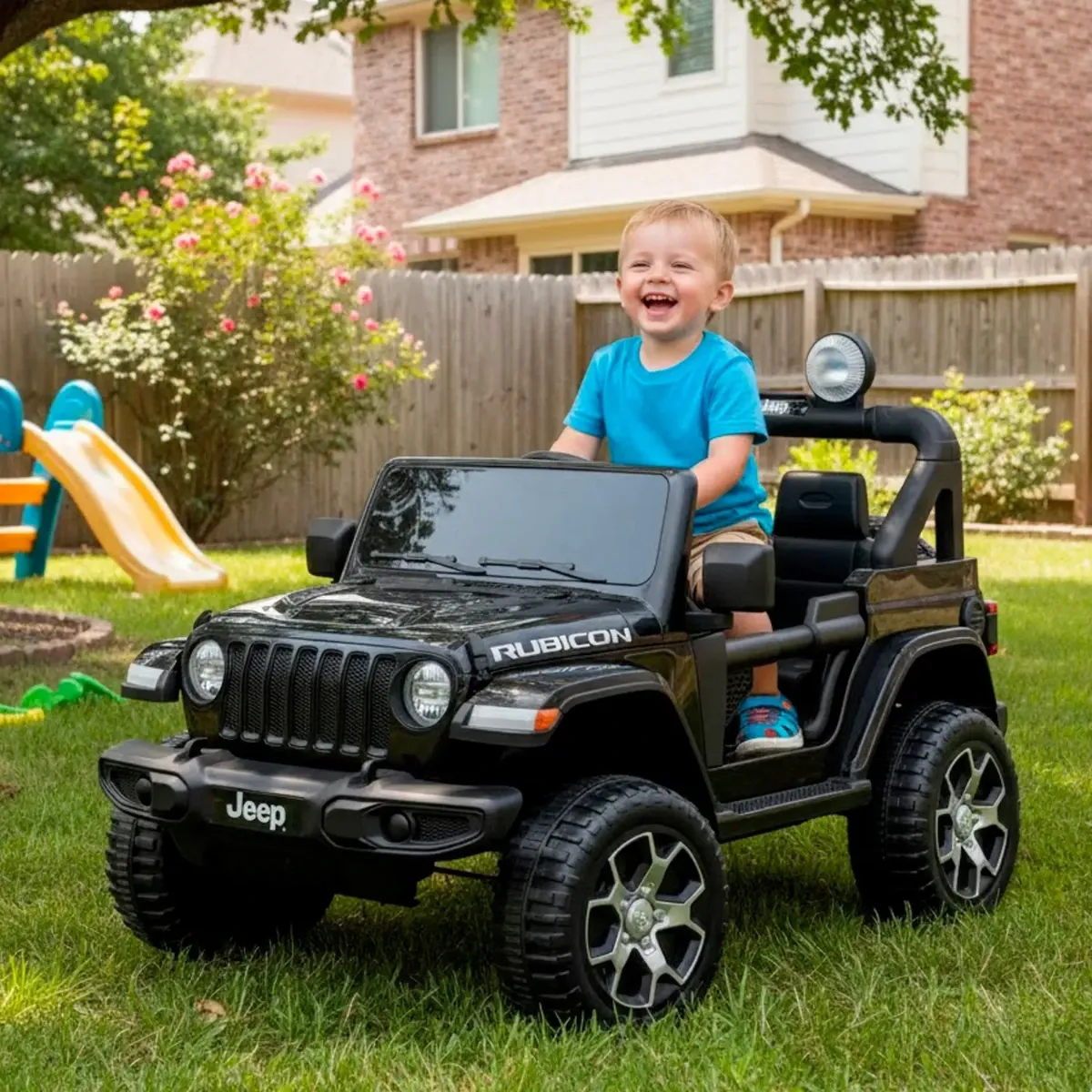 Auto Elettrica Bambini Jeep Wrangler Rubicon 12V 2 Posti con Licenza Ufficiale Ruote in Gomma EVA Sedile in Pelle Telecomando 2.4GHz Luci LED Bluetooth MP3 USB Porte Apribili Full Optional