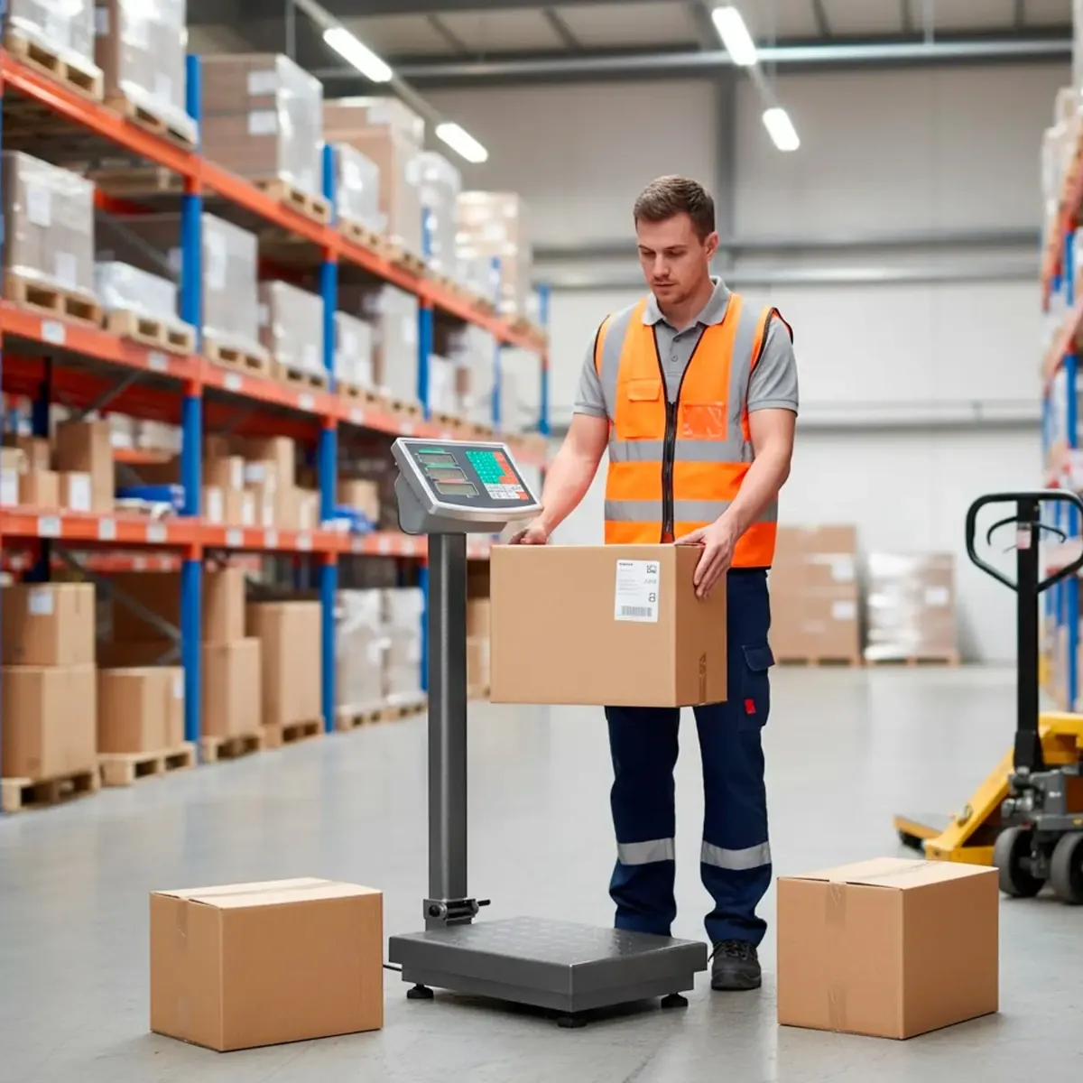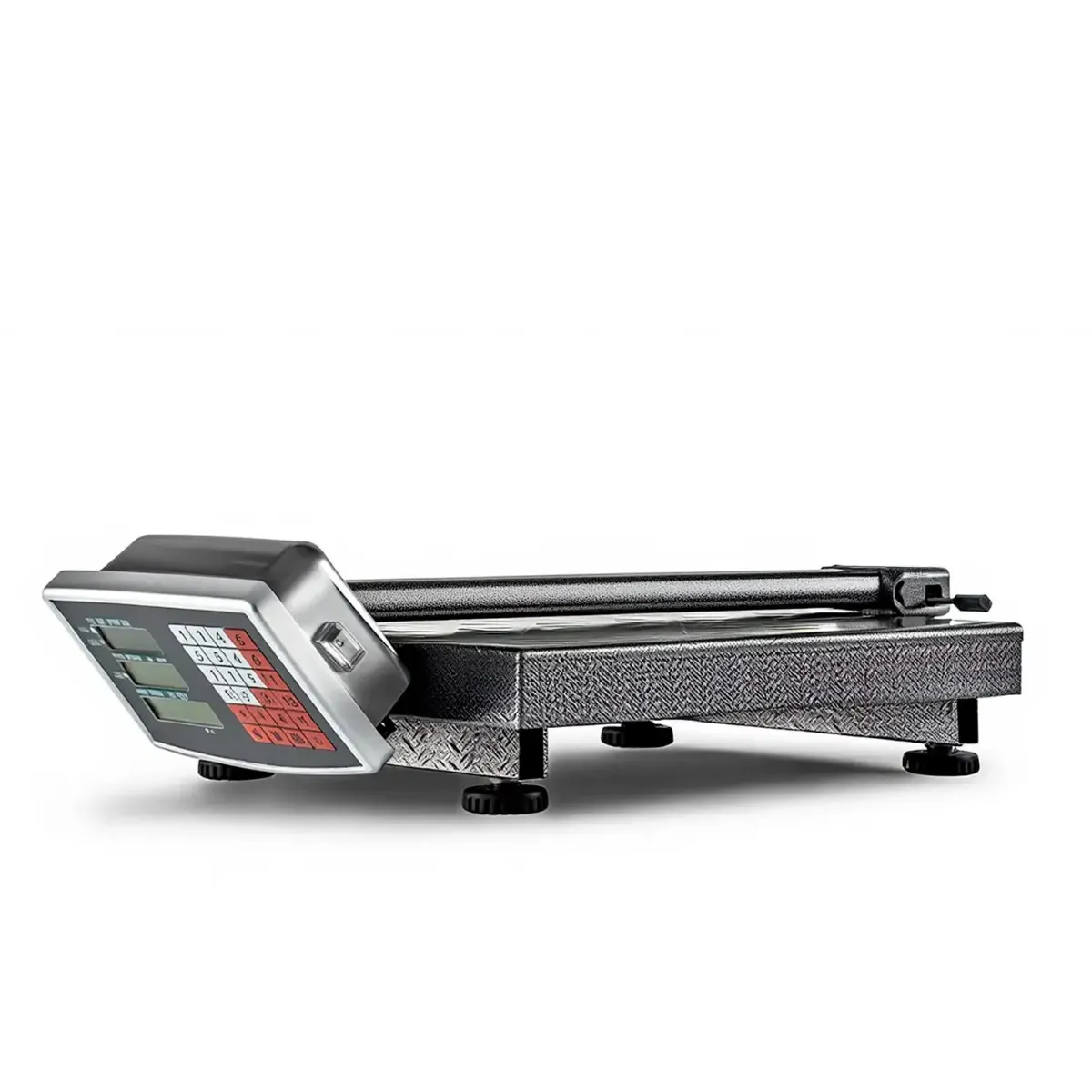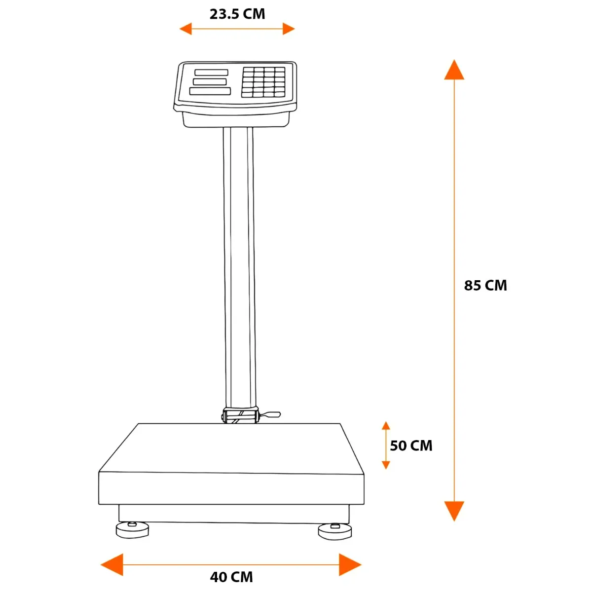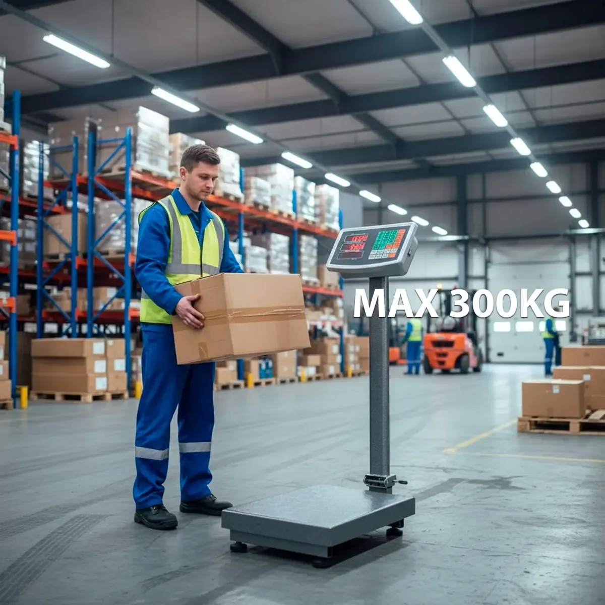 Bilancia Digitale Industriale 300 kg Con Piattaforma 40 X 50 Cm Display LCD Retroilluminato ad Asta Pieghevole In Acciaio Inox Batteria Ricaricabile 20h e Spegnimento Automatico Argento