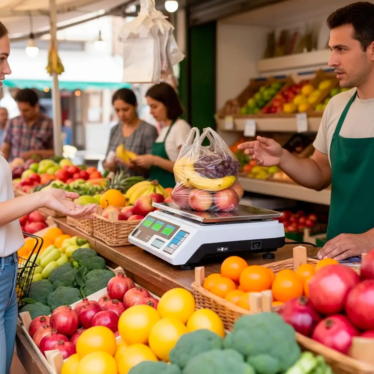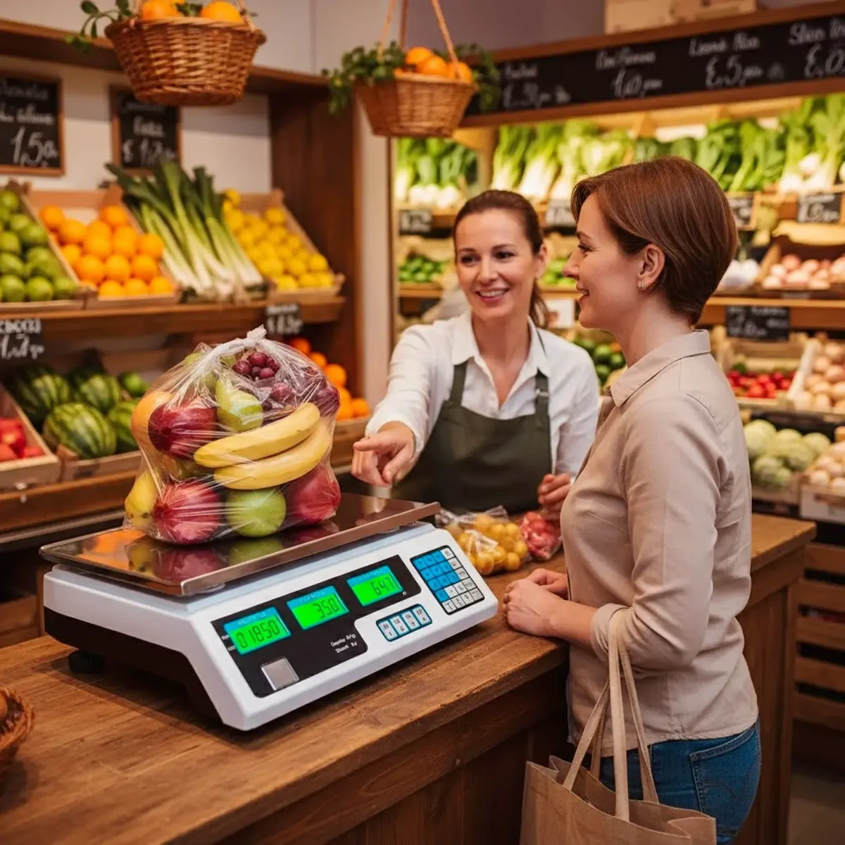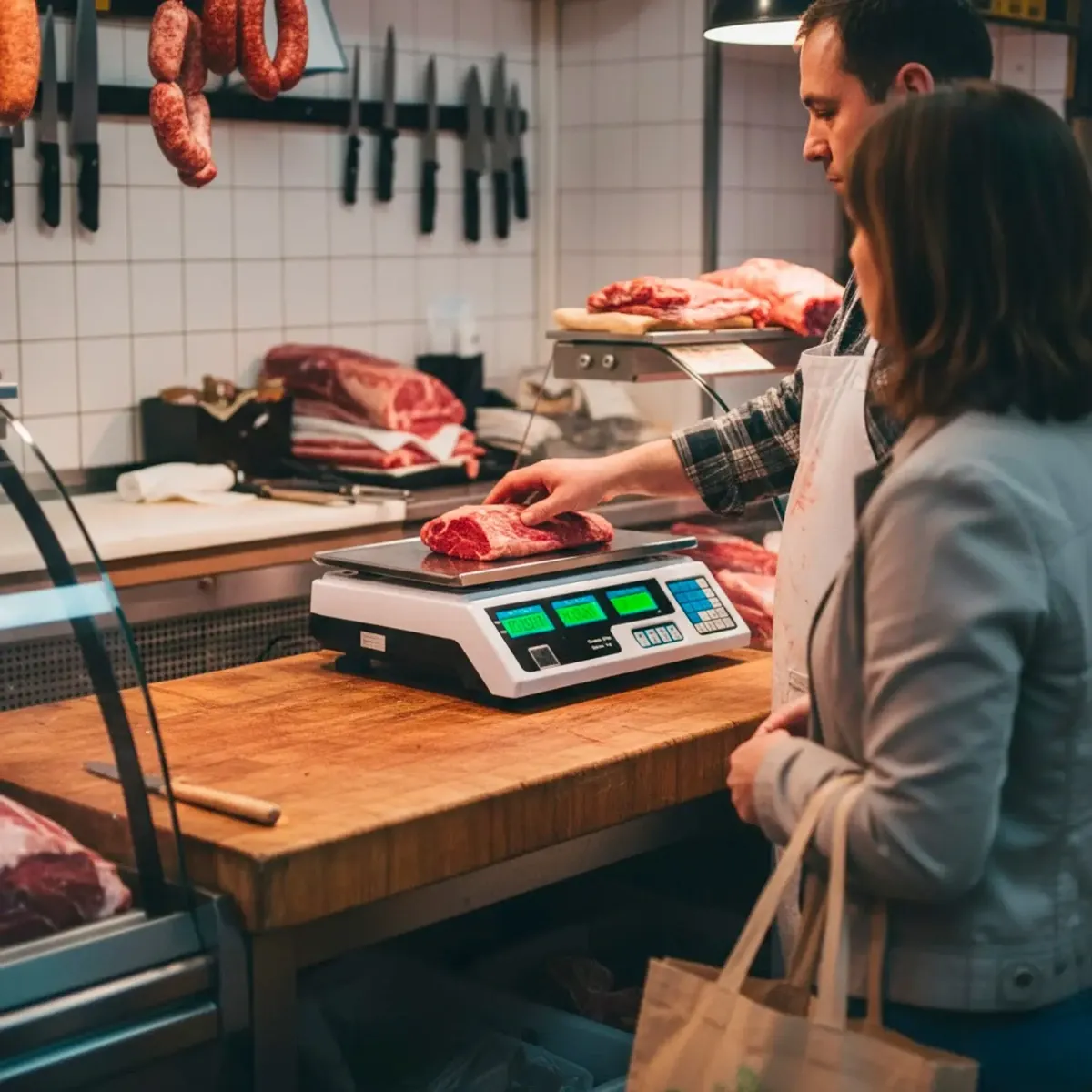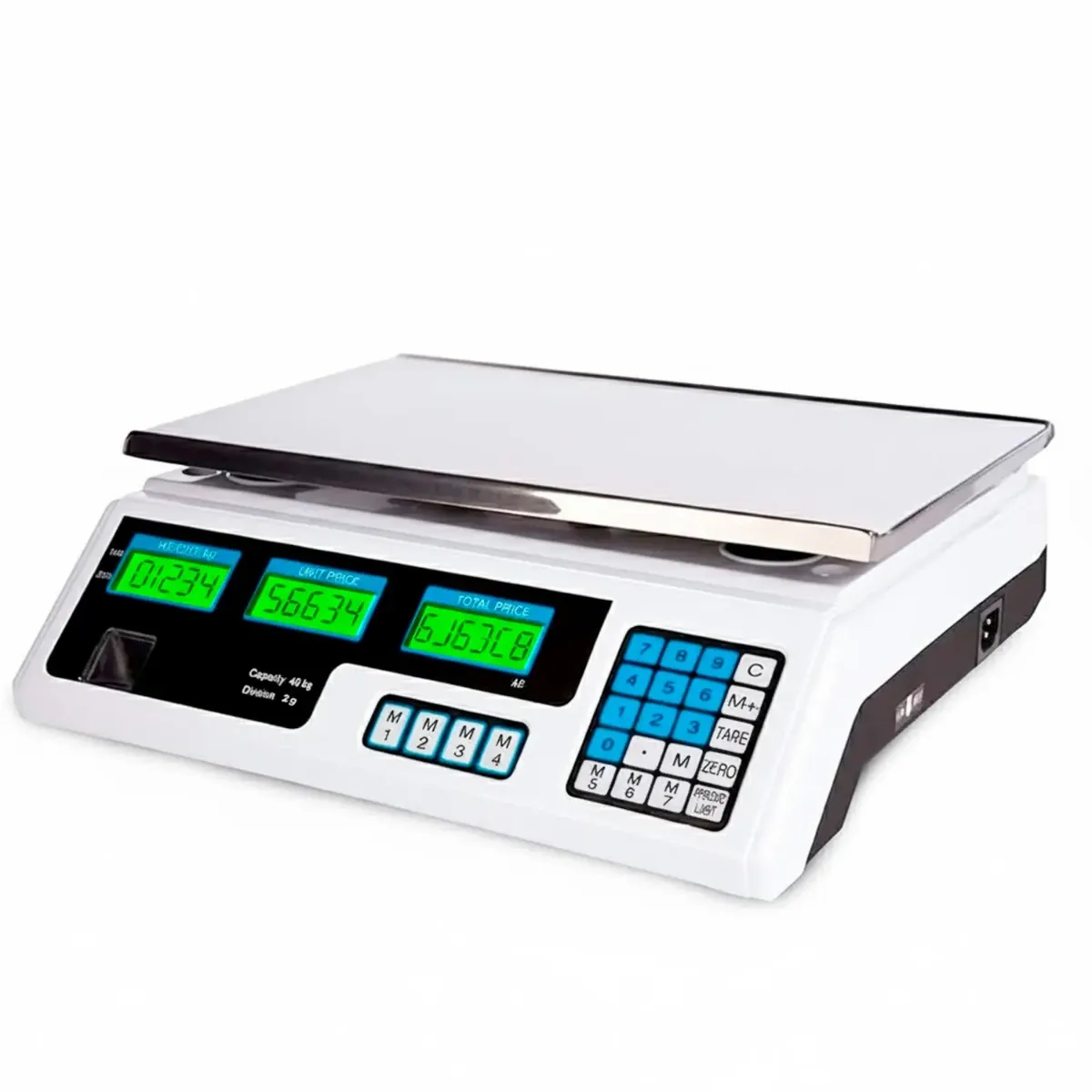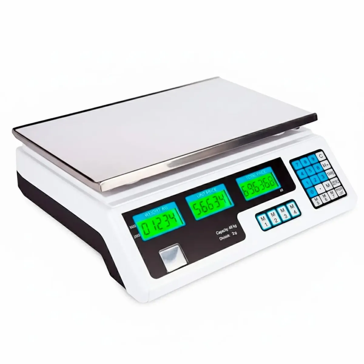 Bilancia Elettronica Digitale Professionale Fino A 40 kg Con Piatto in Acciaio Inox Precisione 2 g Triplo Display Tara / Zero, Memorie Prezzo Elettrica o Batteria 34 x 33 x 11.3 cm Nero