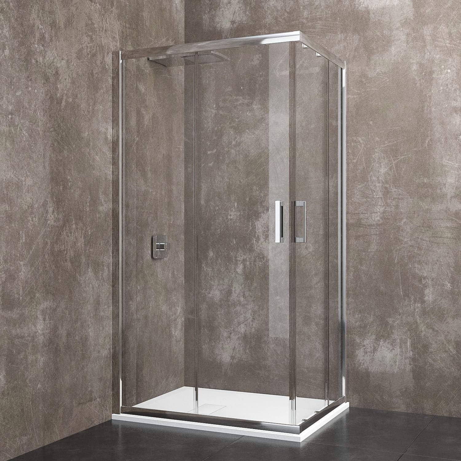 Box Doccia Rettangolare Cabina Bagno Con Porte Scorrevoli Ante In Cristallo Temperato Trasparente Struttura Alluminio Anodizzato Maniglie in Acciaio Cromato
