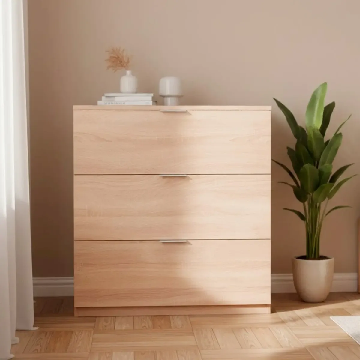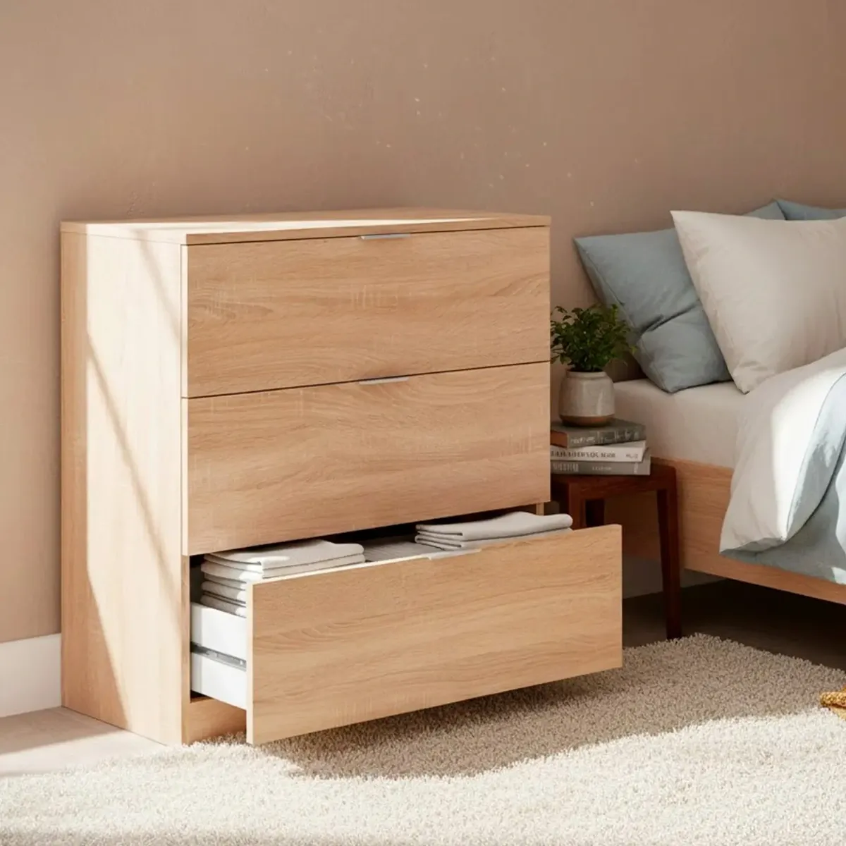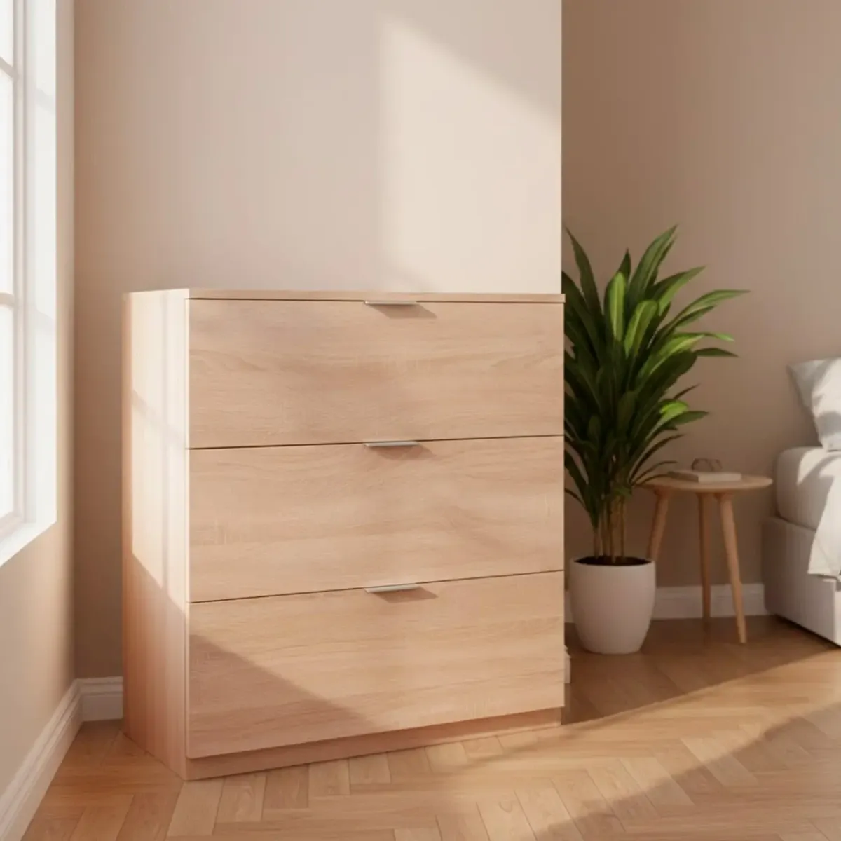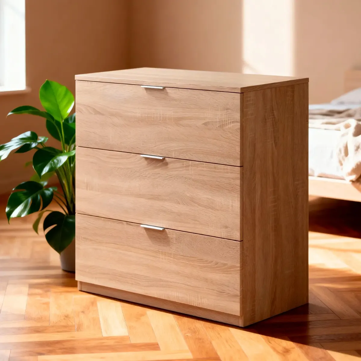 Cassettiera 3 Cassetti Comodino Senza Piedi Comò Mobile Camera da Letto Salvaspazio Finitura Antigraffio Design Minimal Moderno Arredo Casa Studio Lavanderia Corridoio 77 x 38 x 80 Cm