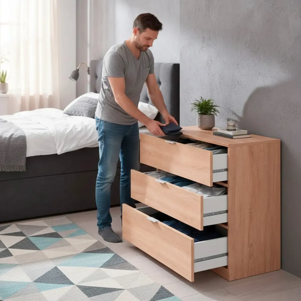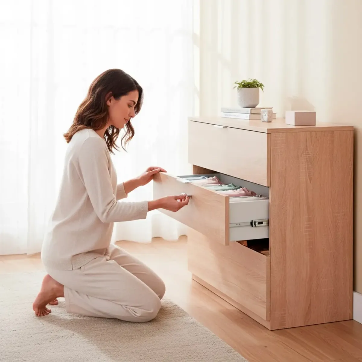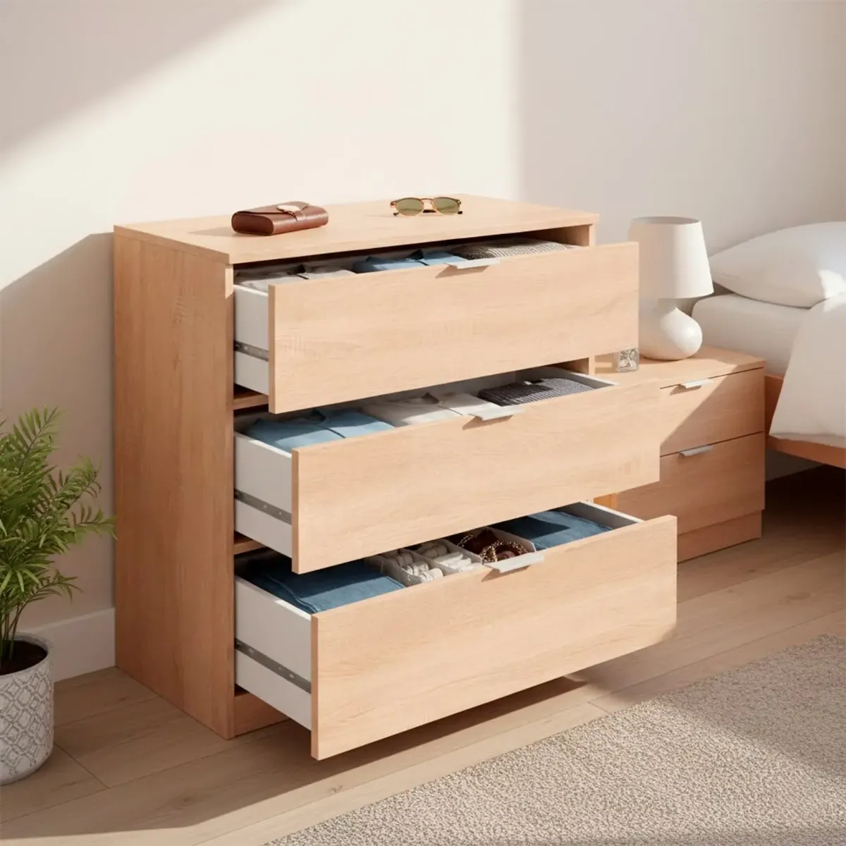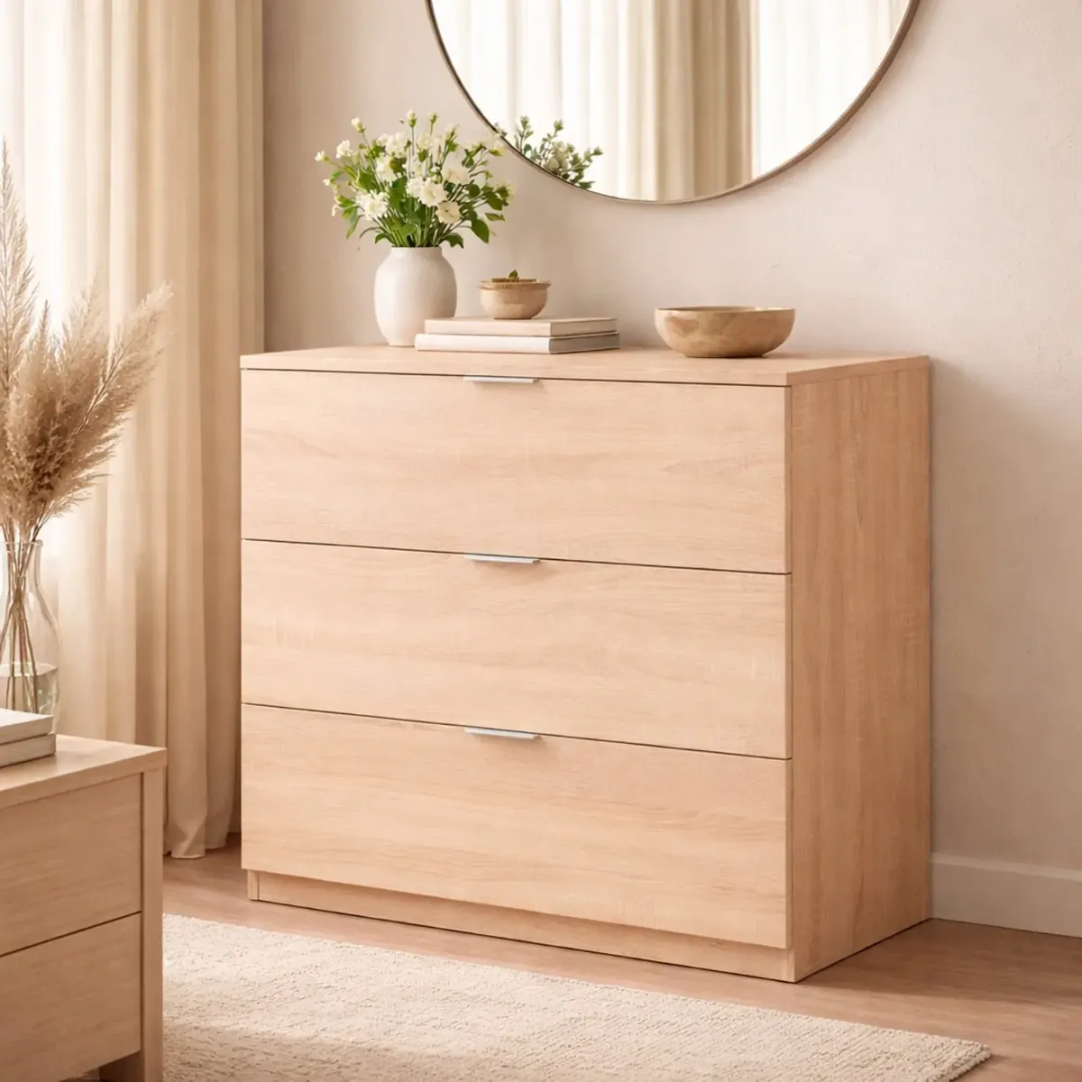 Cassettiera 3 Cassetti Comodino Senza Piedi Comò Mobile Camera da Letto Salvaspazio Finitura Antigraffio Design Minimal Moderno Arredo Casa Studio Lavanderia Corridoio 77 x 38 x 80 Cm