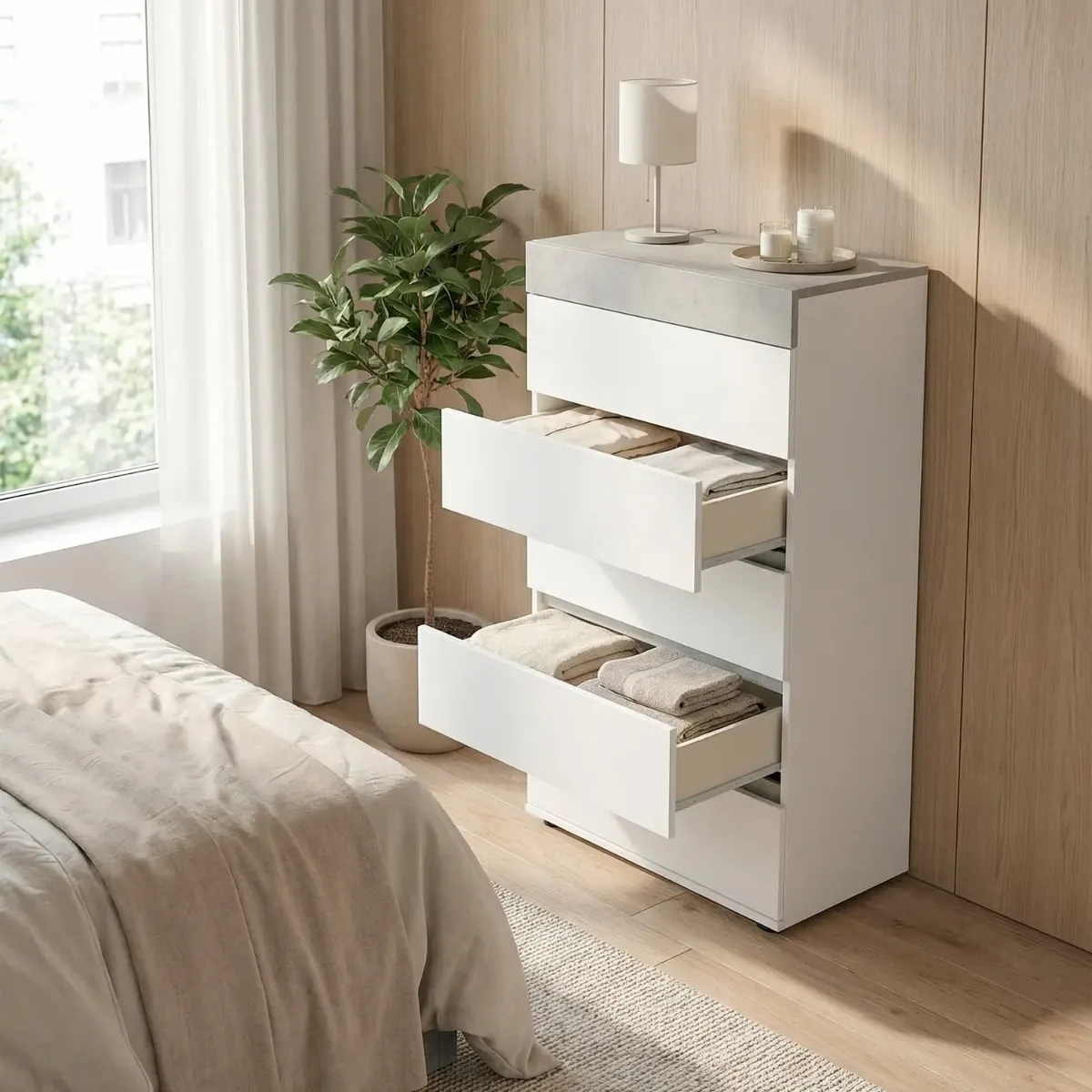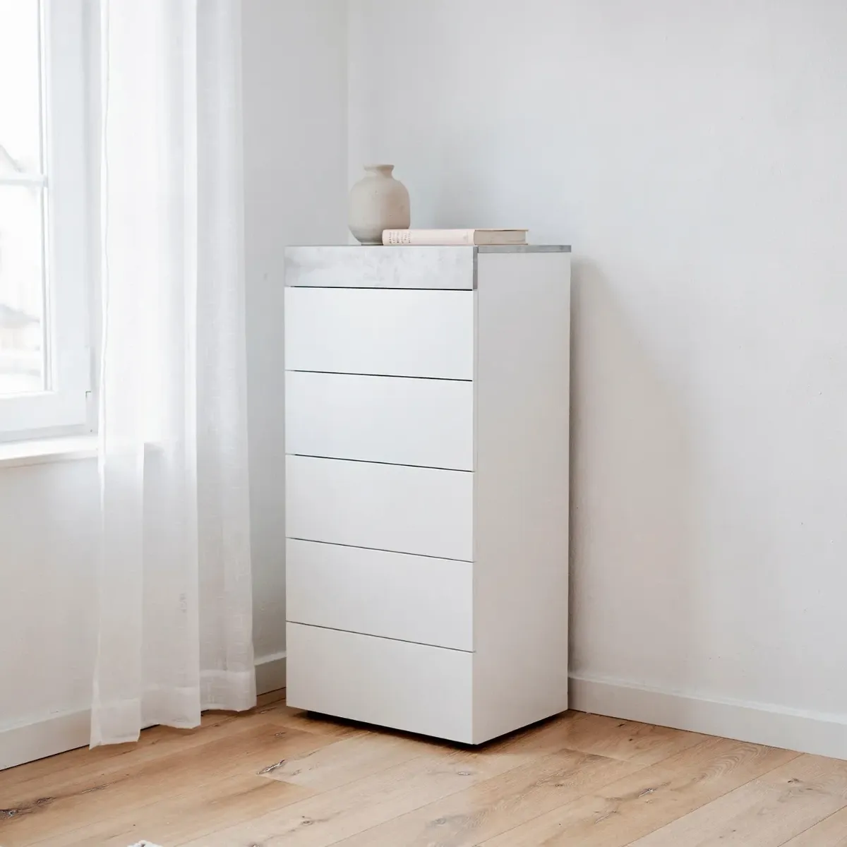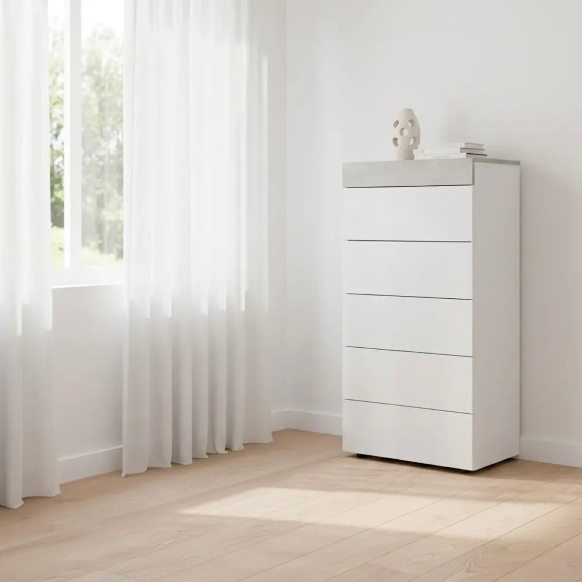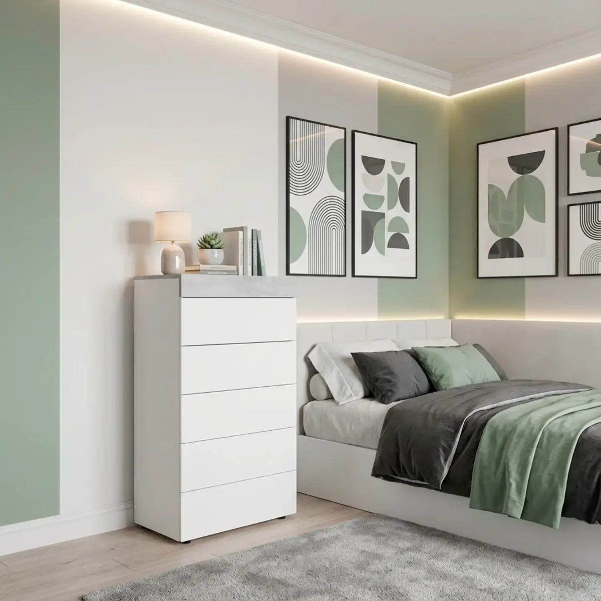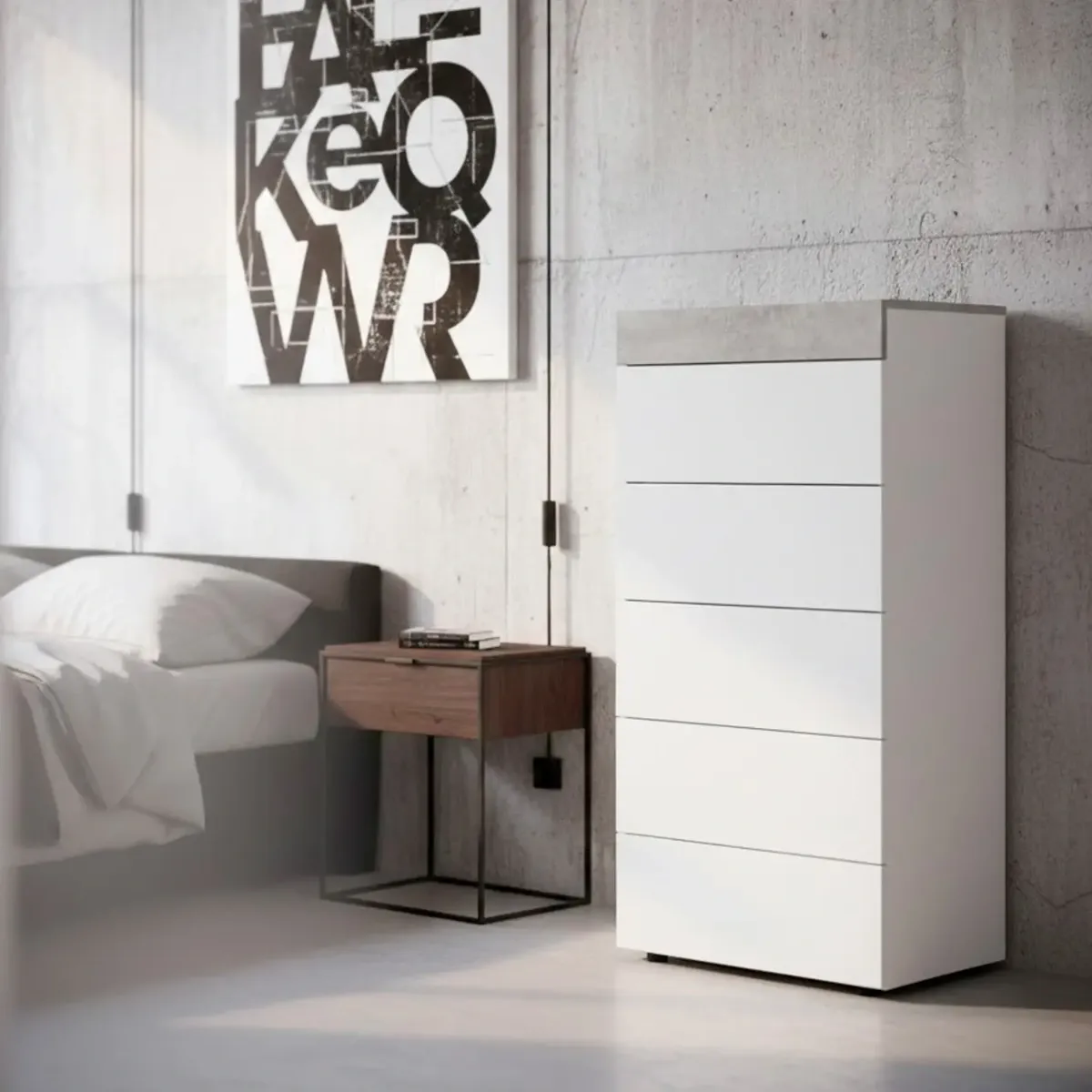 Comò Cassettiera Per Camera Da Letto Settimino Con 5 Cassetti Design Moderno Kolarovo Salvaspazio Mobile Comodino Maniglie Nascoste Interno Tessile 110 x 40 x 61 Cm