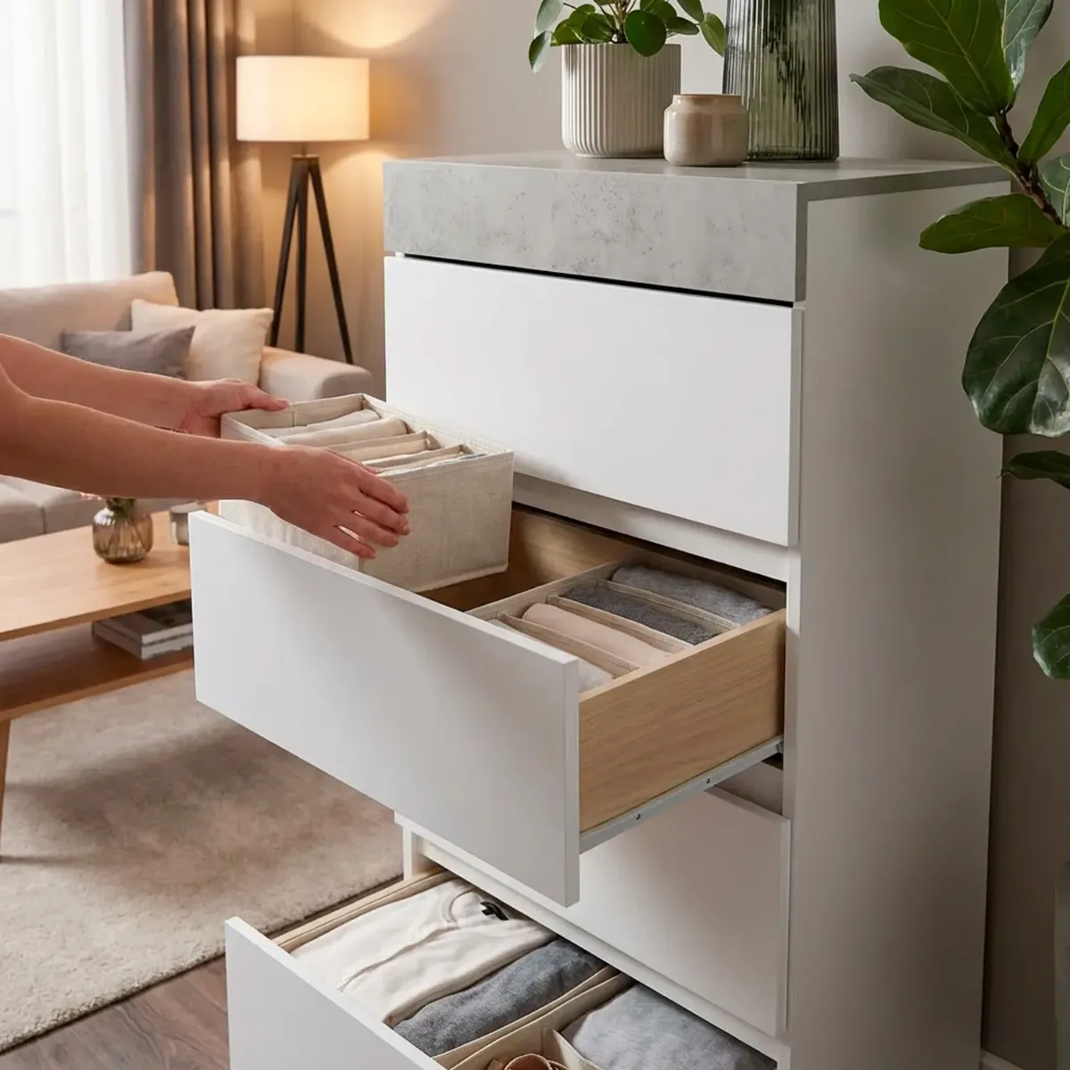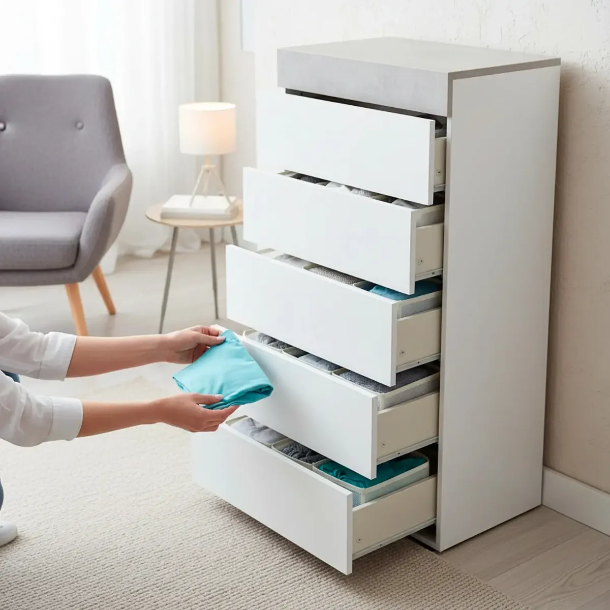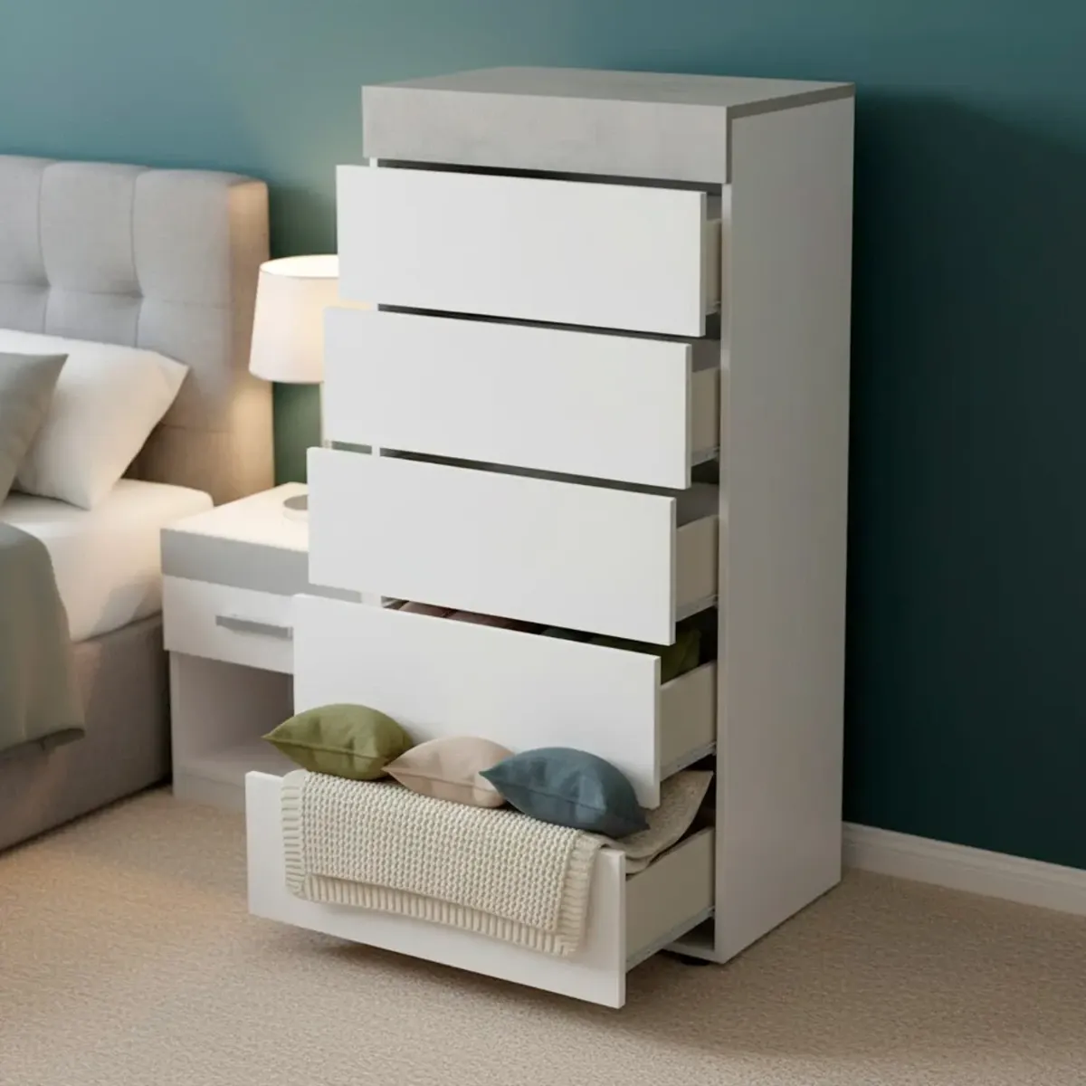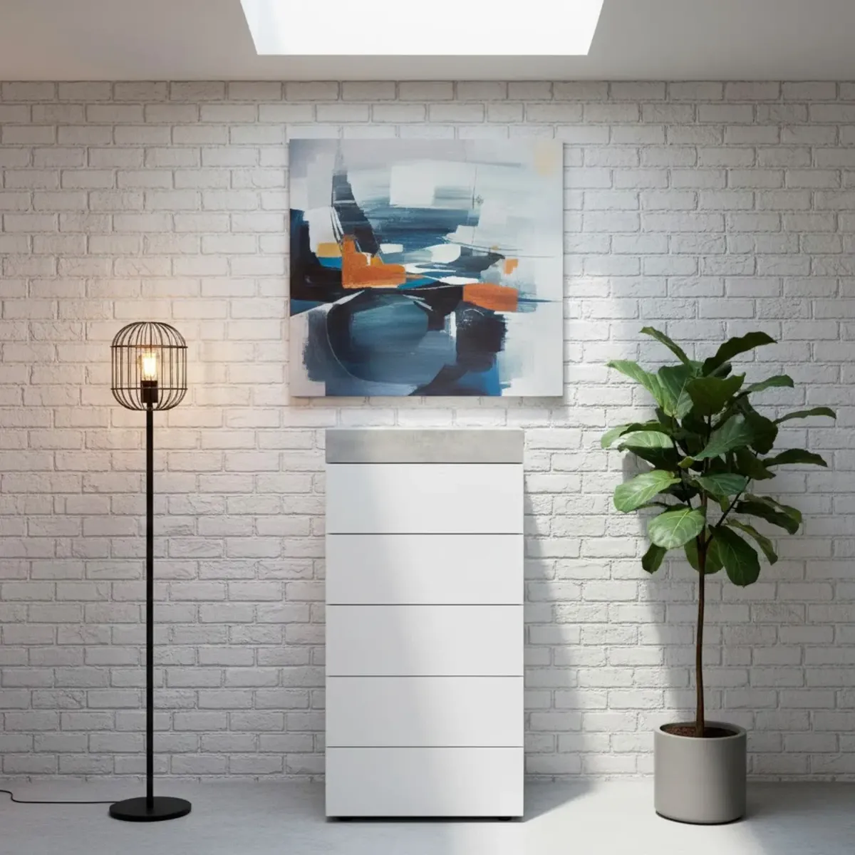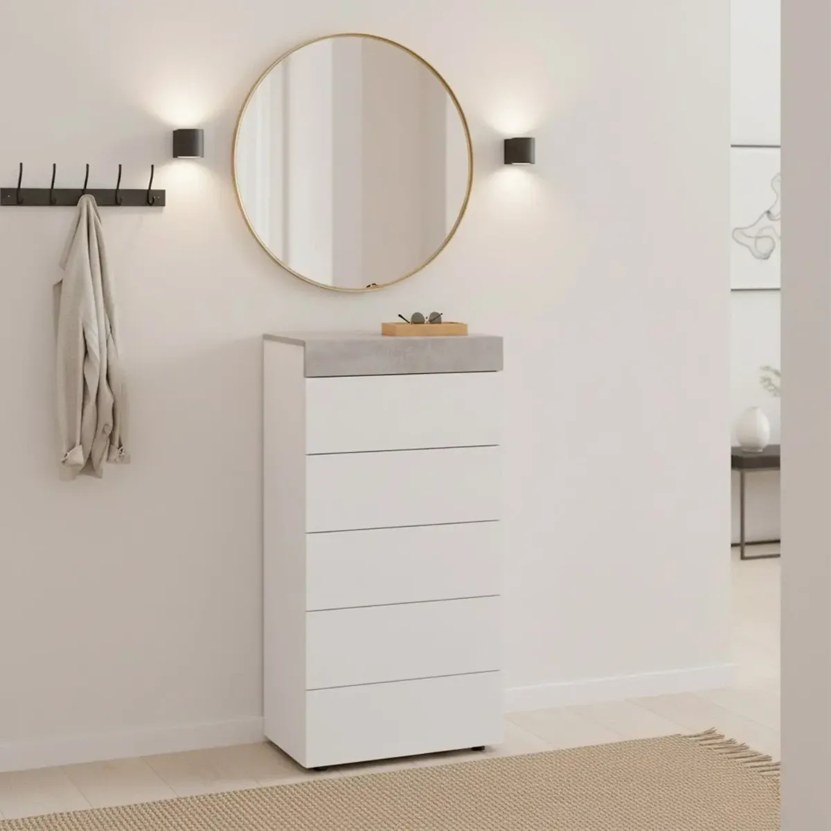Comò Cassettiera Per Camera Da Letto Settimino Con 5 Cassetti Design Moderno Kolarovo Salvaspazio Mobile Comodino Maniglie Nascoste Interno Tessile 110 x 40 x 61 Cm