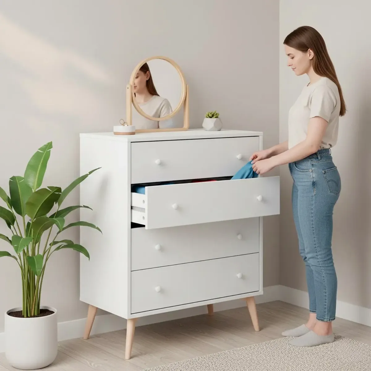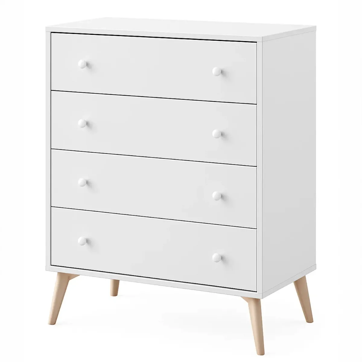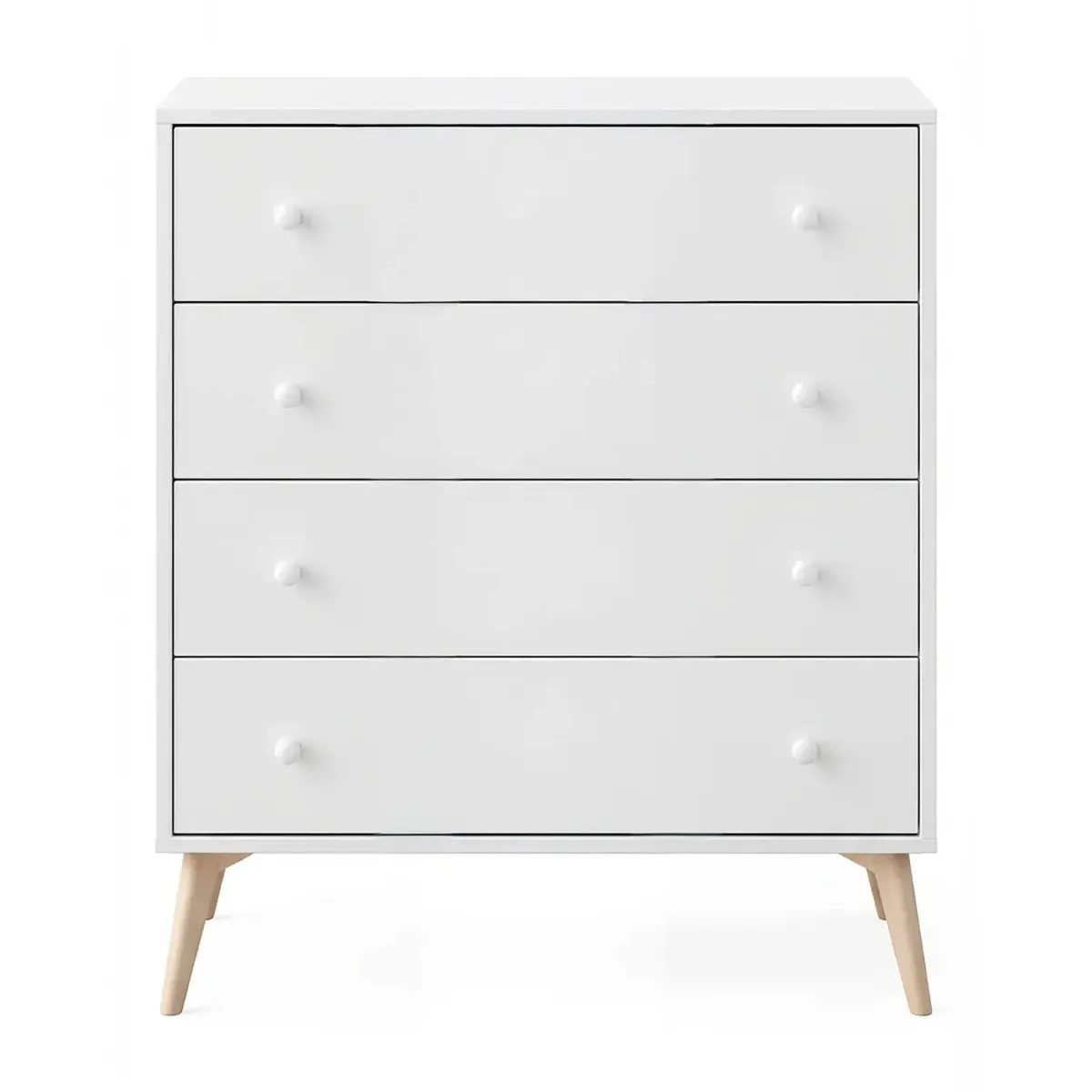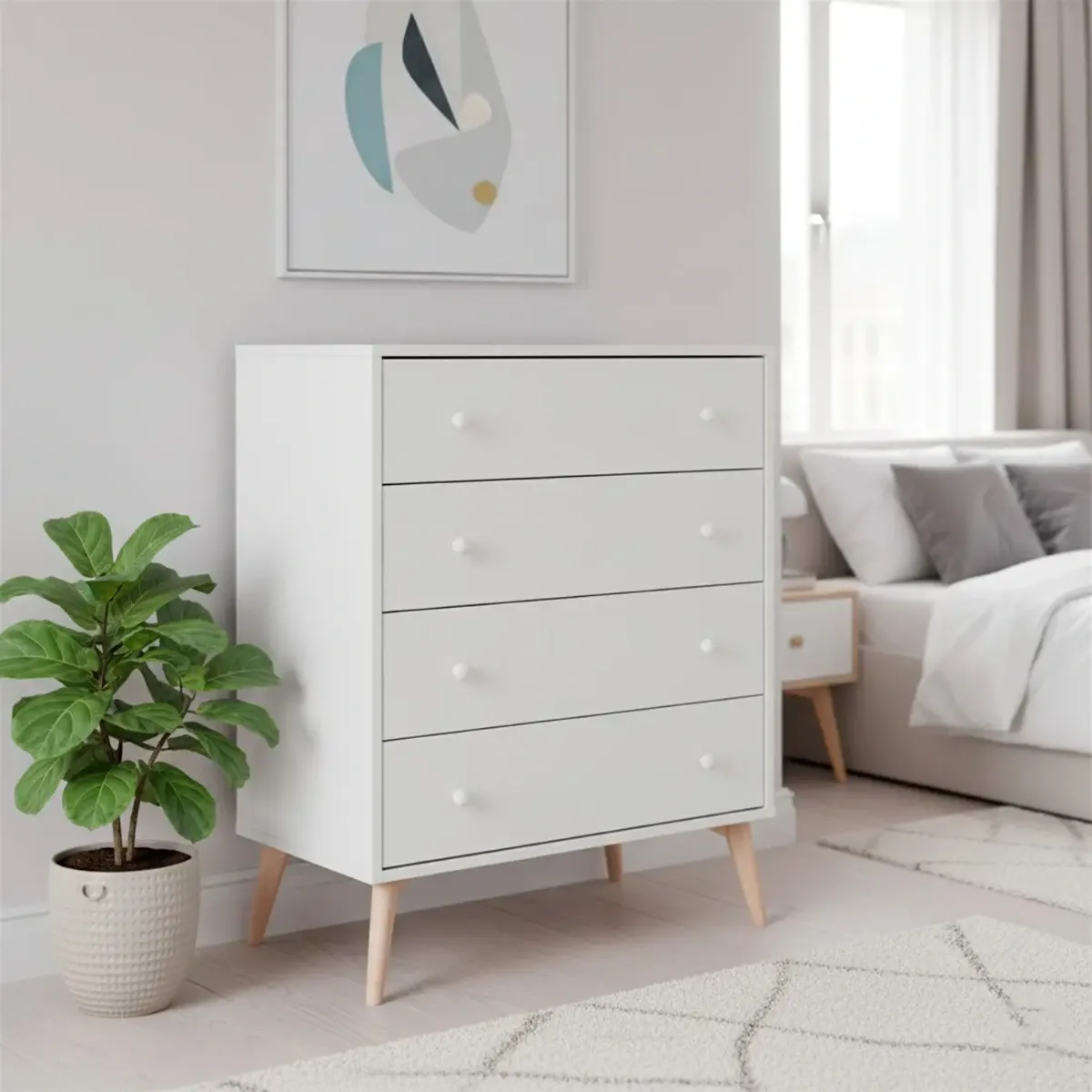 Comò A 4 Cassetti Comodino Stile Scandinavo Cassettiera Settimino Per Camera da Letto Con Gambe Nordiche Guide Metalliche Mobile Contenitore Capiente 77.5 x 40 x 95 Cm