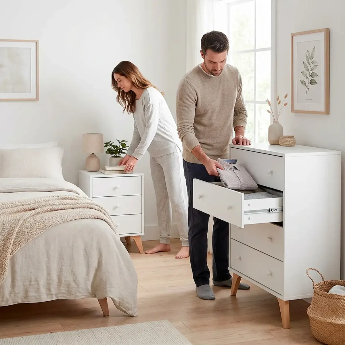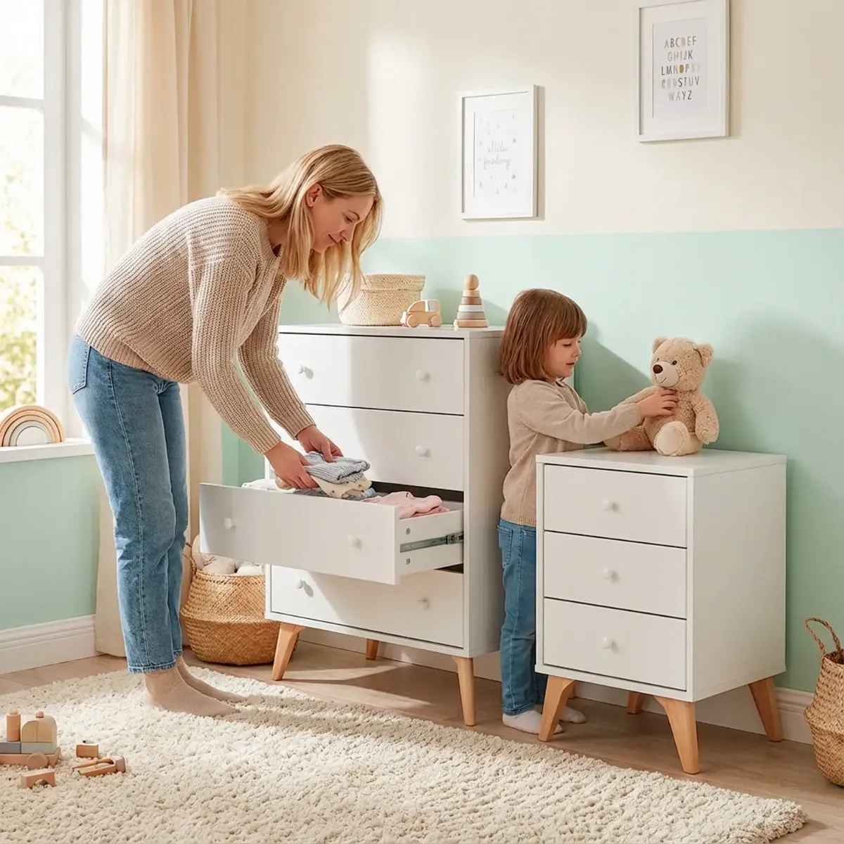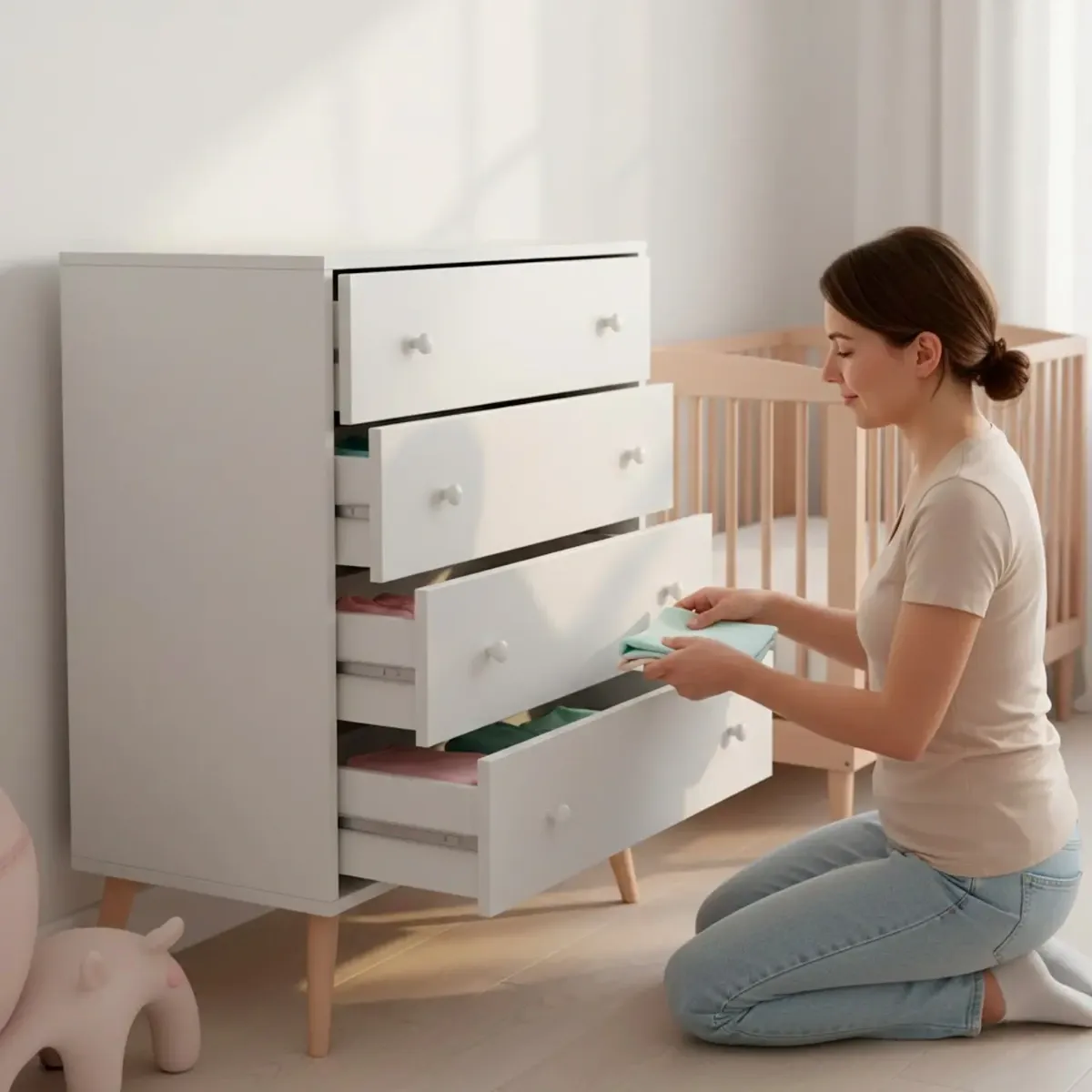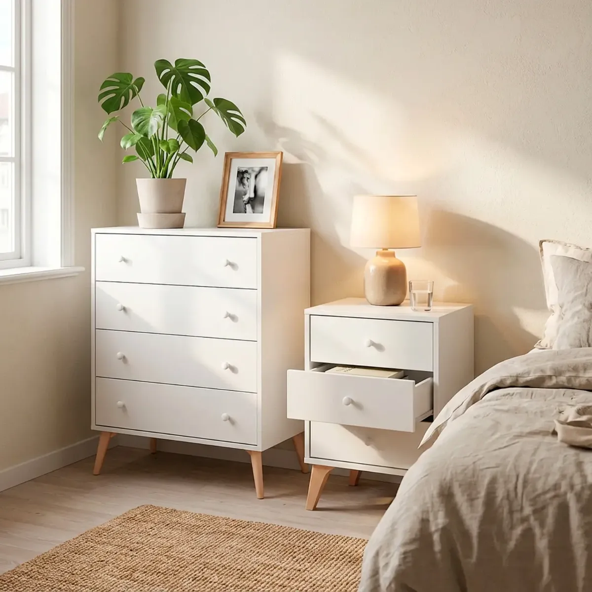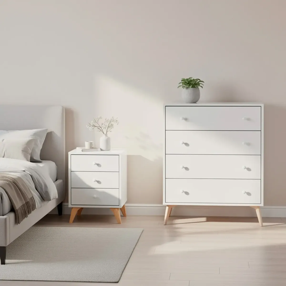 Comò A 4 Cassetti Comodino Stile Scandinavo Cassettiera Settimino Per Camera da Letto Con Gambe Nordiche Guide Metalliche Mobile Contenitore Capiente 77.5 x 40 x 95 Cm