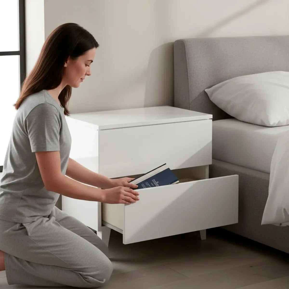 Comodino Con 2 Cassetti Cassettiera Settimino Mobile Da Camera Da Letto Moderno Mobiletto Con Piedini Struttura Compatta in Melaminico Antigraffio Montaggio Facile 50 x 34 x 39 Cm