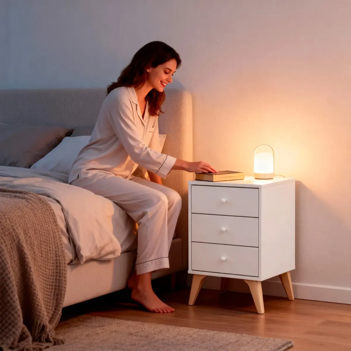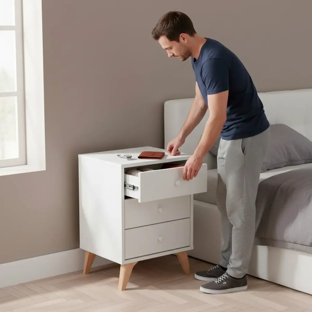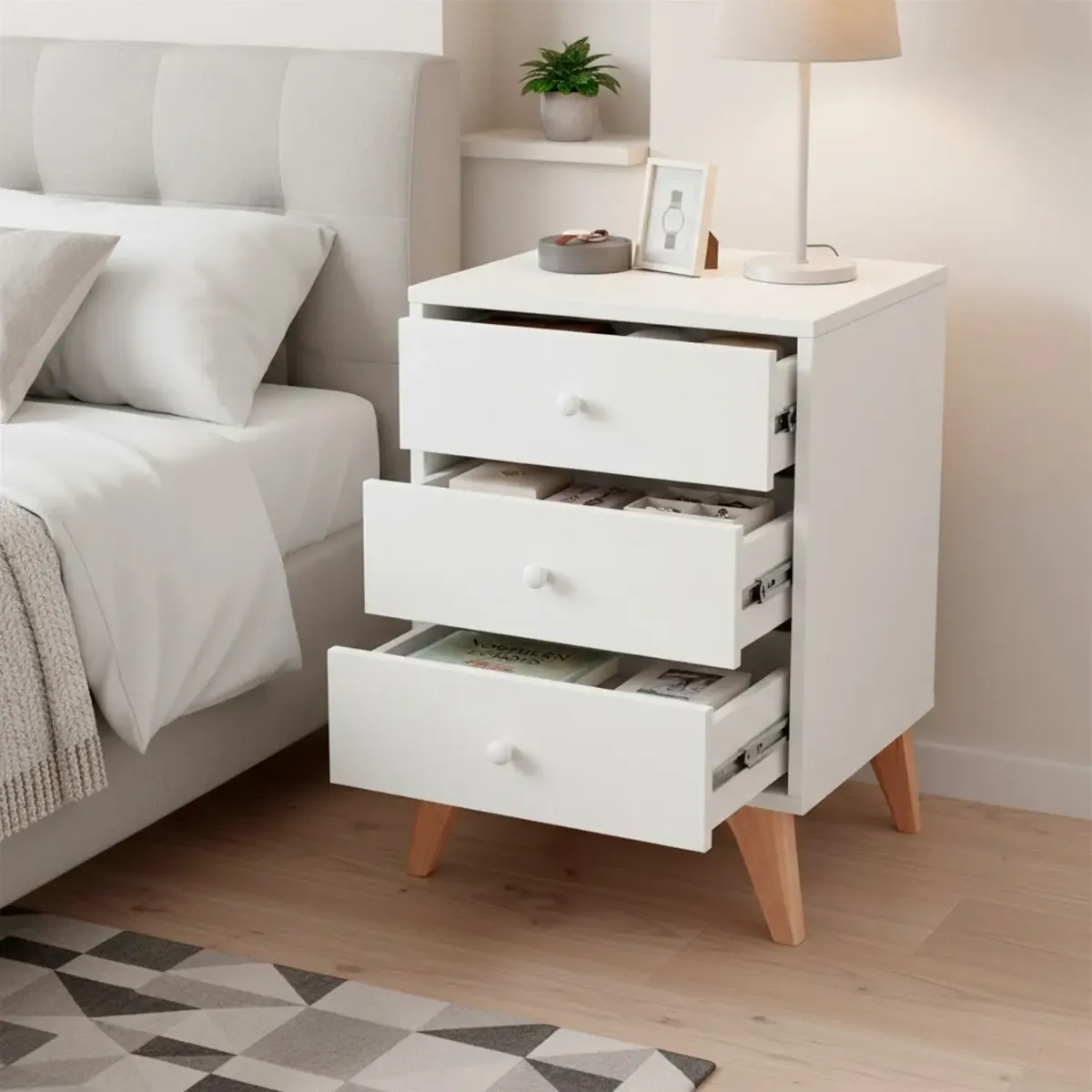 Comodino Moderno A 3 Cassetti Con Piedini Mobile Comò Per Camera Da Letto Compatto In Melaminico Antigraffio Design Salvaspazio Moderno 40 x 34 x 56 Cm