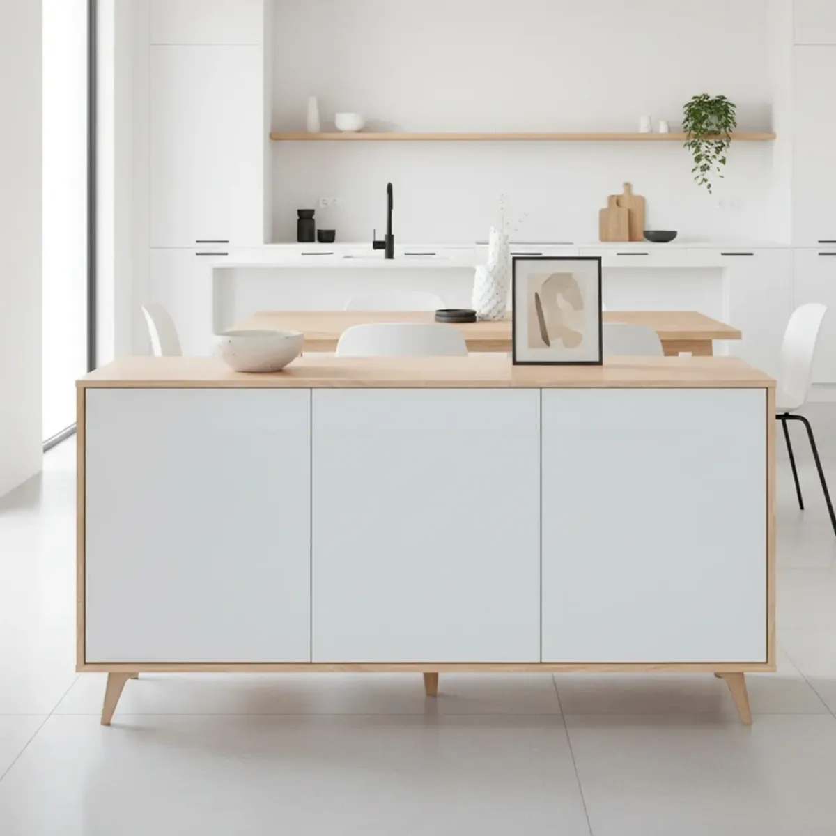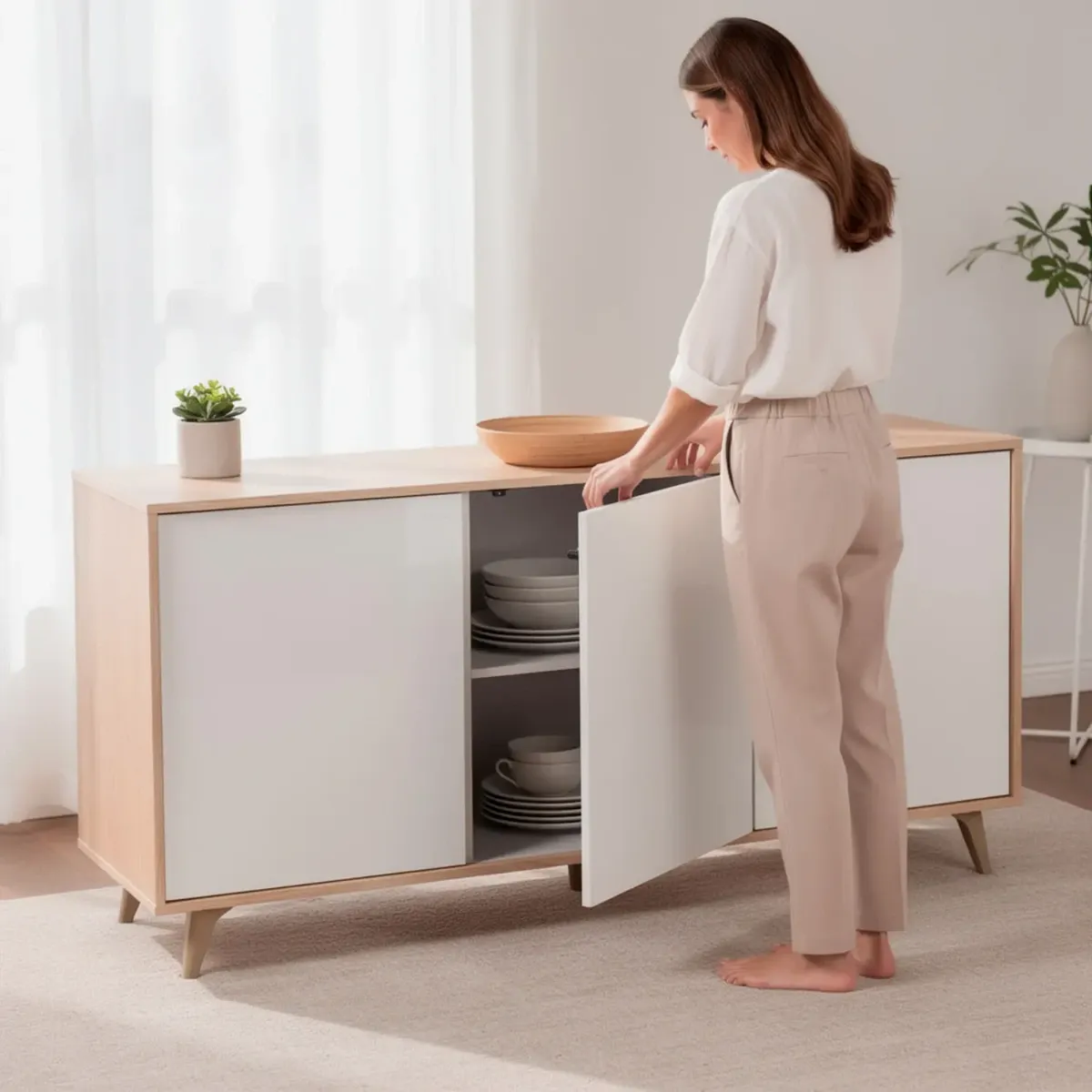 Credenza 3 Ante Con Apertura Push Madia Mobile Contenitore Moderno Con 6 Ripiani Interni Per Soggiorno Sala Da Pranzo Ingresso E Camera Da Letto Stile Nordico 154 x 40 x 75 Cm