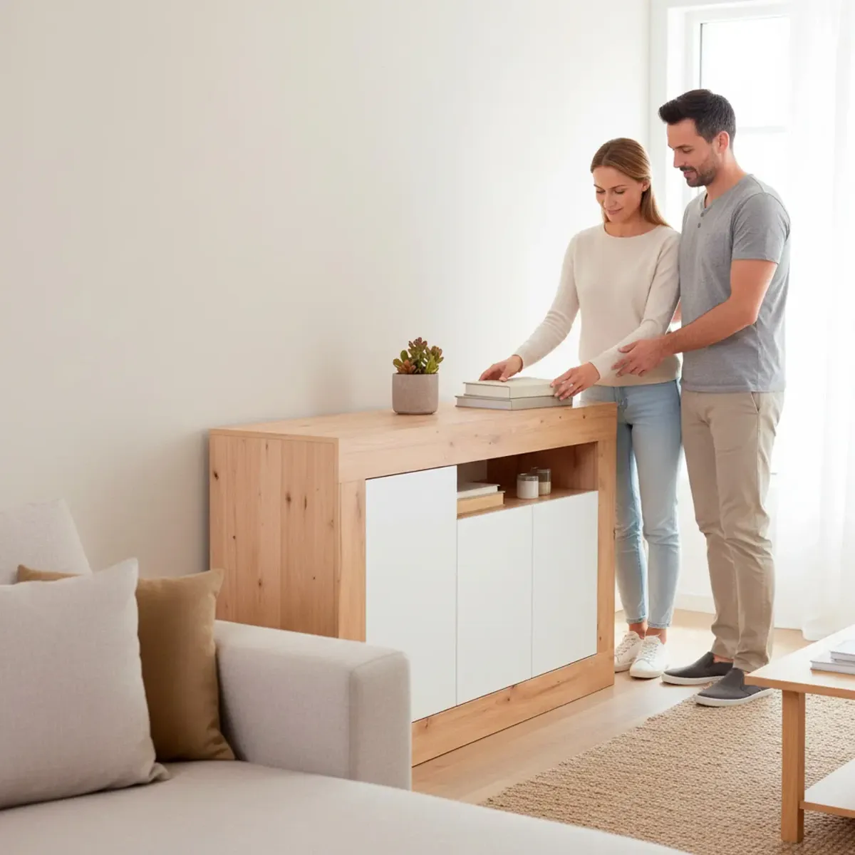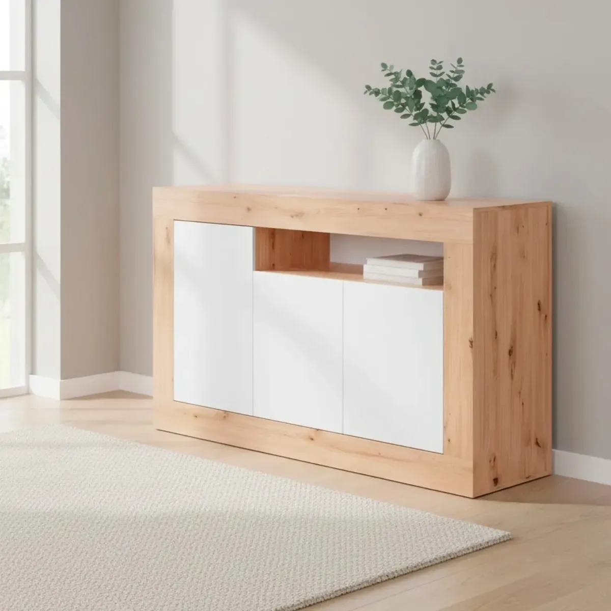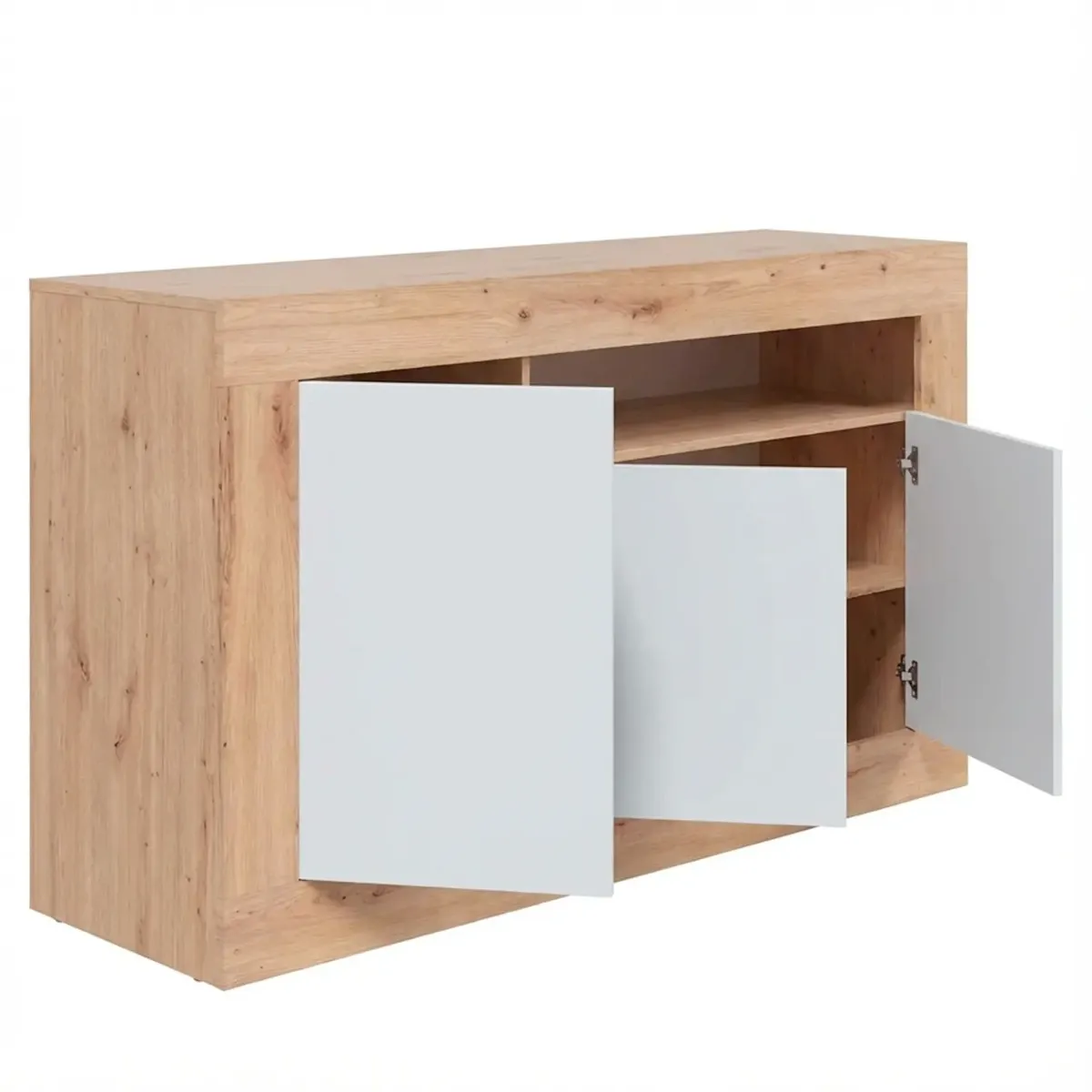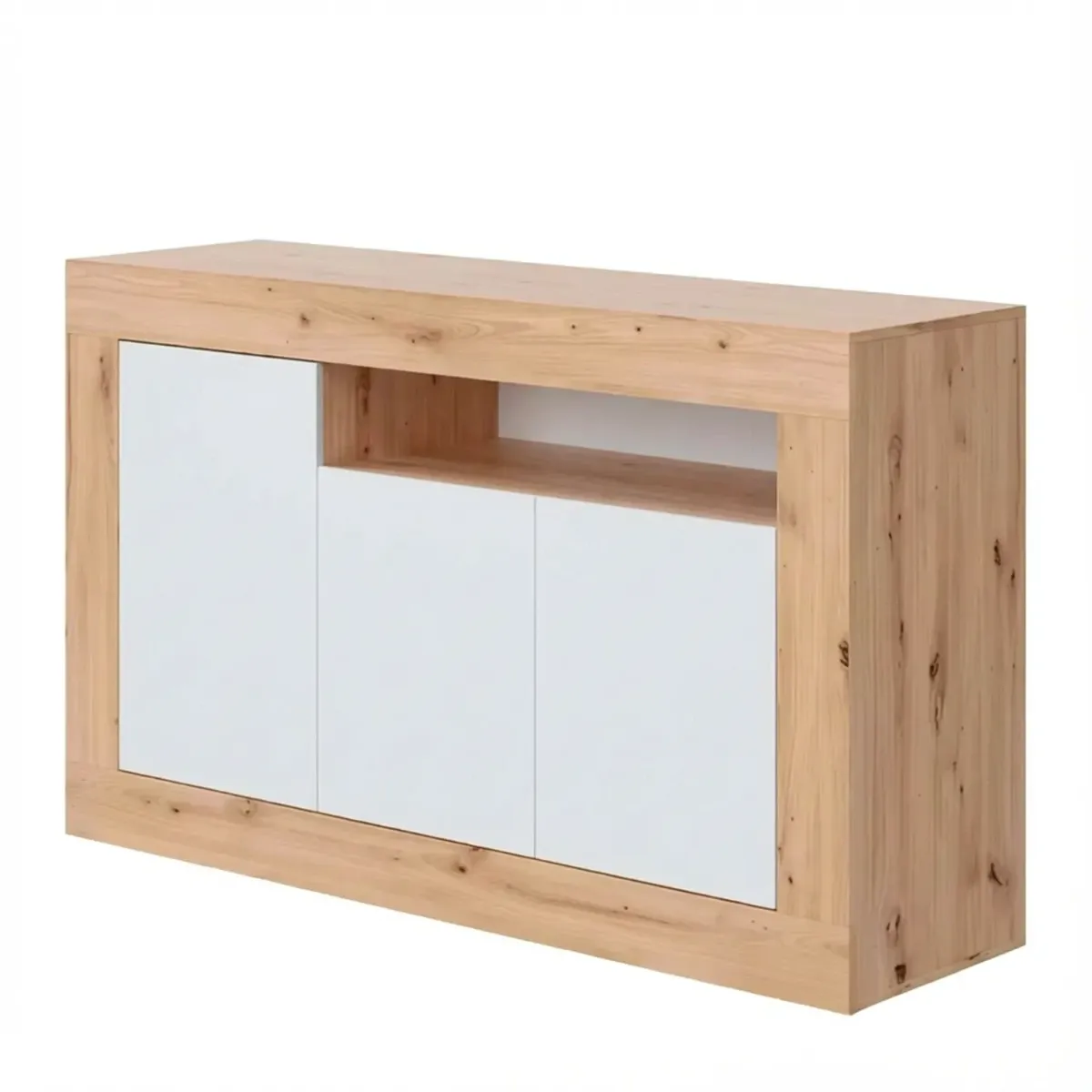 Credenza Moderna Madia A Terra Con 3 Ante Vano A Giorno E Ripiani Interni Mobile Contenitore In Melaminico Antigraffio Per Soggiorno Sala Da Pranzo 144 x 42 x 87 Cm