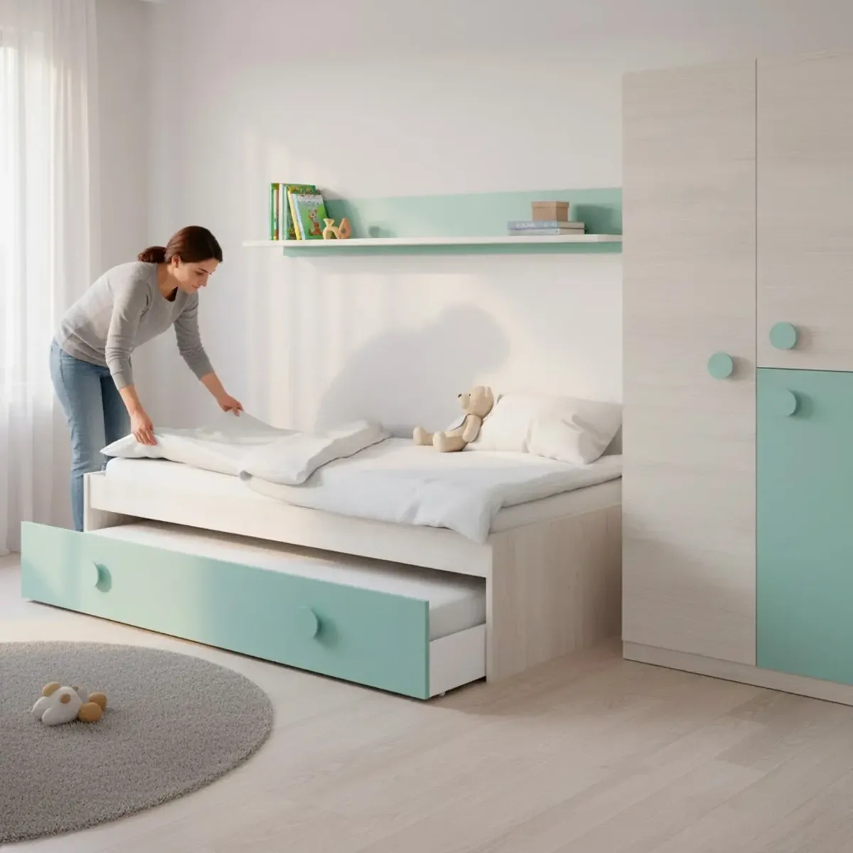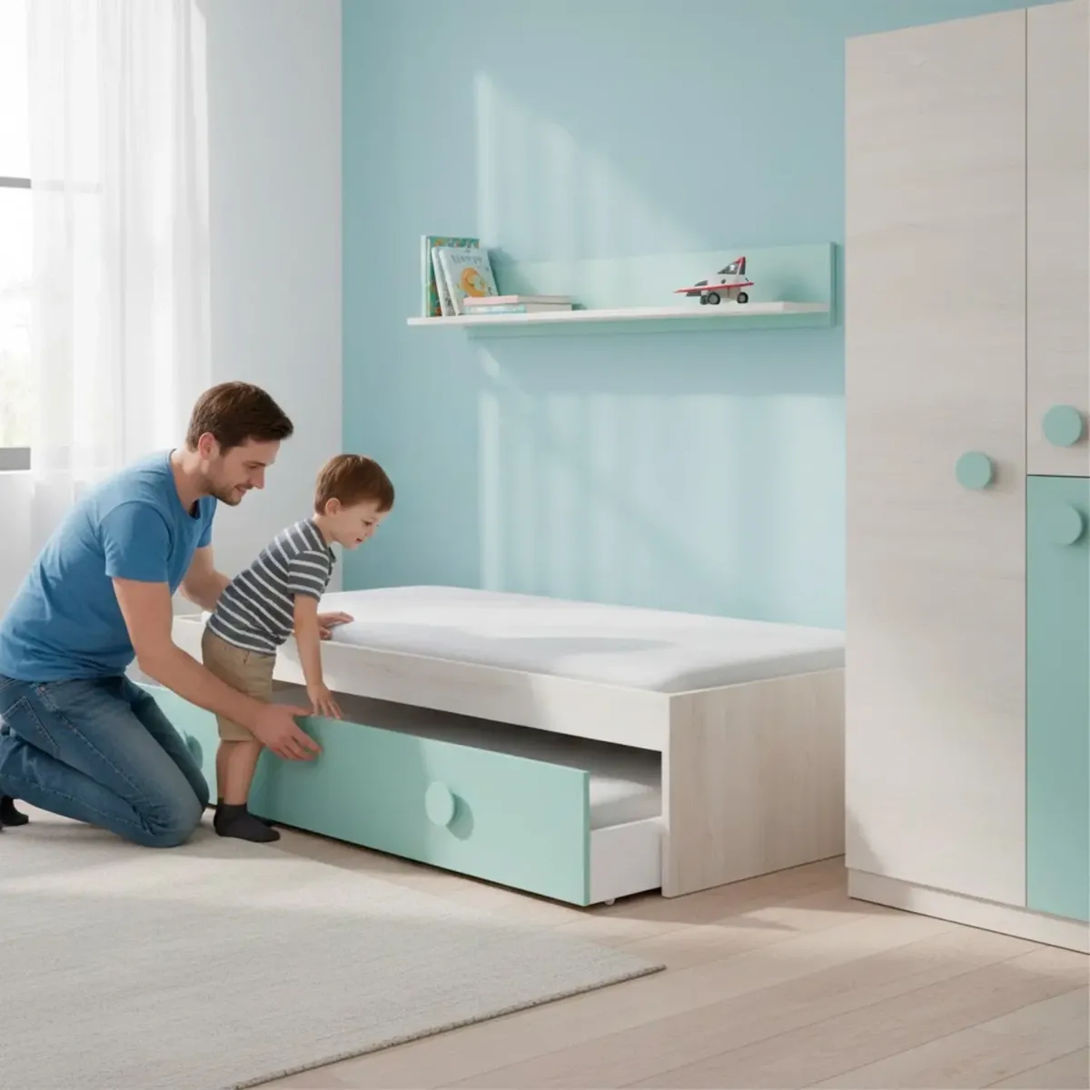 Letto Singolo A Scomparsa Per Ragazzi Con Letto Estraibile E Mensola A Muro Salvaspazio Per Cameretta Camera Da Letto Design Moderno Salvaspazio 201 x 43 x 98 Cm