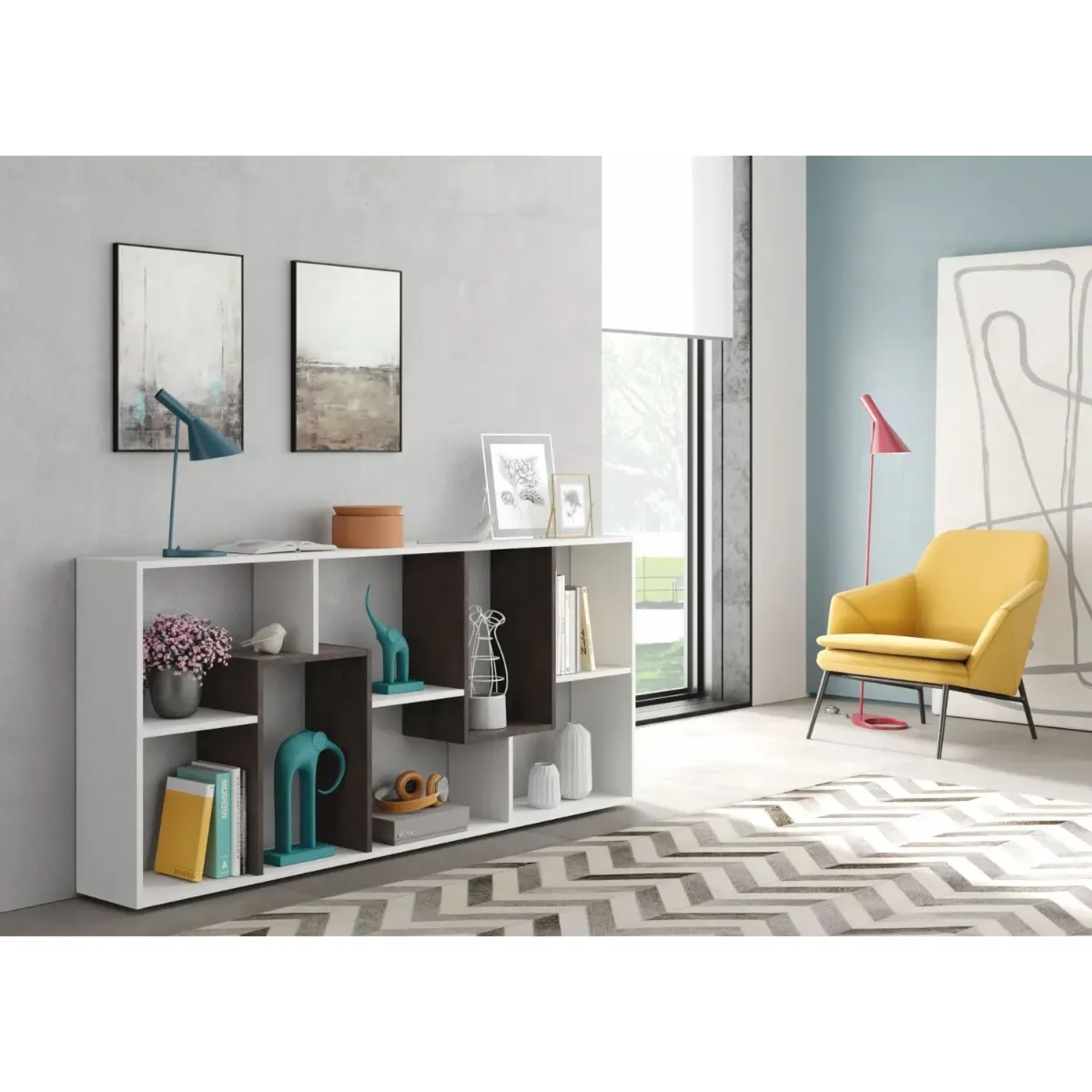 Libreria 8 Scomparti Reversibile Verticale o Orizzontale Scaffale Da Parete o Divisorio Mobile Mobiletto Moderno Design Per Soggiorno Studio e Living 180 x 80 x 25 Cm