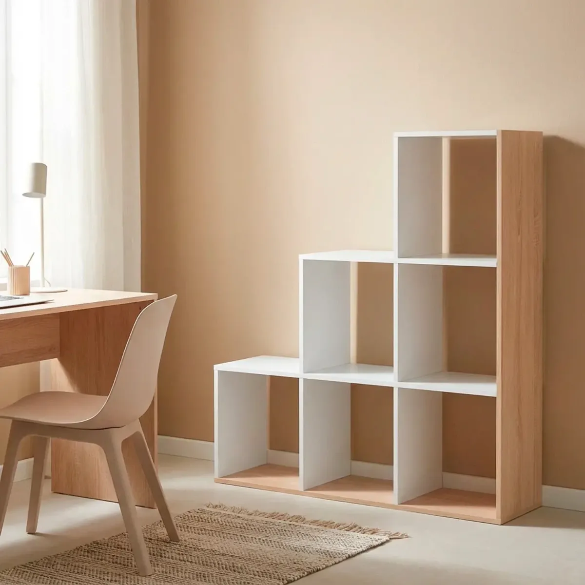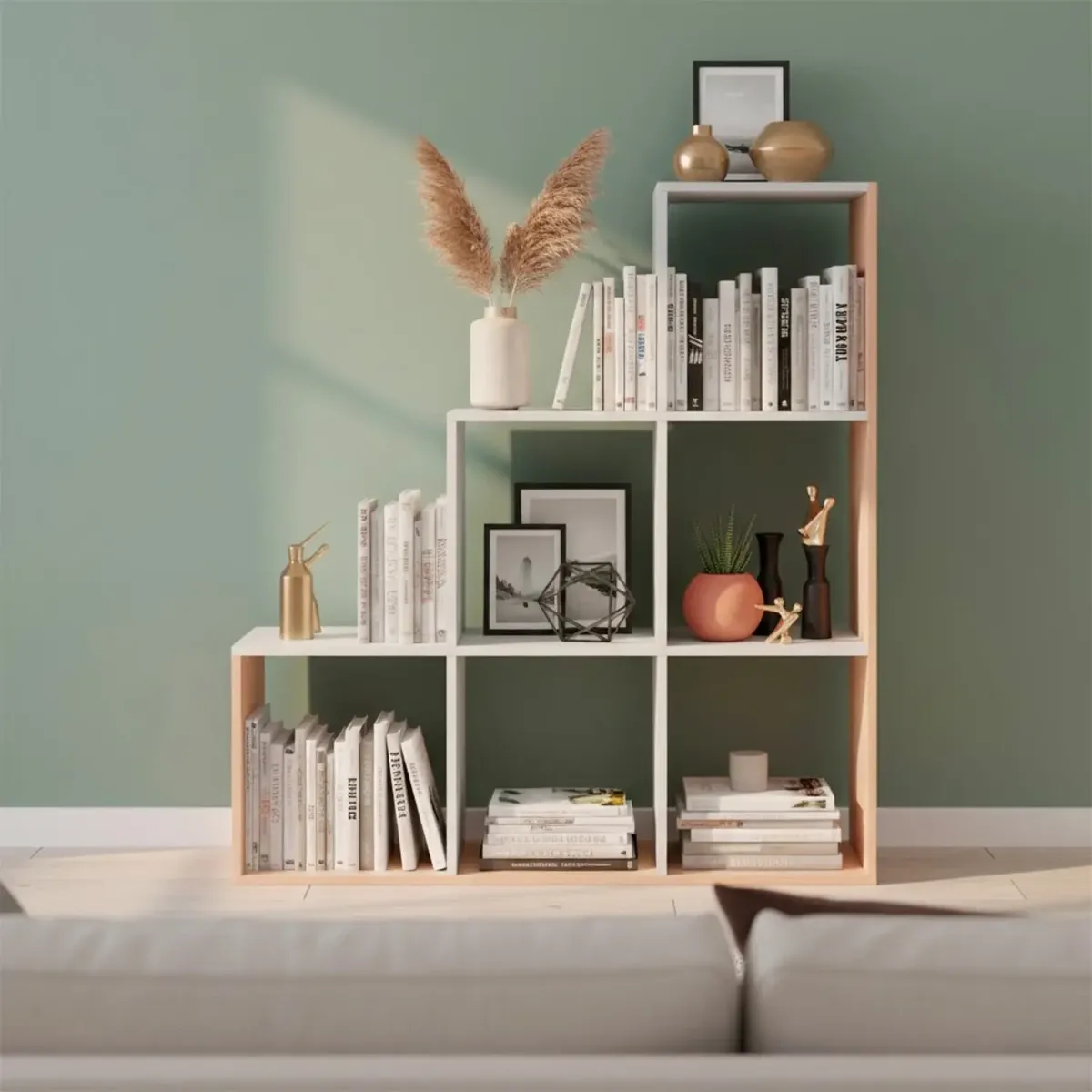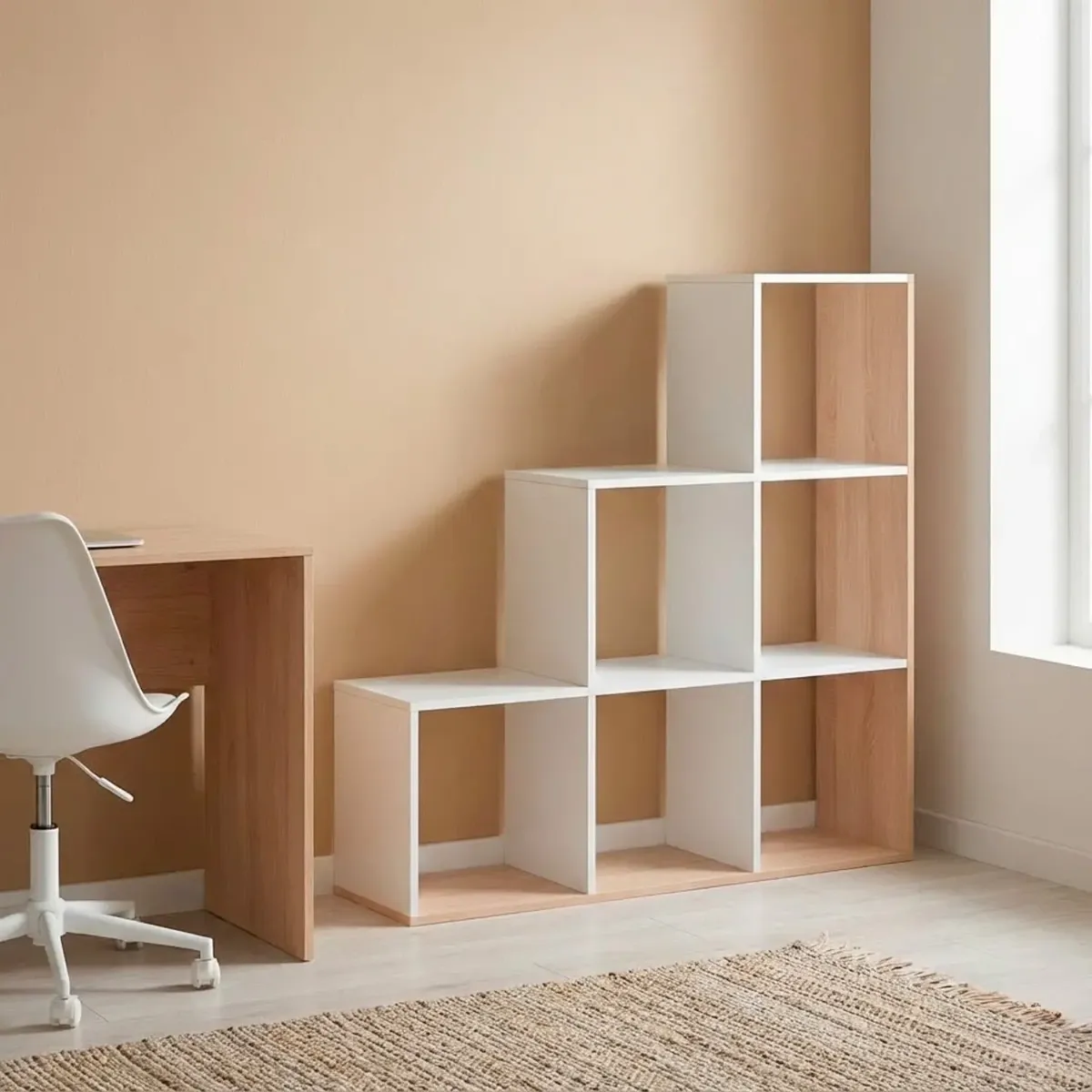 Libreria Con Vani Scaffale Salvaspazio Mobile Da Parete Con 6 Vani E 4 Ripiani Design Moderno Soggiorno Salotto Studio Cameretta Struttura in Melaminico 110 x 108 x 29 Cm
