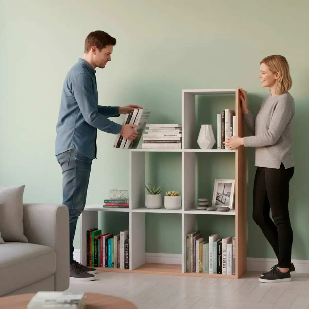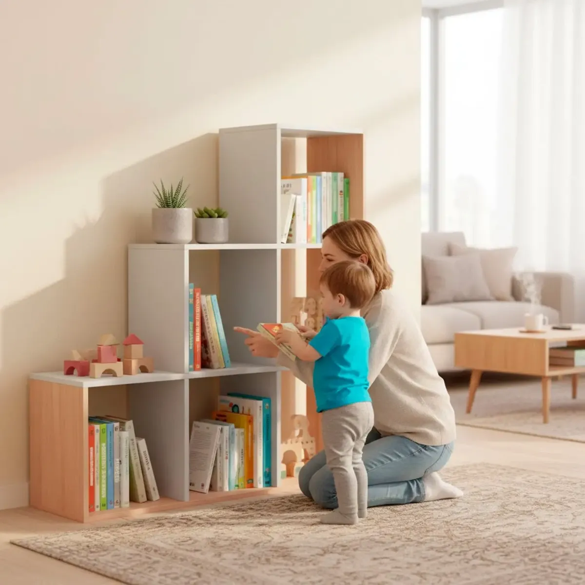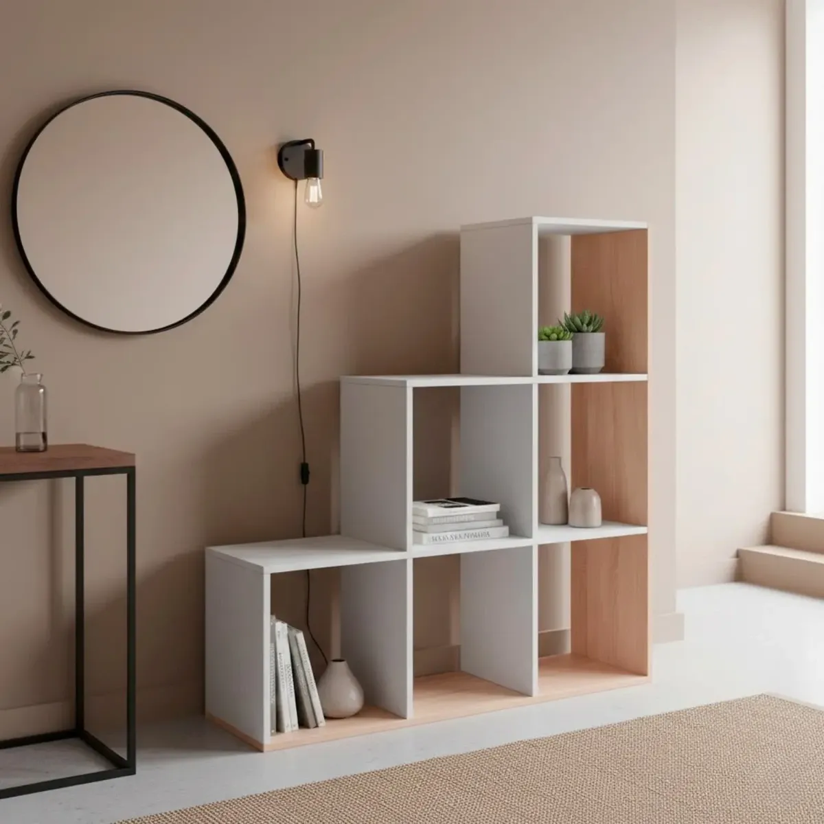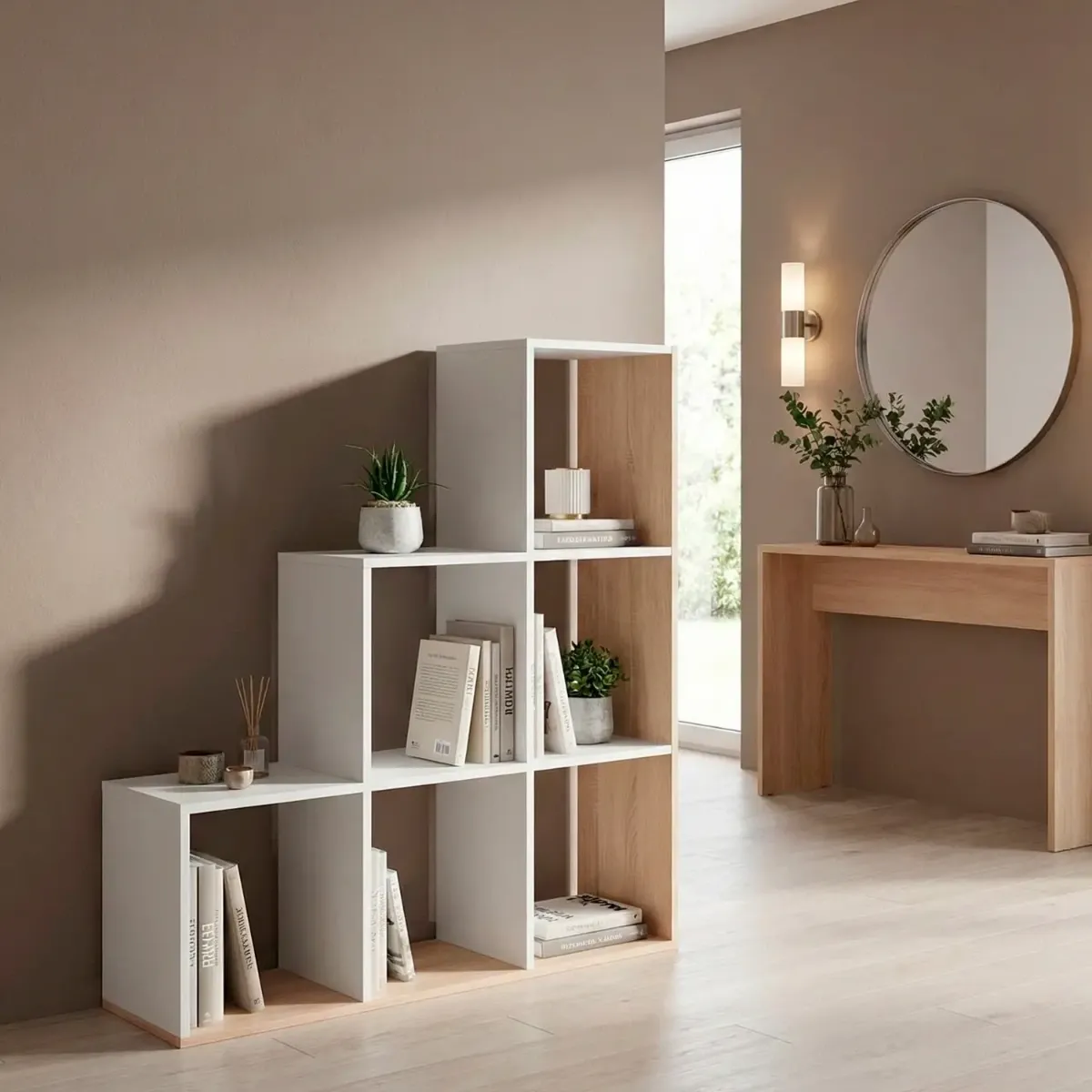 Libreria Con Vani Scaffale Salvaspazio Mobile Da Parete Con 6 Vani E 4 Ripiani Design Moderno Soggiorno Salotto Studio Cameretta Struttura in Melaminico 110 x 108 x 29 Cm