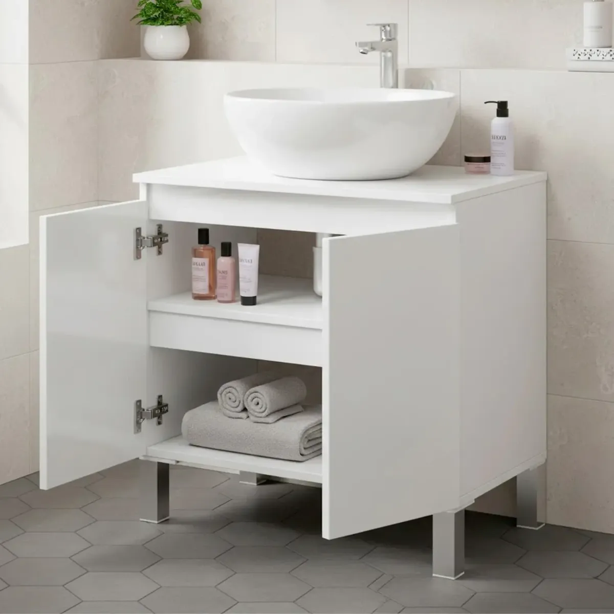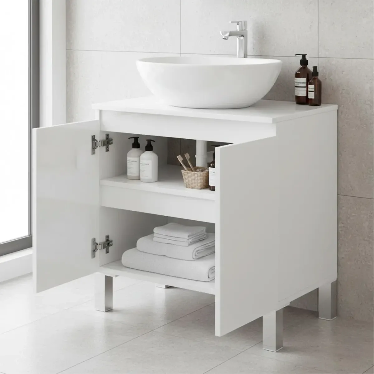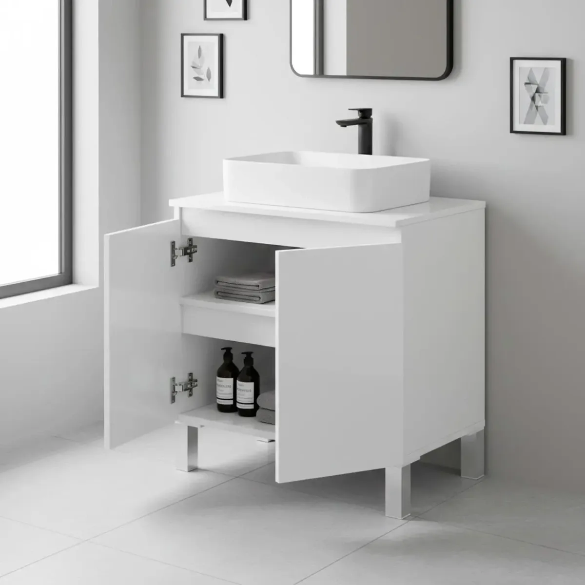 Mobile Bagno Sotto Al Lavabo Mobile Da Appoggio Con 2 Ante E Mensola Interna Salvaspazio Design Moderno Ideale Per lavabi Con Colonna Lavanderia Ripostiglio 60 x 40 x 63.5 Cm