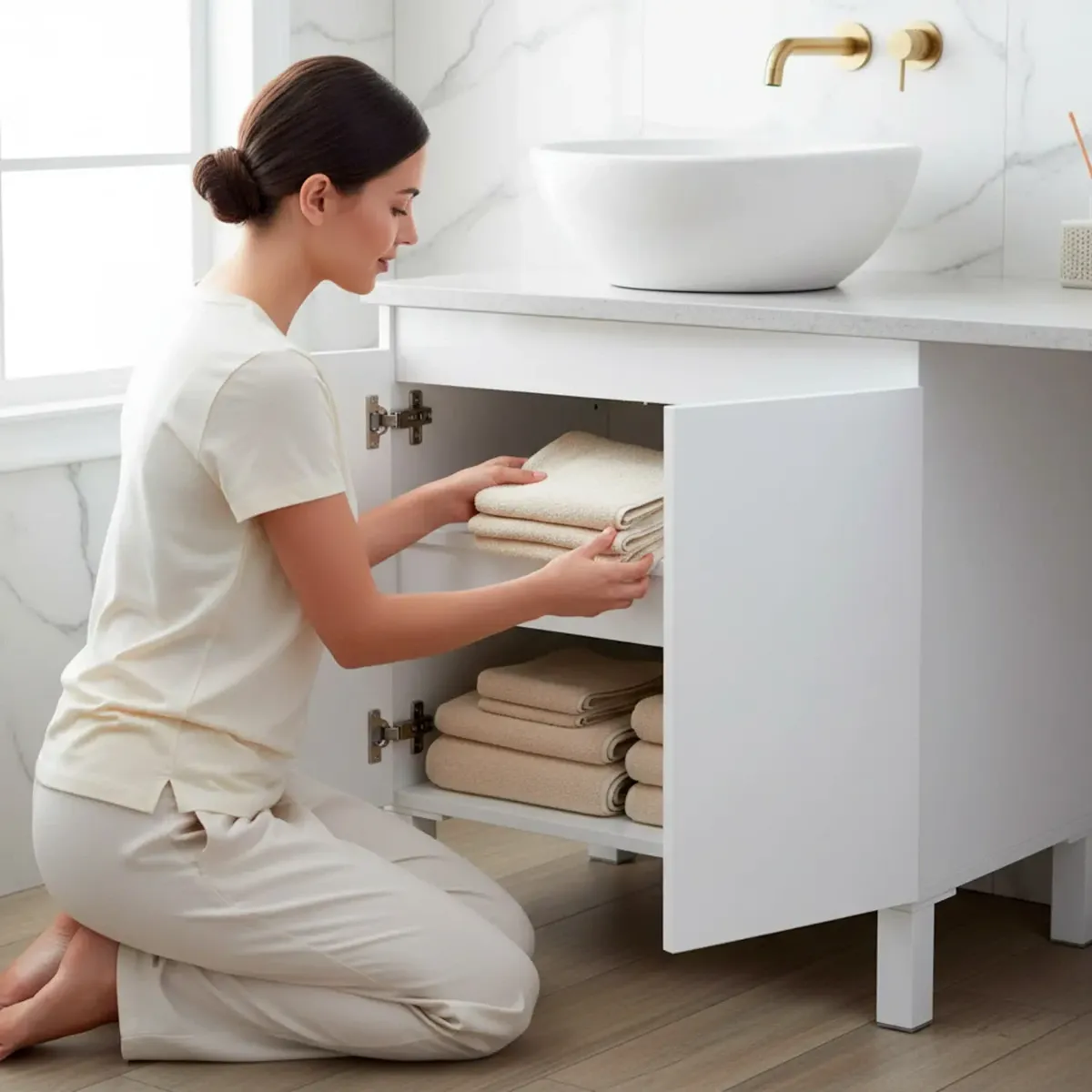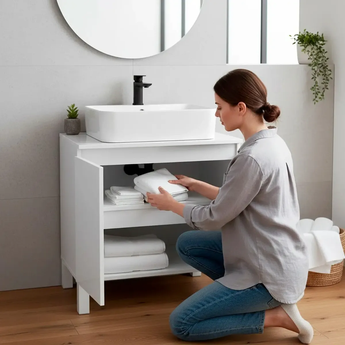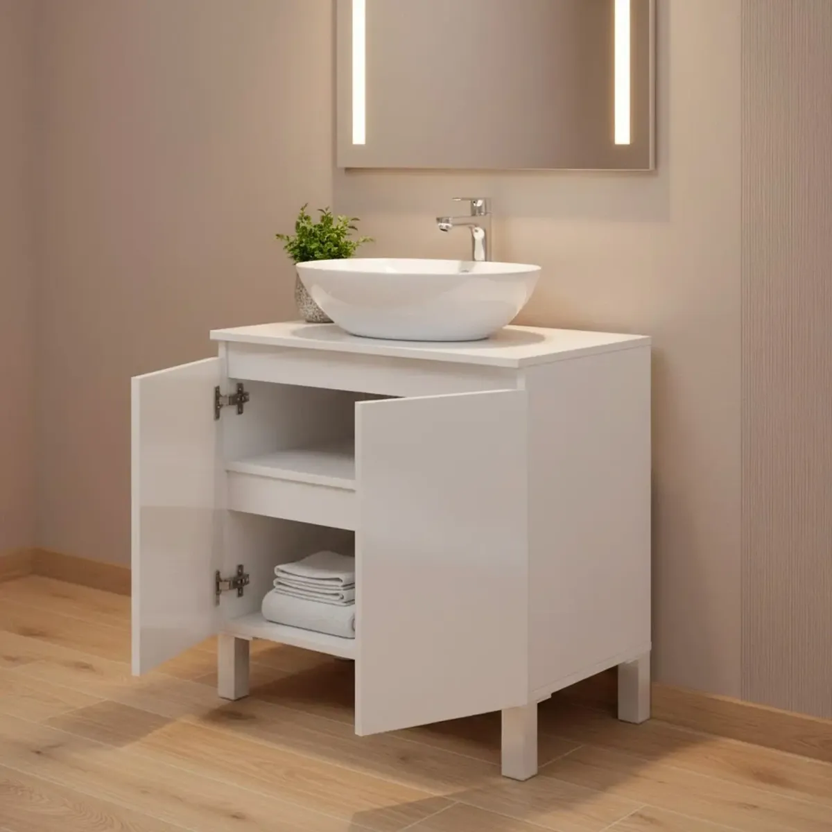 Mobile Bagno Sotto Al Lavabo Mobile Da Appoggio Con 2 Ante E Mensola Interna Salvaspazio Design Moderno Ideale Per lavabi Con Colonna Lavanderia Ripostiglio 60 x 40 x 63.5 Cm