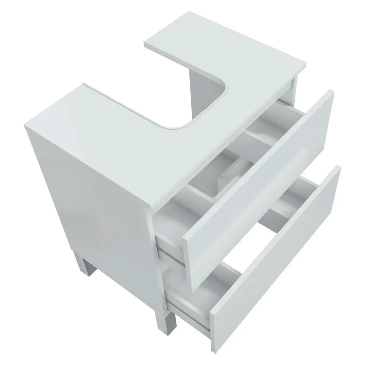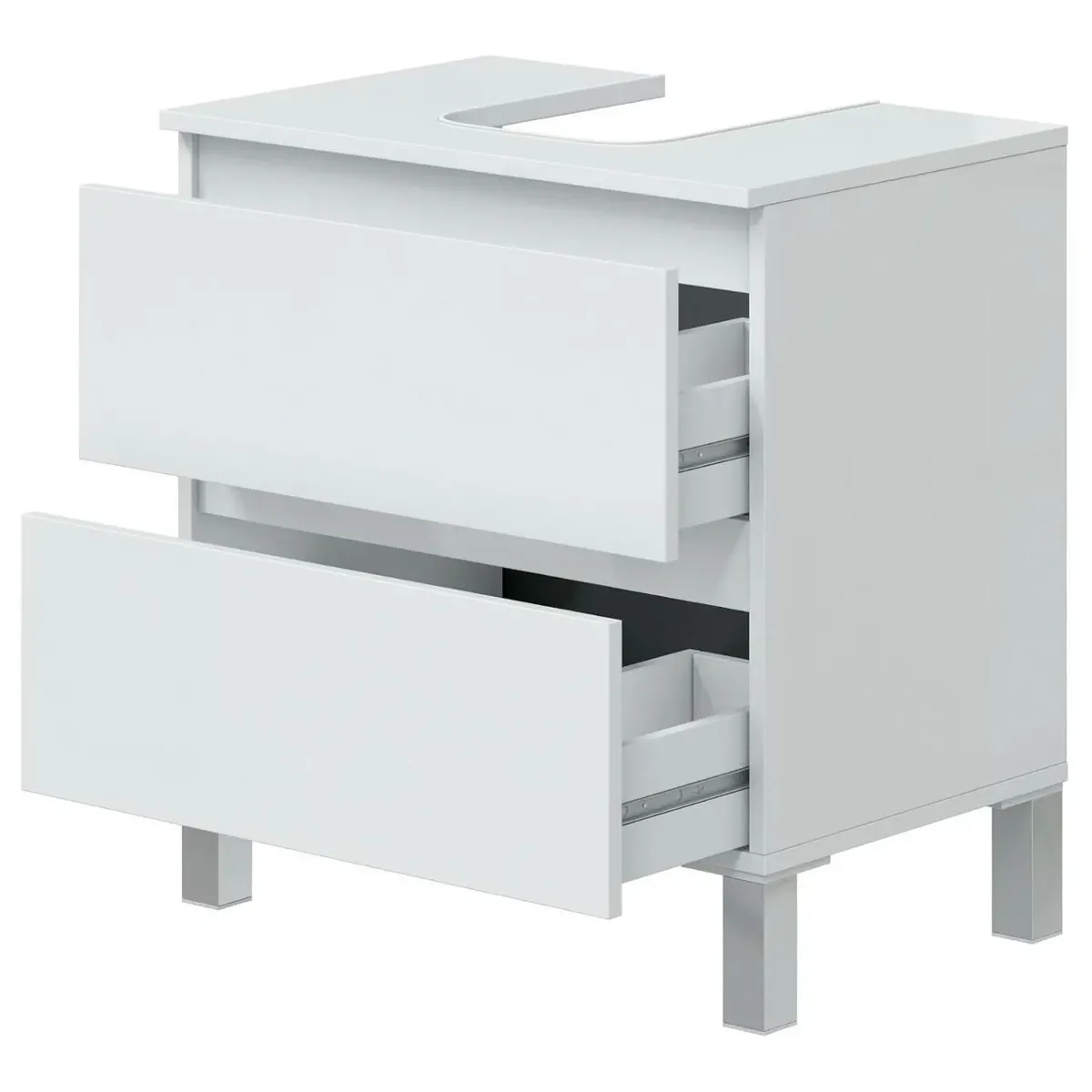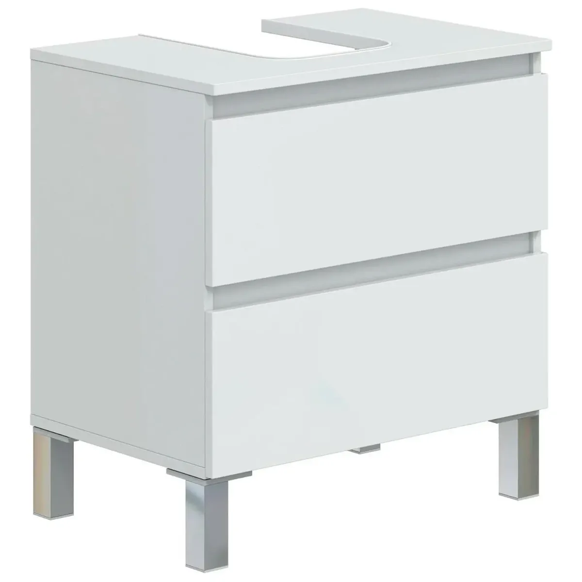 Mobile Bagno Sotto Lavabo Da Appoggio 2 Cassetti Salvaspazio Con Guide Metalliche E Gambe In Alluminio Design Moderno Minimal Ripostiglio Lavanderia 63.5 x 60 x 40 Cm
