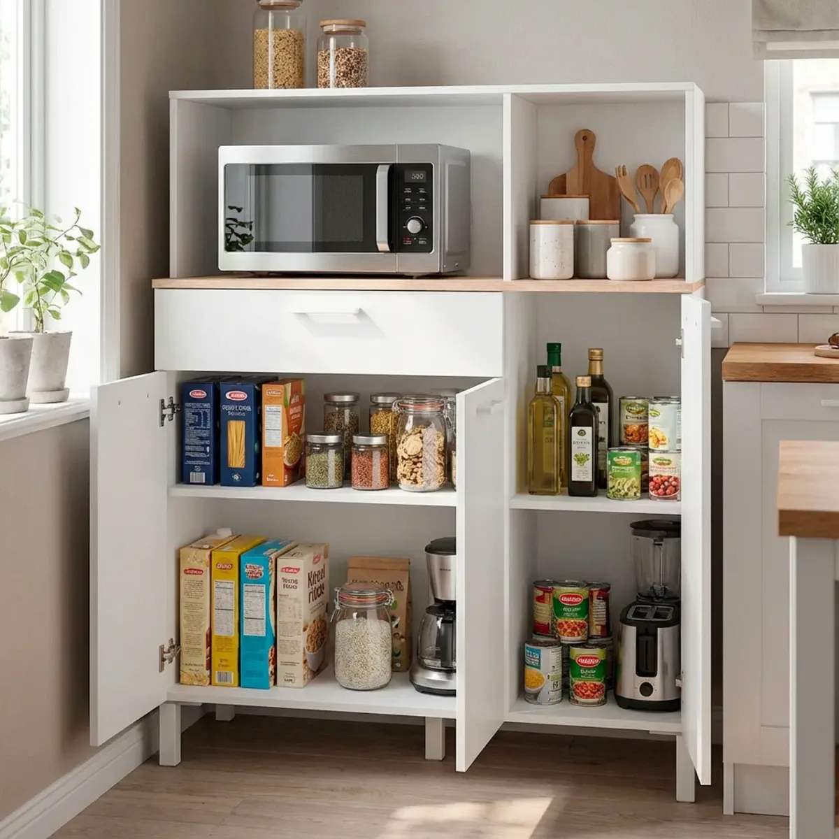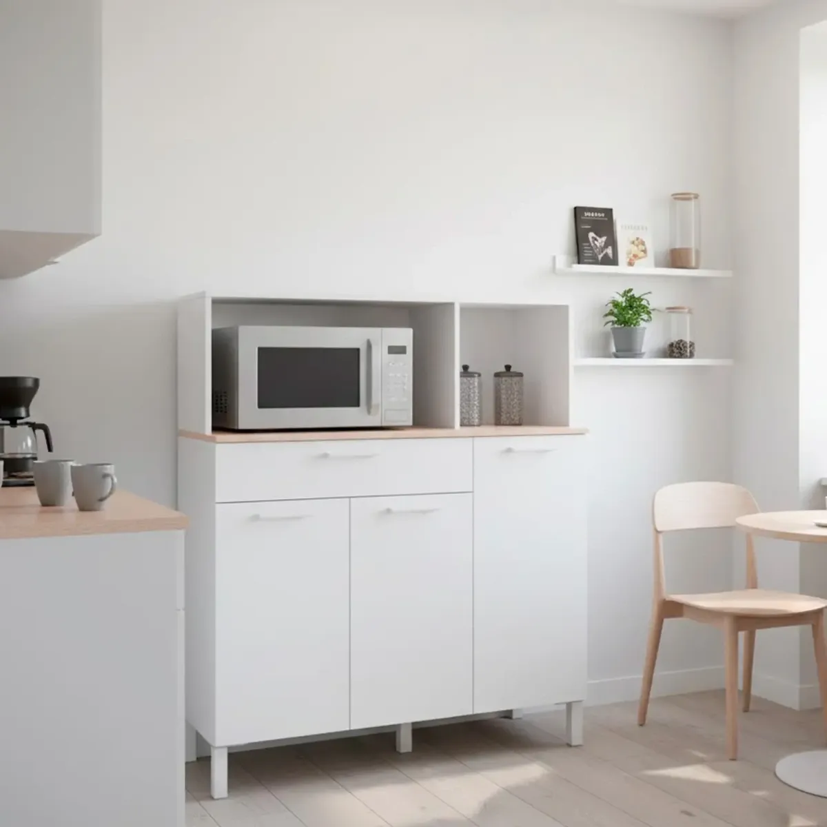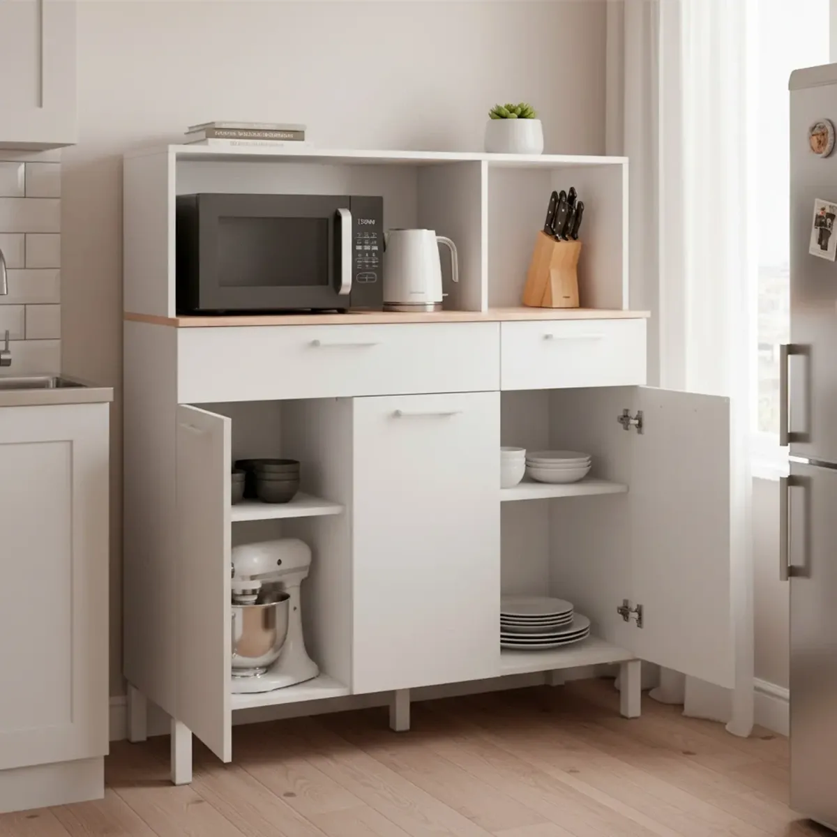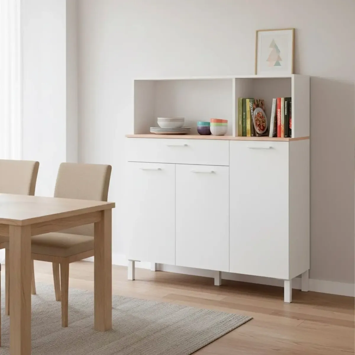 Mobile Da Cucina Credenza Con 3 Ante 1 Cassetto Madia Moderna Mobile Contenitore Con Vani A Giorno Mobiletto Dispensa Sala Da Pranzo Soggiorno 108 x 40 x 126 Cm