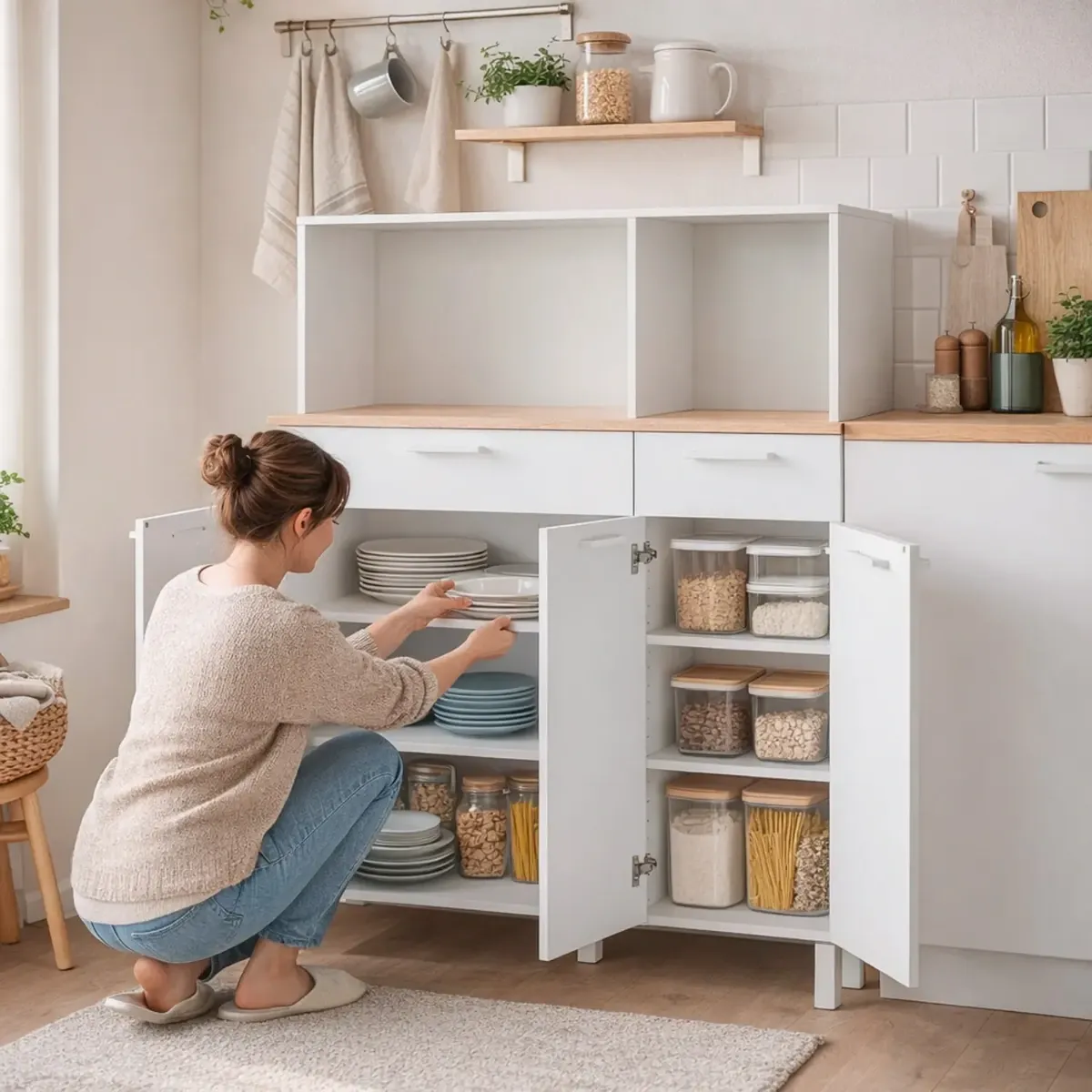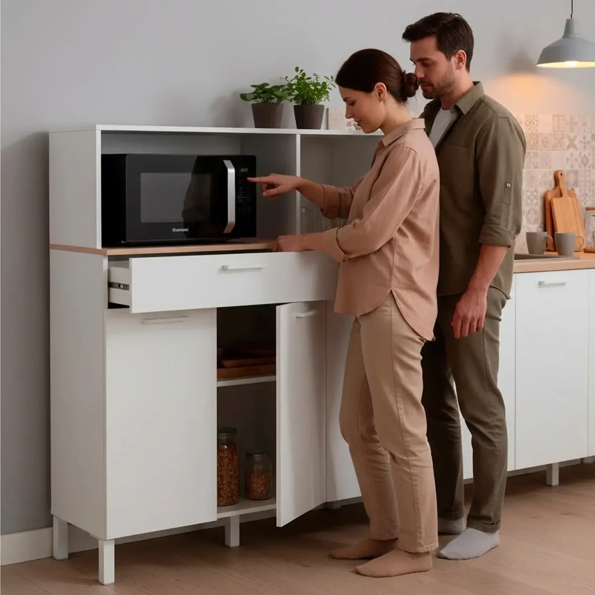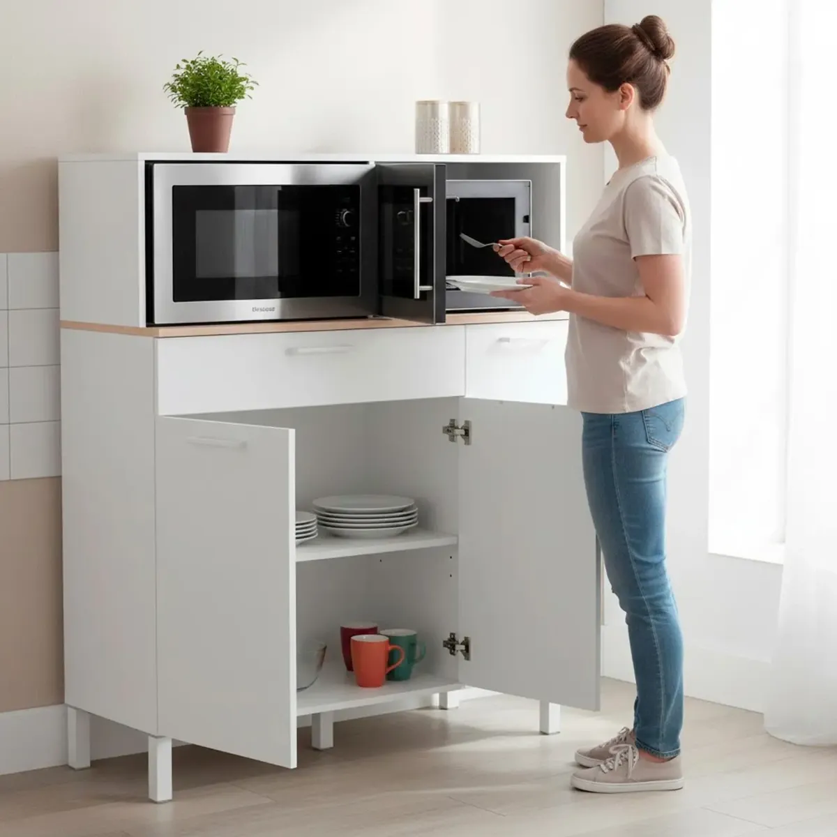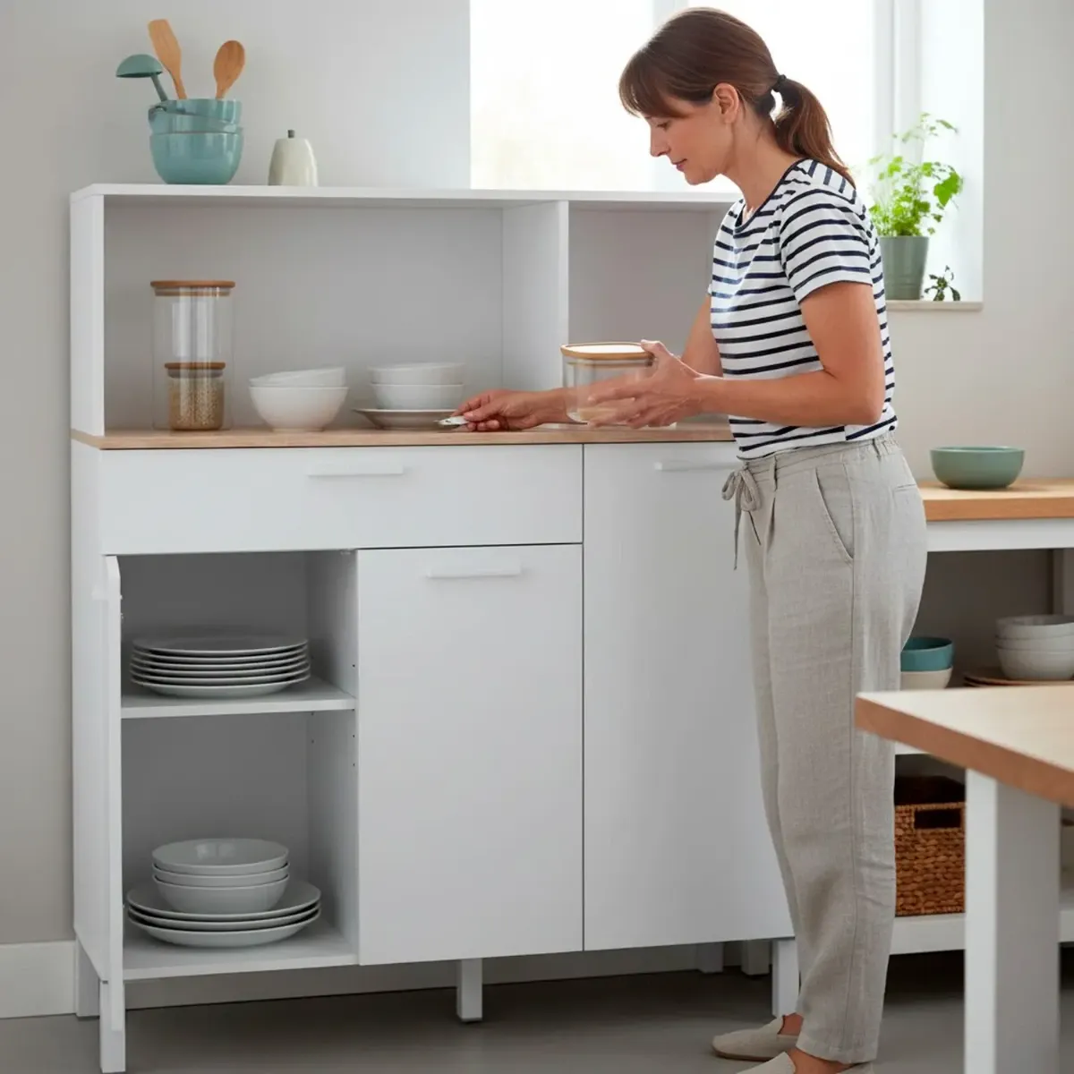 Mobile Da Cucina Credenza Con 3 Ante 1 Cassetto Madia Moderna Mobile Contenitore Con Vani A Giorno Mobiletto Dispensa Sala Da Pranzo Soggiorno 108 x 40 x 126 Cm