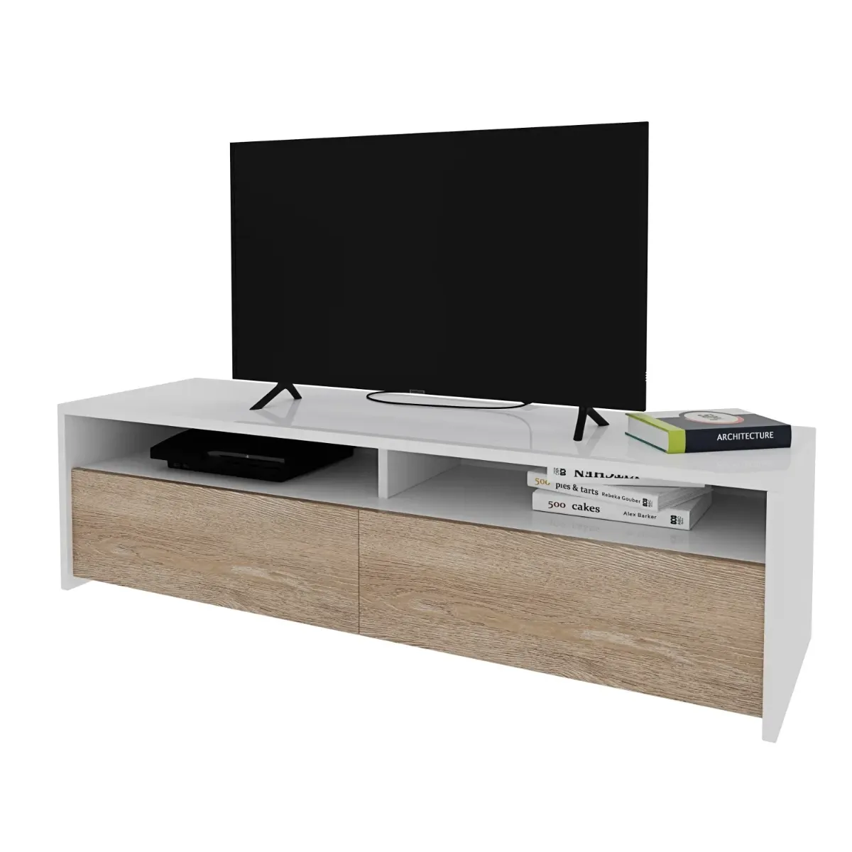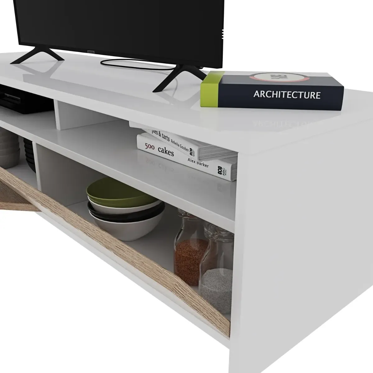 Mobile Porta TV Moderno Parete Attrezzata Con 2 Ante E 2 Vani A Giorno Mobiletto Salvaspazio Da Terra Per Televisione Soggiorno Salotto Camera Da Letto 130 x 40 x 35 Cm