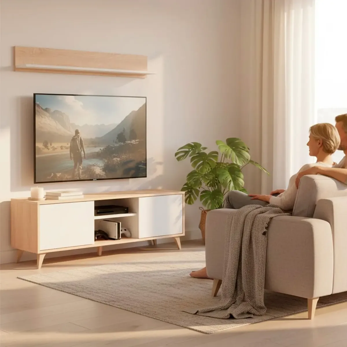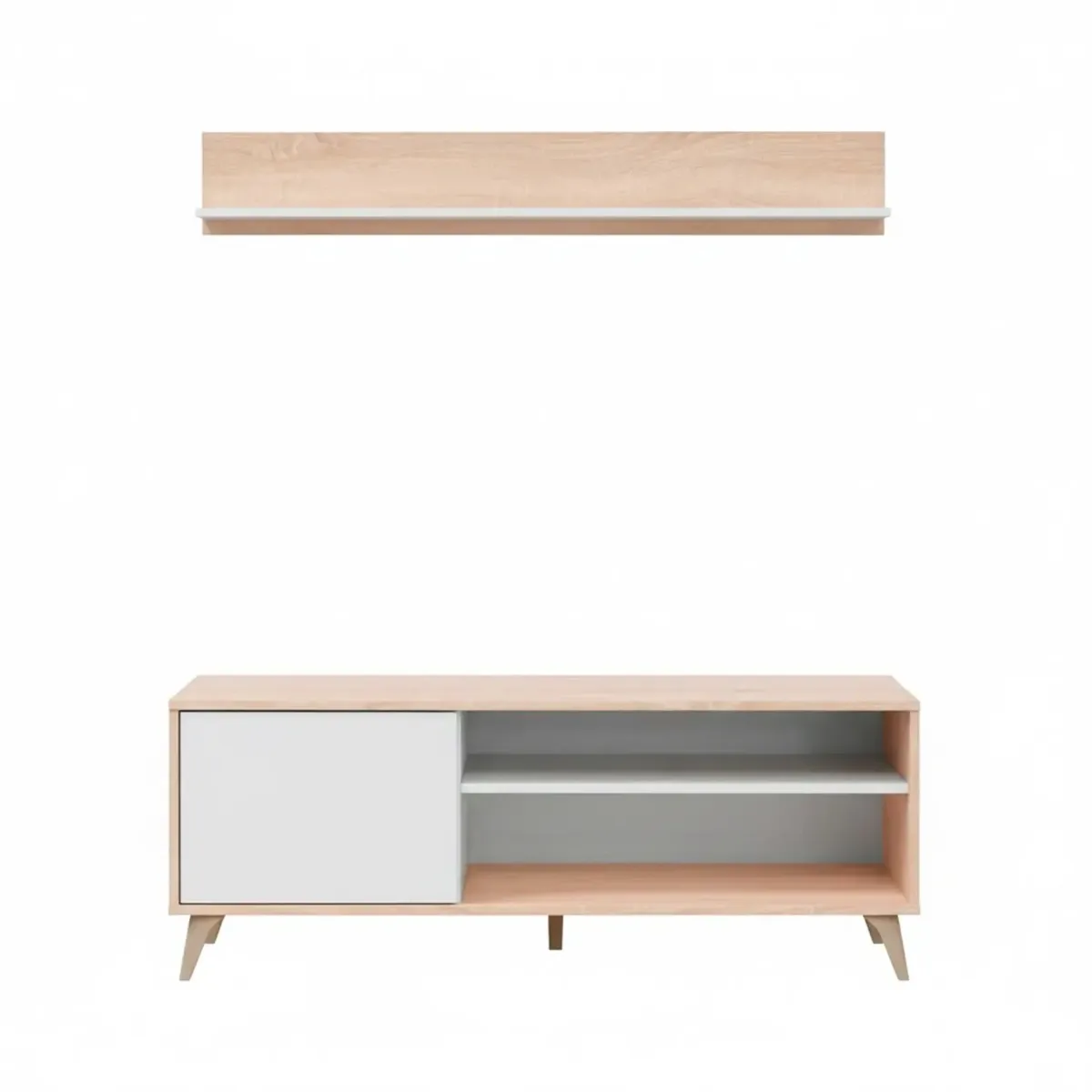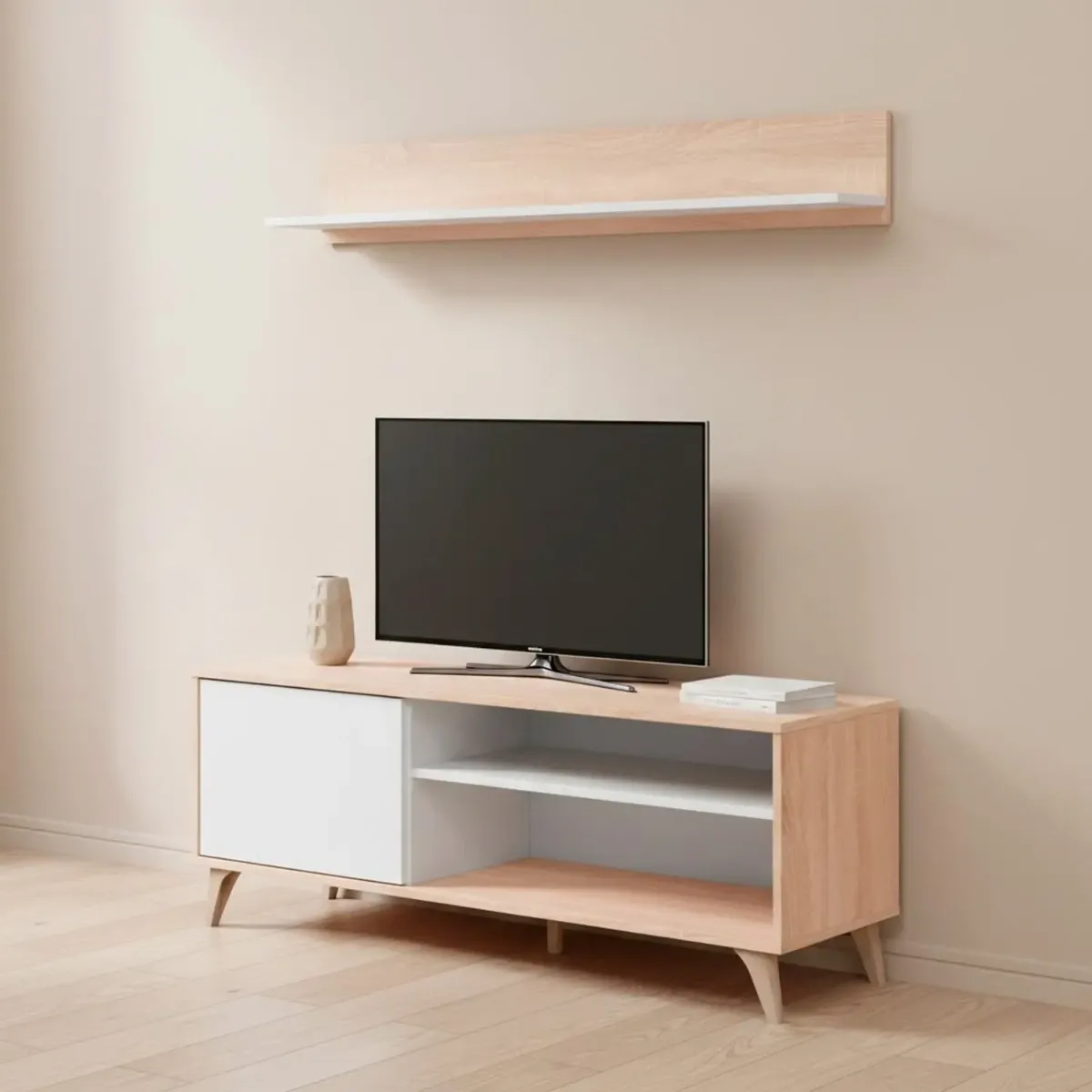Mobile TV Con Mensola Parete Attrezzata In Stile Nordico Da 135 Cm Con Anta Push E Vani Multimediali Mobile Porta TV Con Ripiano A Parete Soggiorno Moderno 135 x 50 x 40 Cm
